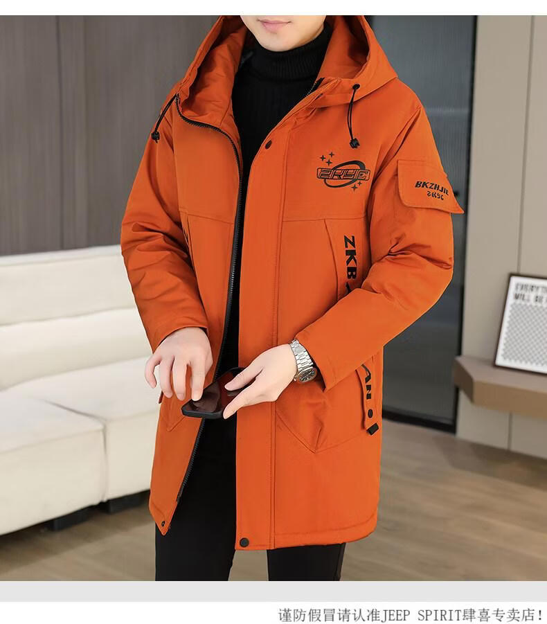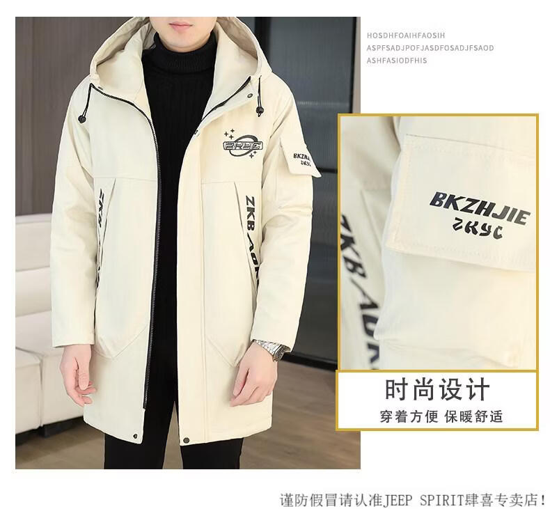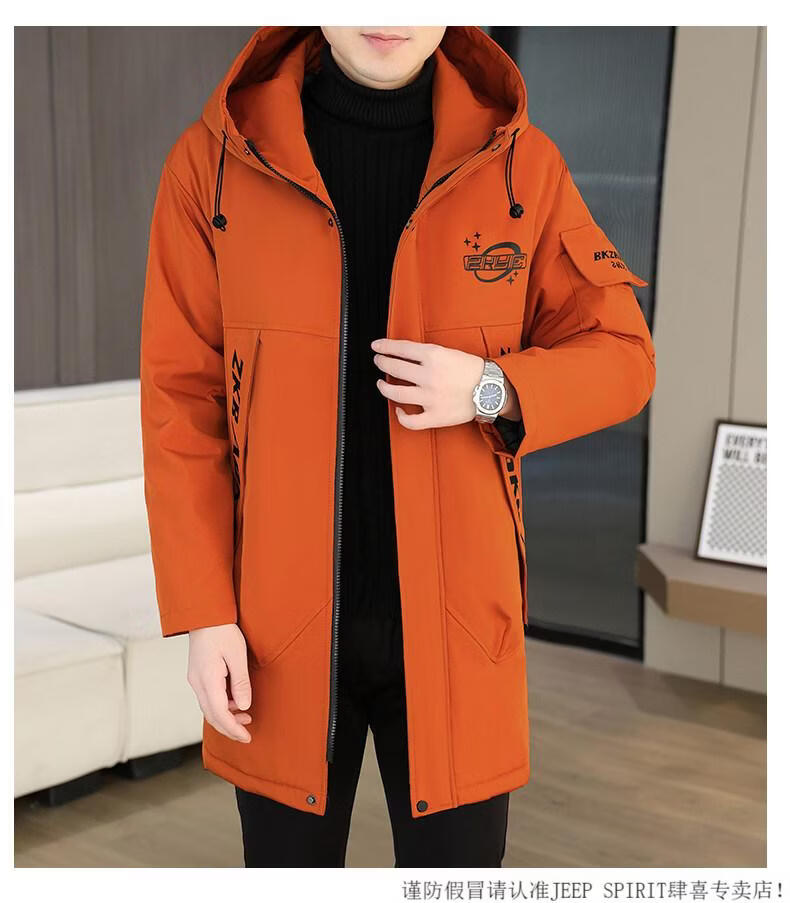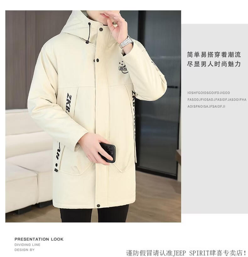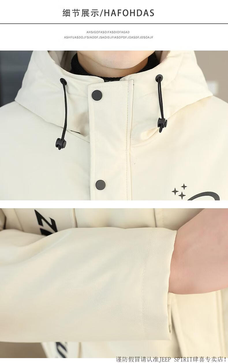 JEEP SPIRIT winter parka men's cotton coat plus velvet thickened jacket men's trendy winter cotton coat mid-length windbreaker warm jacket 682 black plus velvet and thickened M 95-110Jin Jin equals 0.5 kg