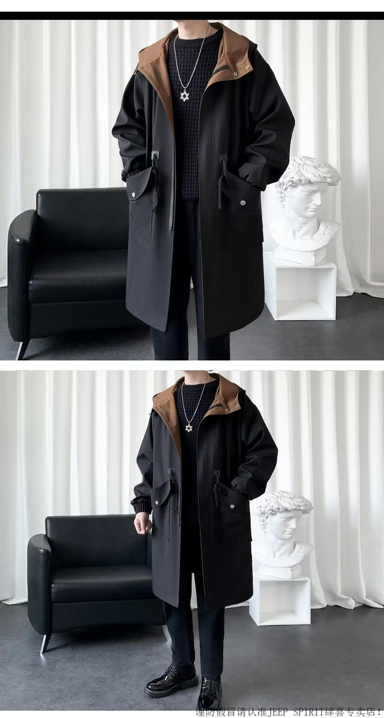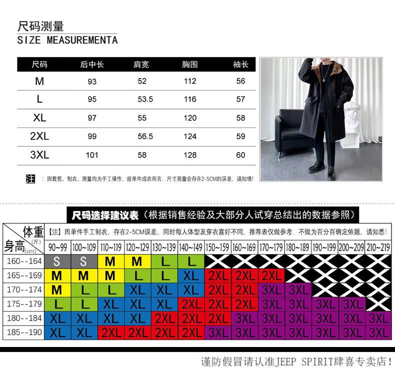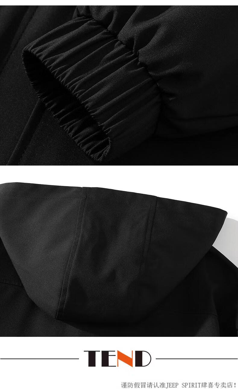 JEEP SPIRIT British mid-length windbreaker for boys in autumn and winter plus velvet and thickened winter and autumn hooded Korean coat large size jacket outer black spring and autumn M 90-110Jin Jin is equal to 0.5 kg