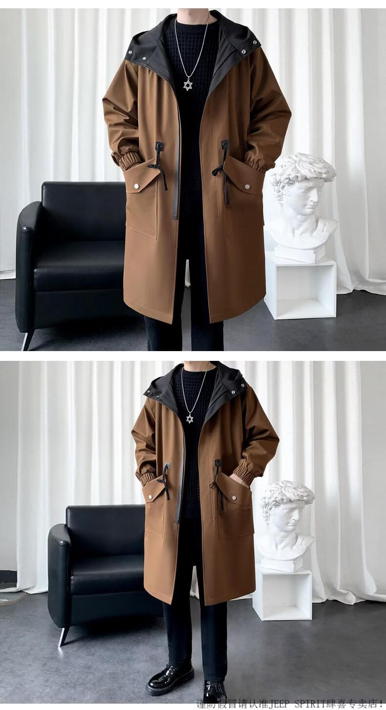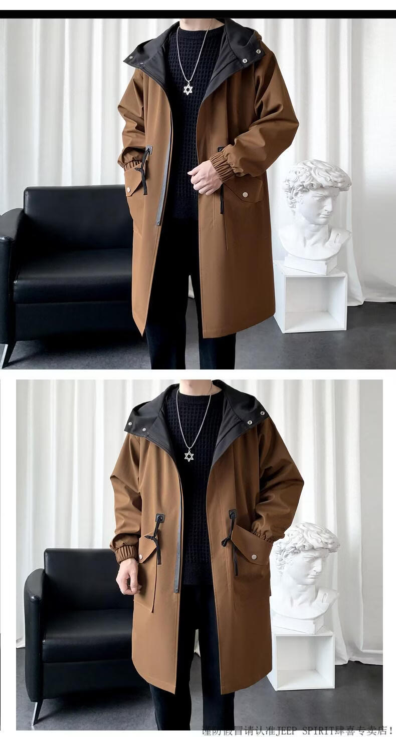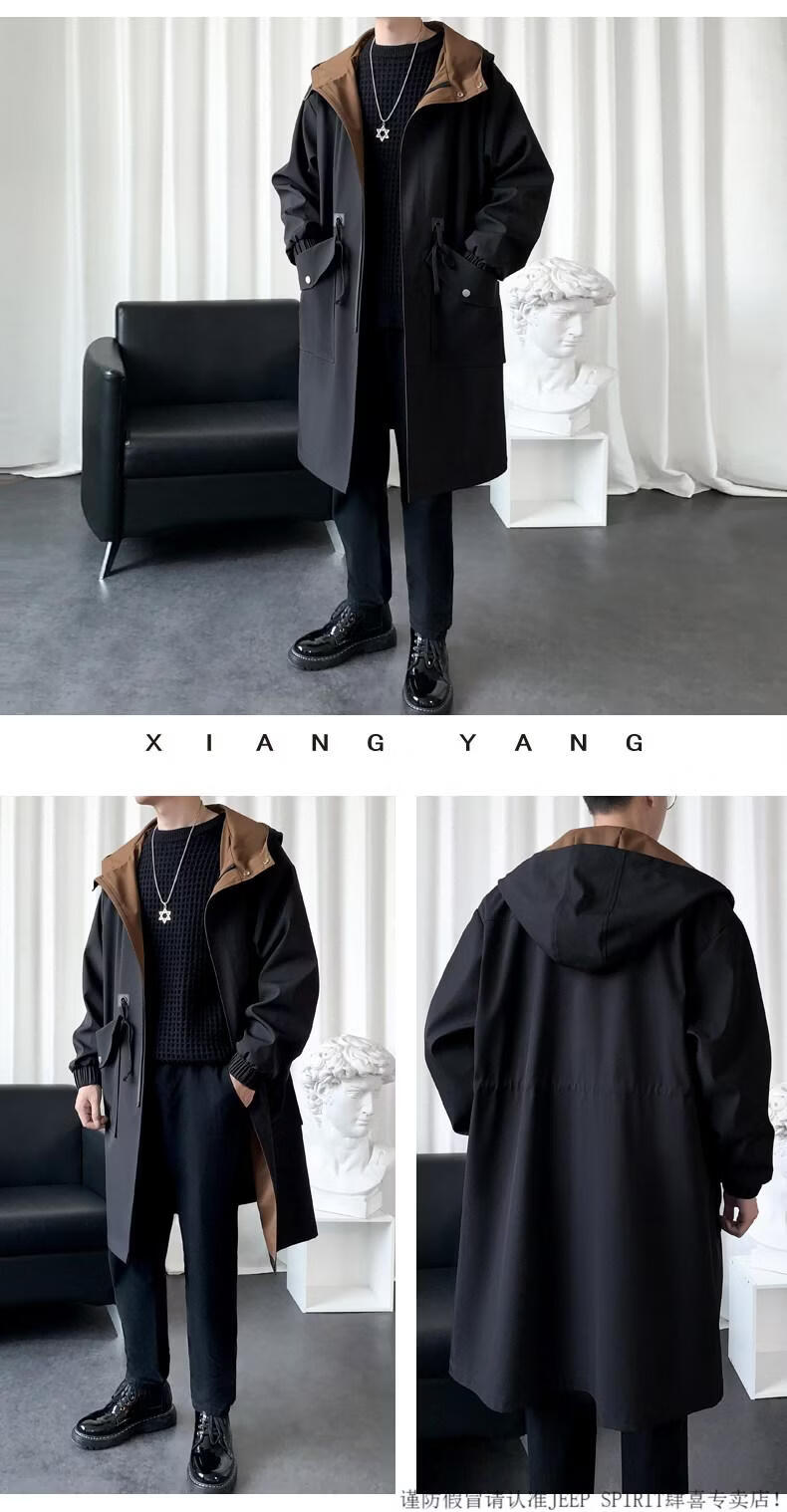 JEEP SPIRIT British mid-length windbreaker for boys in autumn and winter plus velvet and thickened winter and autumn hooded Korean coat large size jacket outer black spring and autumn M 90-110Jin Jin is equal to 0.5 kg