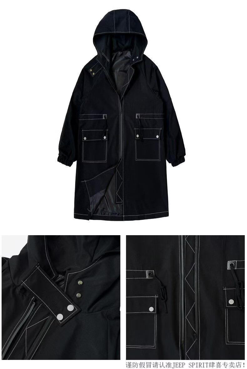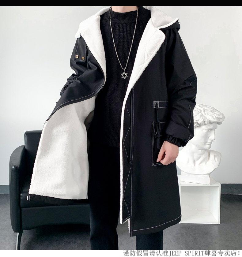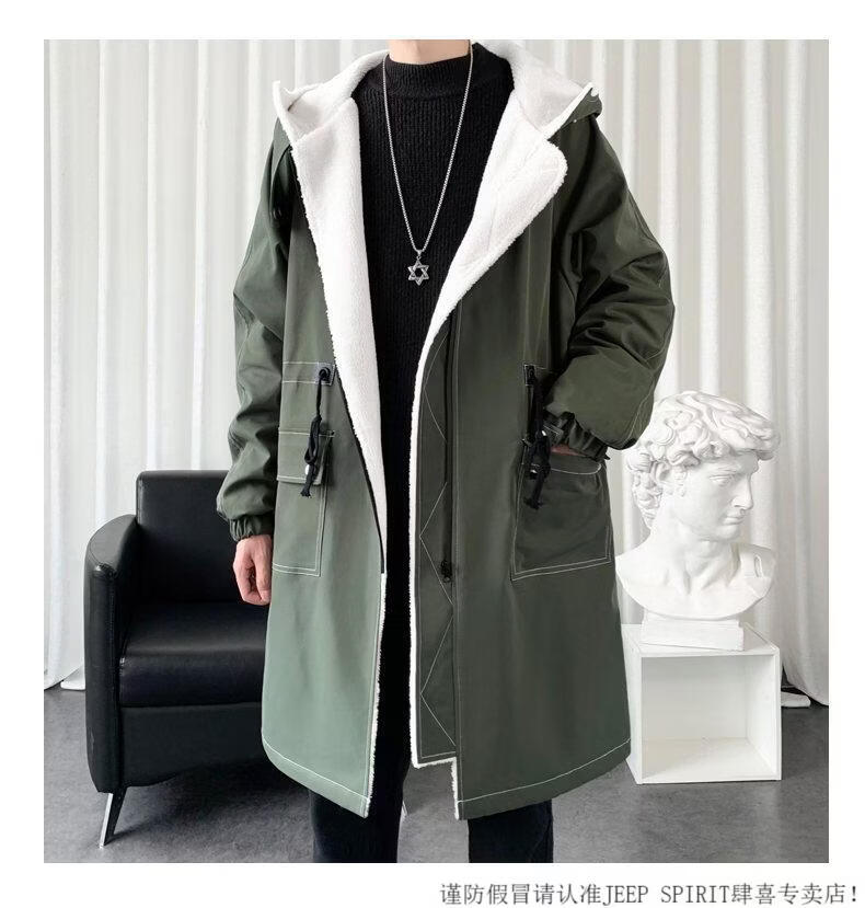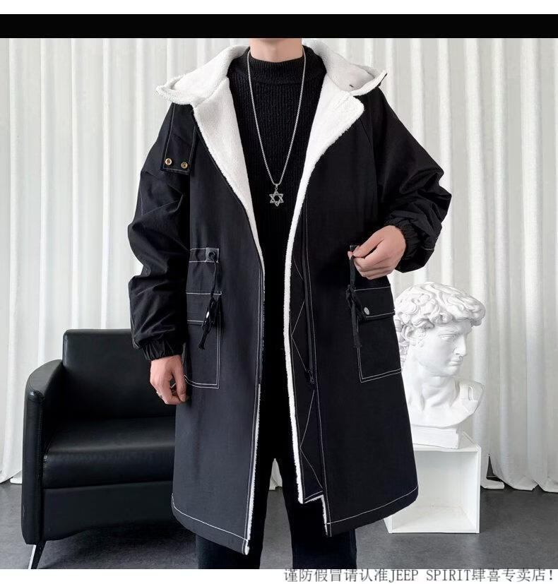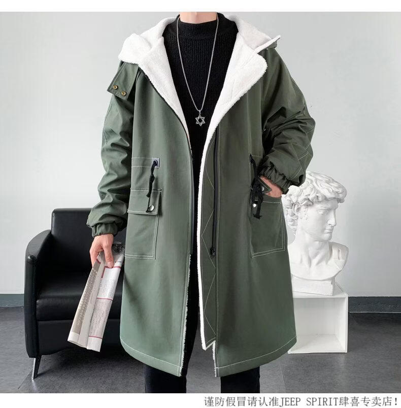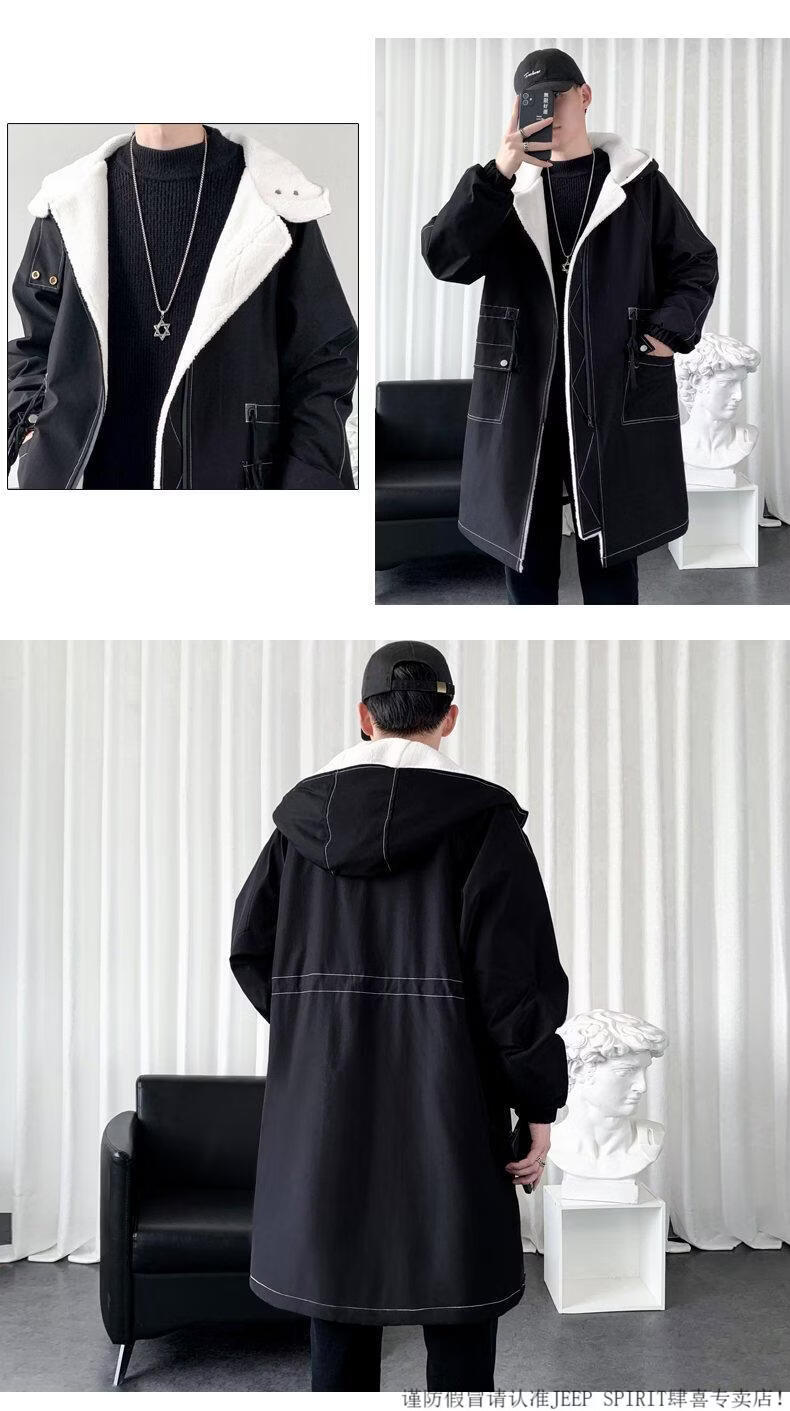 JEEP SPIRIT windbreaker boys mid-length coat autumn and winter plus cashmere loose large size hooded cotton coat British coat men black M 95-120Jin Jin equals 0.5 kg