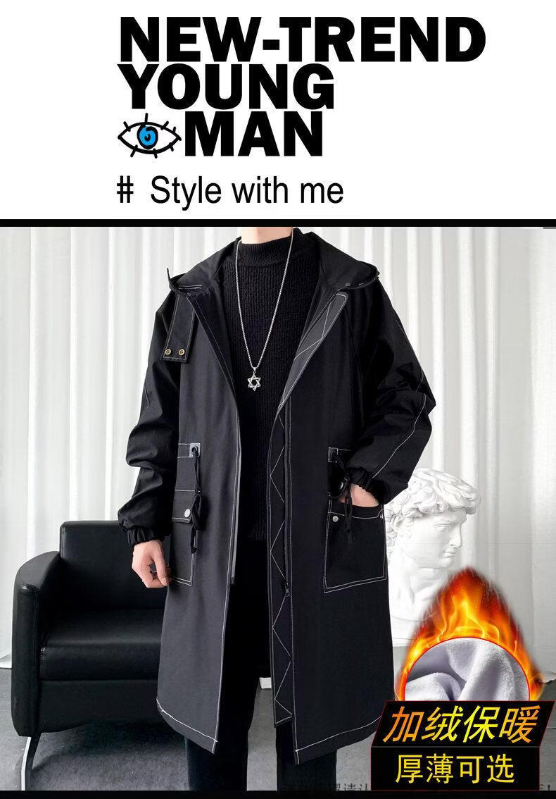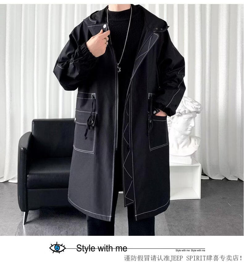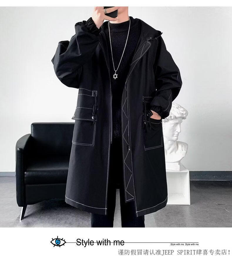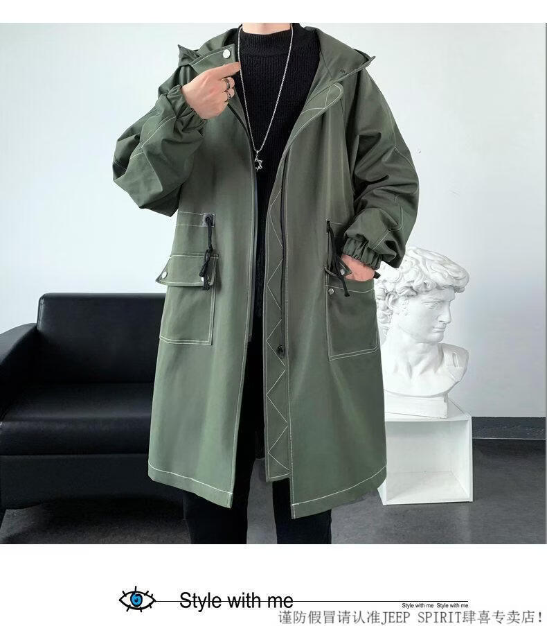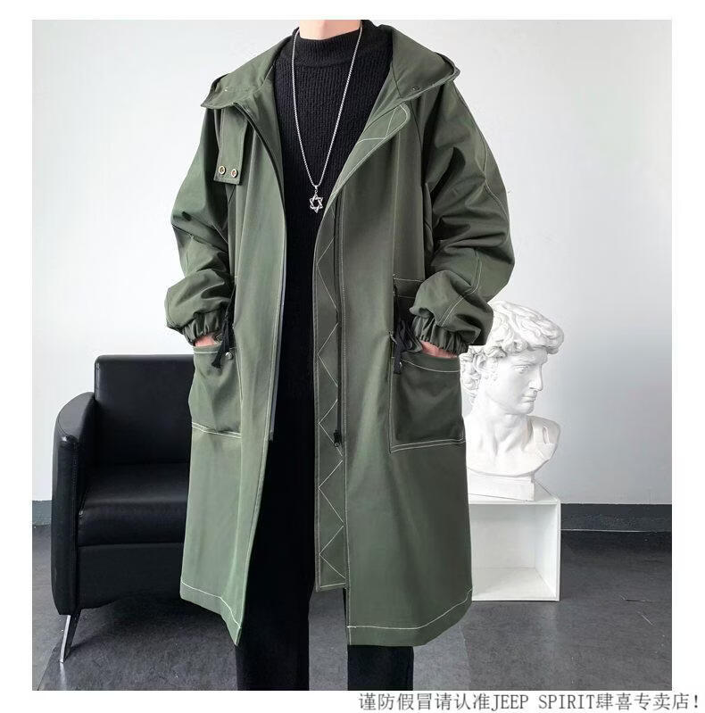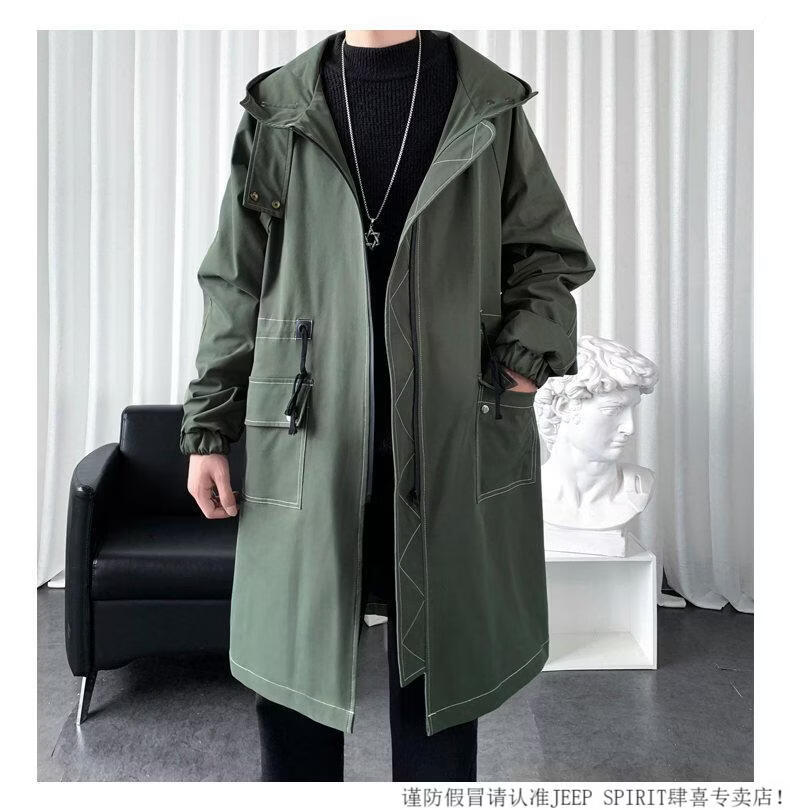 JEEP SPIRIT windbreaker boys mid-length coat autumn and winter plus cashmere loose large size hooded cotton coat British coat men black M 95-120Jin Jin equals 0.5 kg