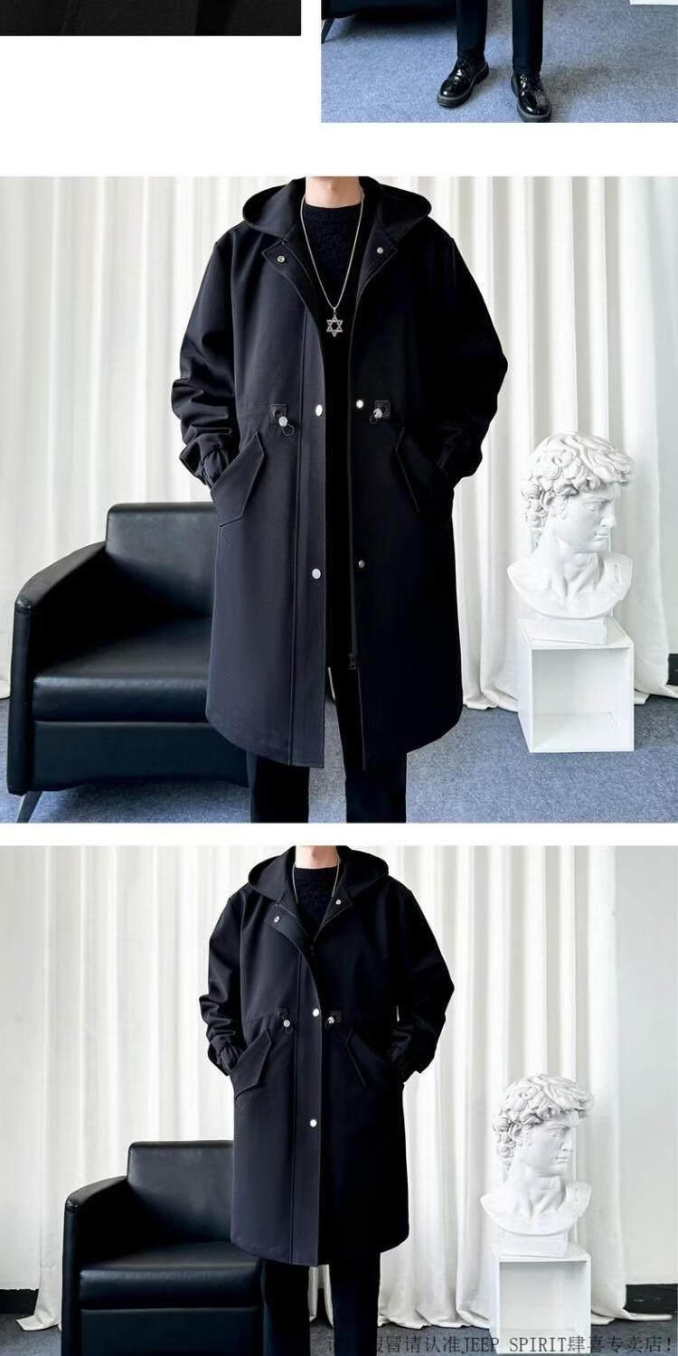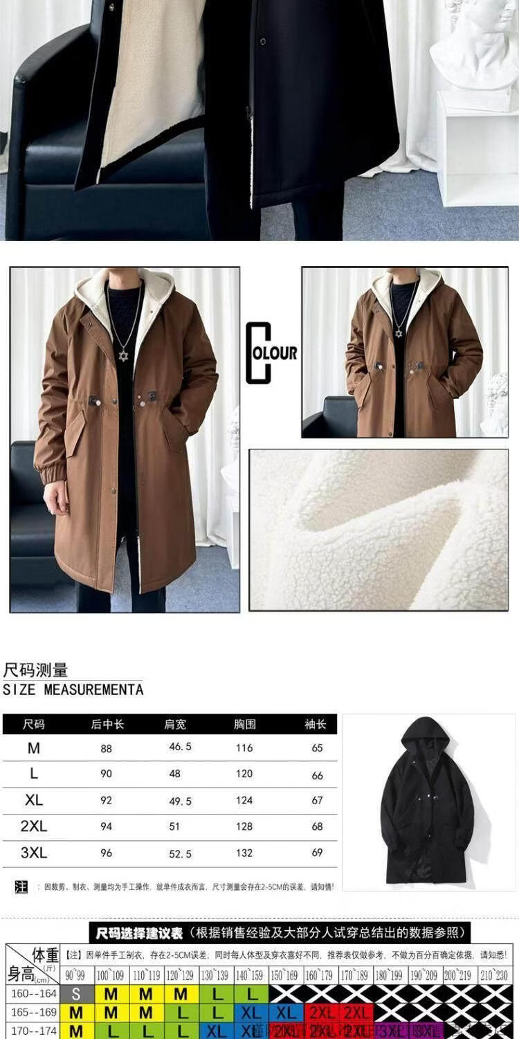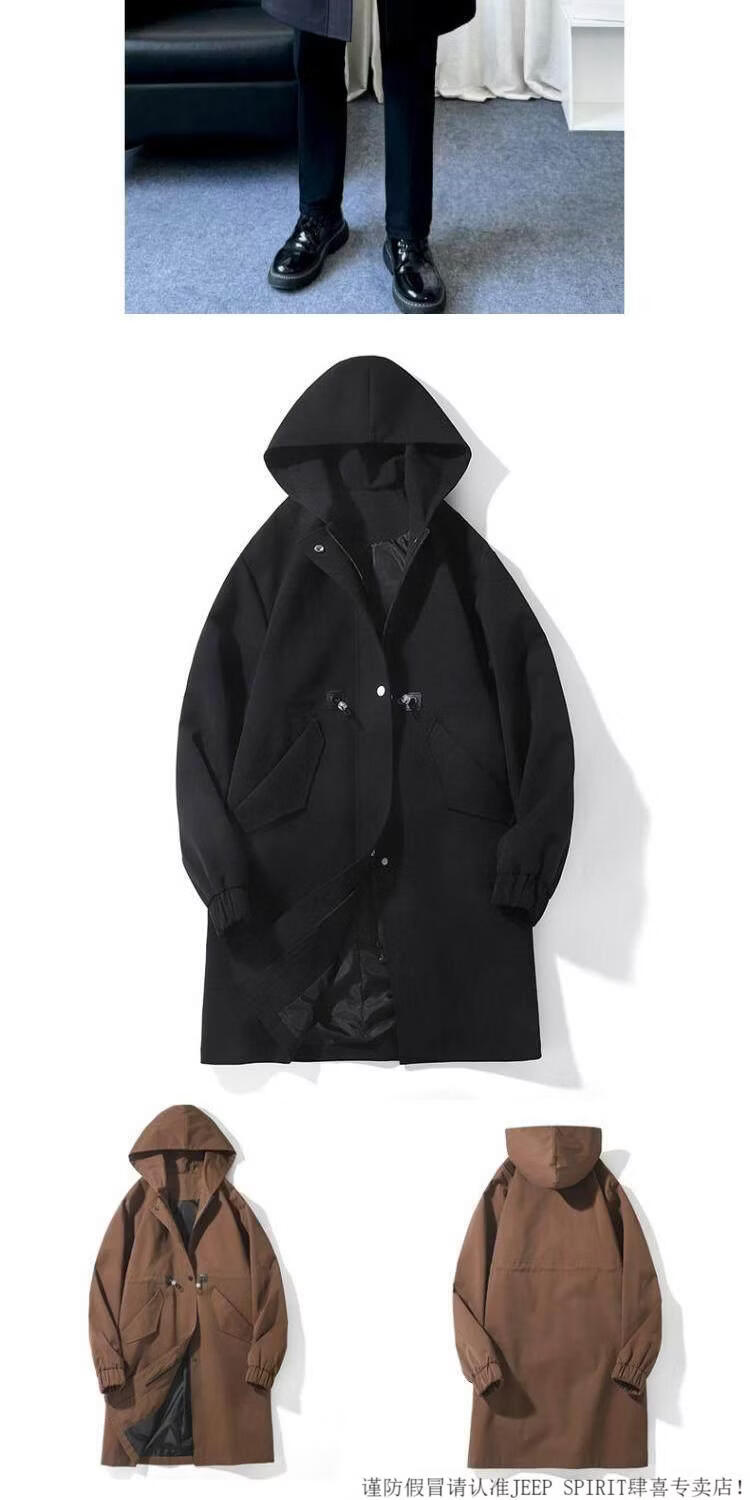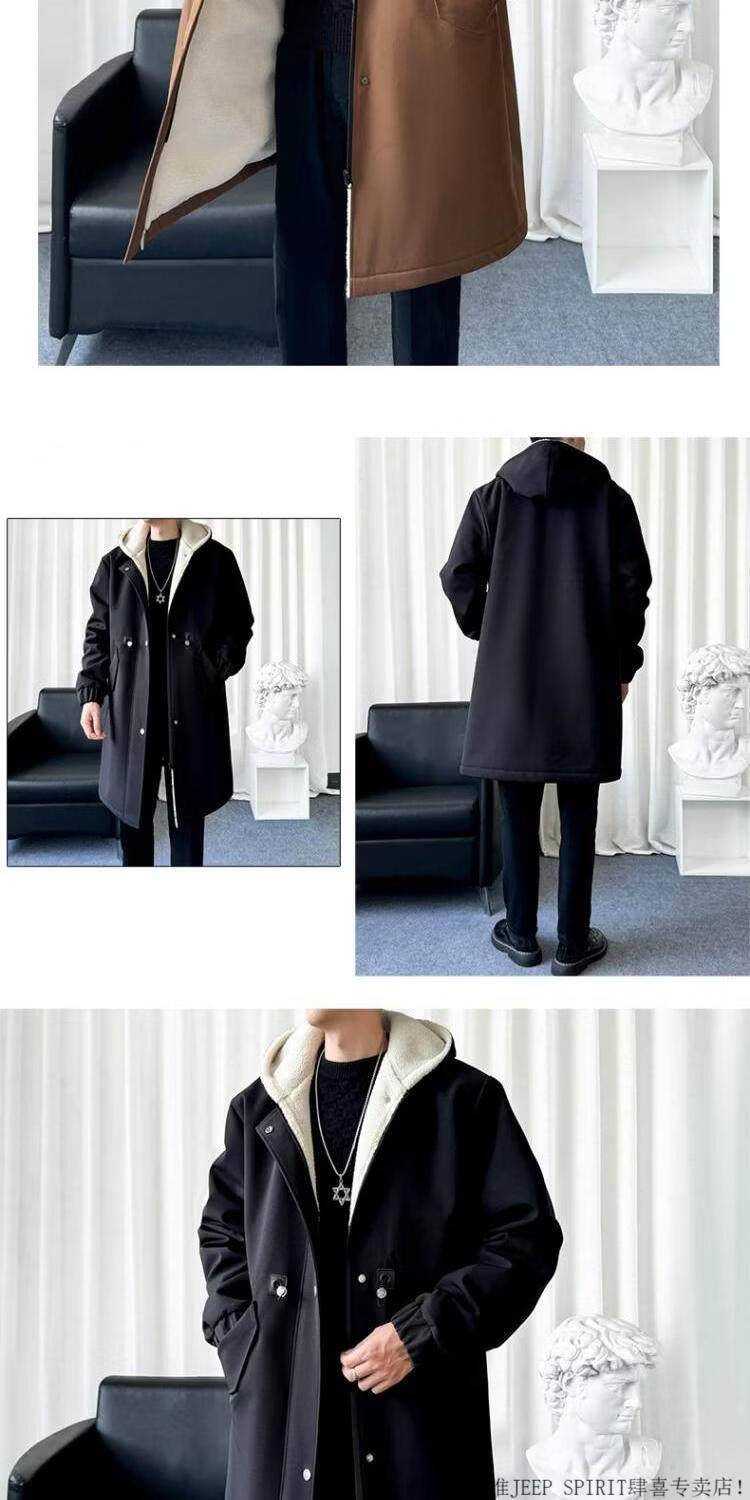 JEEP SPIRIT风衣外套男款士冬秋冬季加绒加厚羊羔毛绒棉衣棉服中长款派克大衣 黑色 常规 M 宽松版型