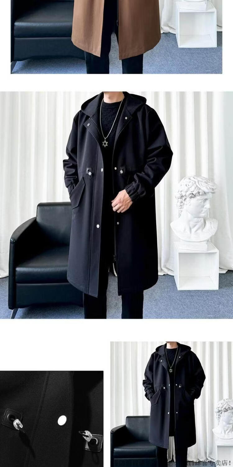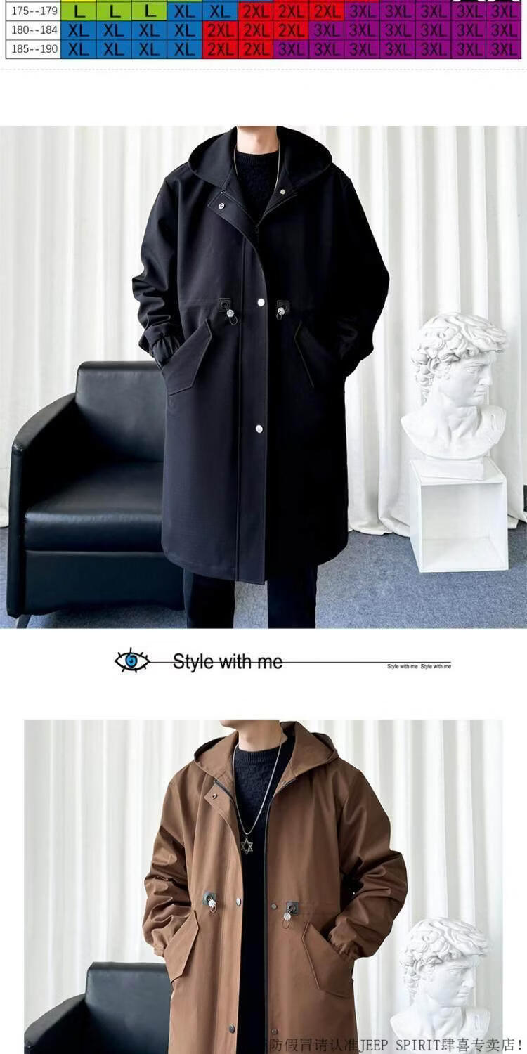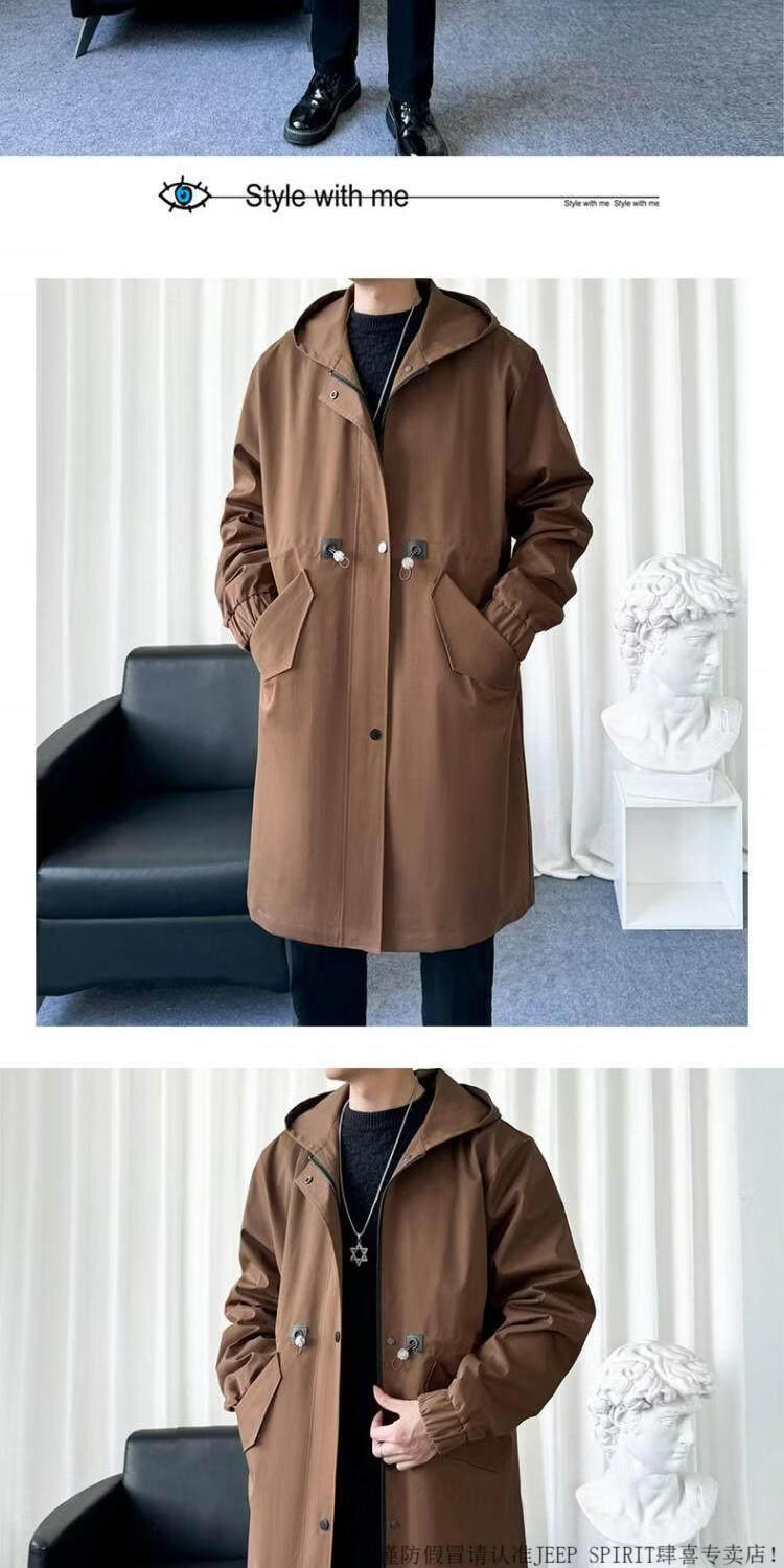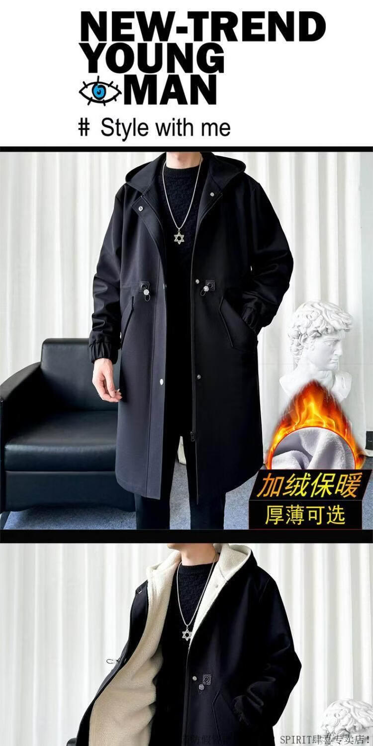 JEEP SPIRIT风衣外套男款士冬秋冬季加绒加厚羊羔毛绒棉衣棉服中长款派克大衣 黑色 常规 M 宽松版型