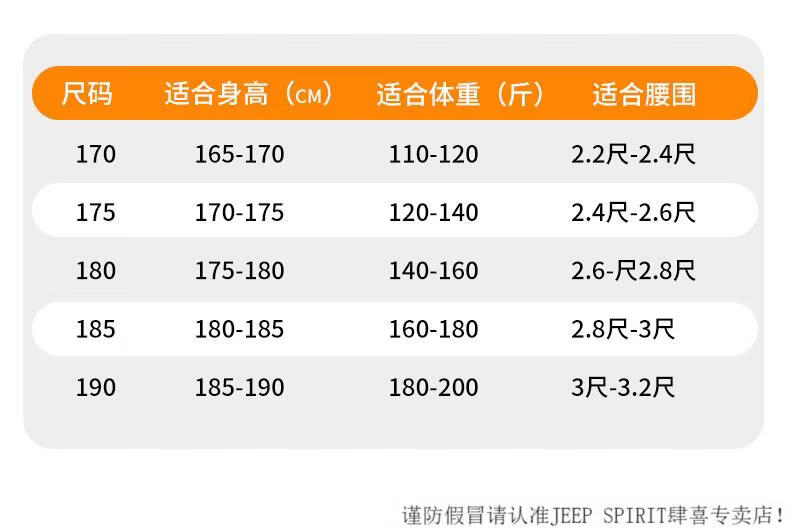 China (cm) 165 / 88-90 170 / 96-98 175 / 108-110 180 / 118-122 185 / 126-130
