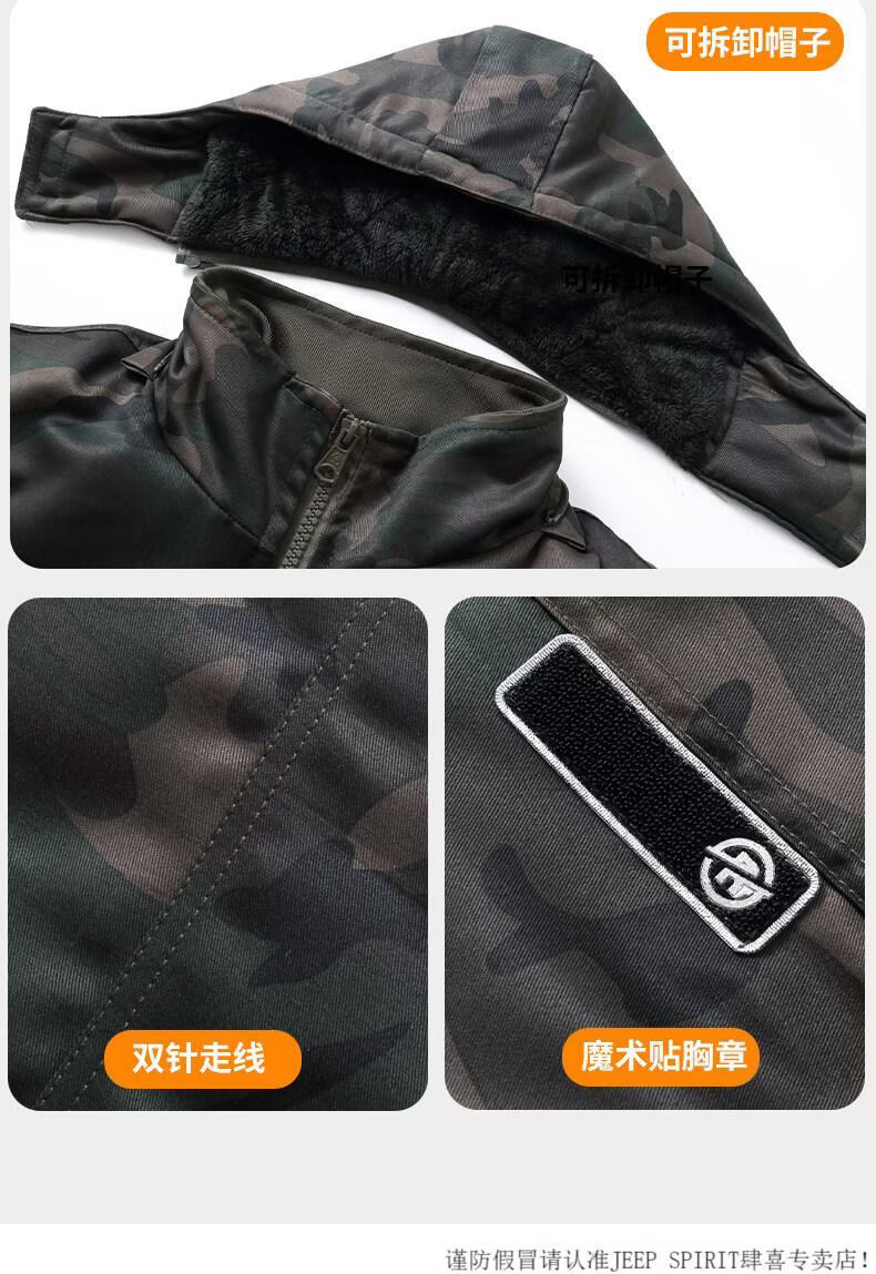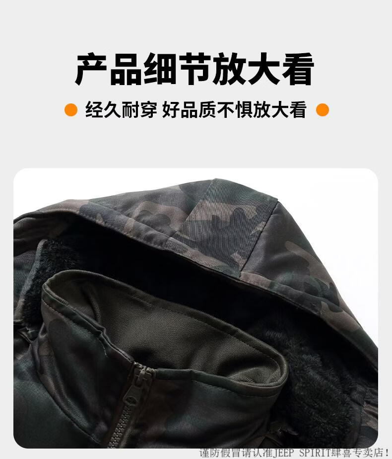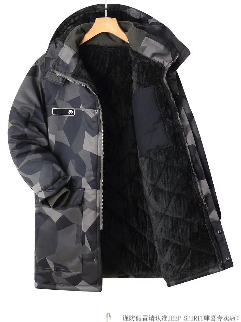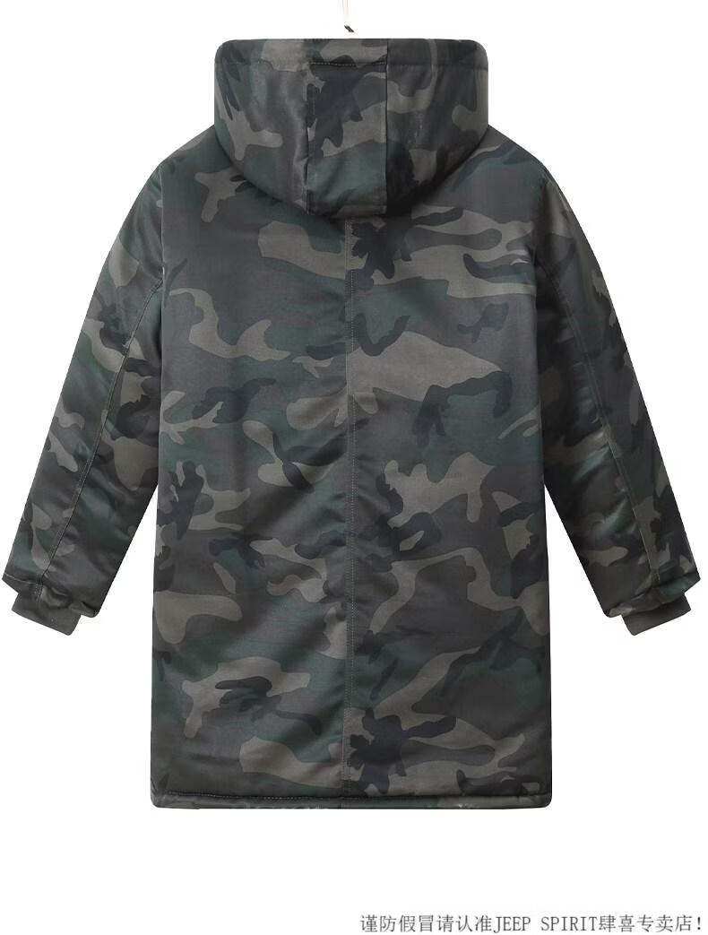 JEEP SPIRIT cotton coat men's winter thickened mid-length camouflage coat cold storage cold-proof clothing warm workwear labor protection cotton jacket jacket for men G Green Jungle mid-length can protect the thighs plus velvet and thicker M 170 suitable for 100-130Jin Jin is equal to 0.5 kg