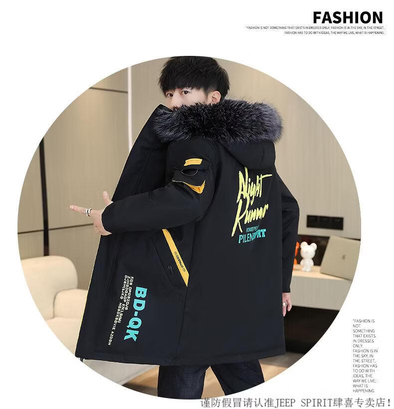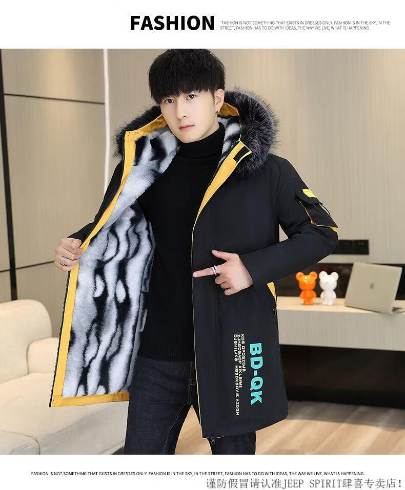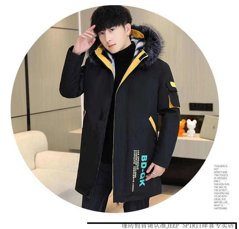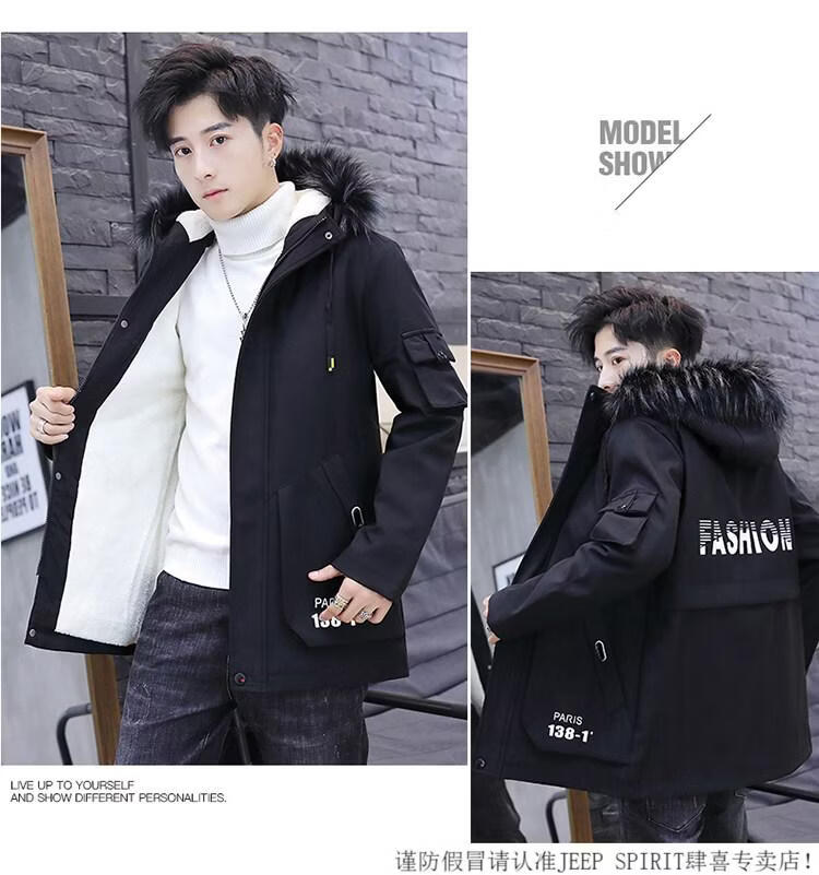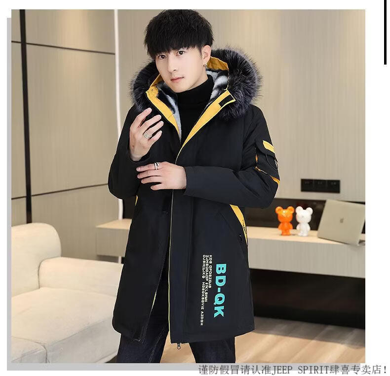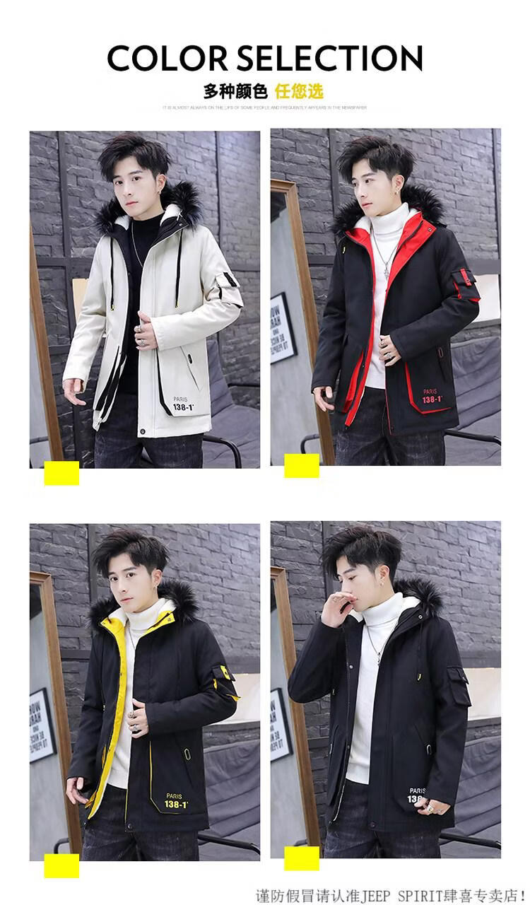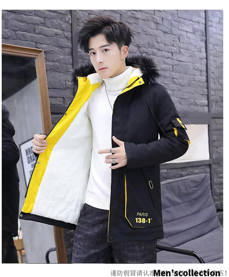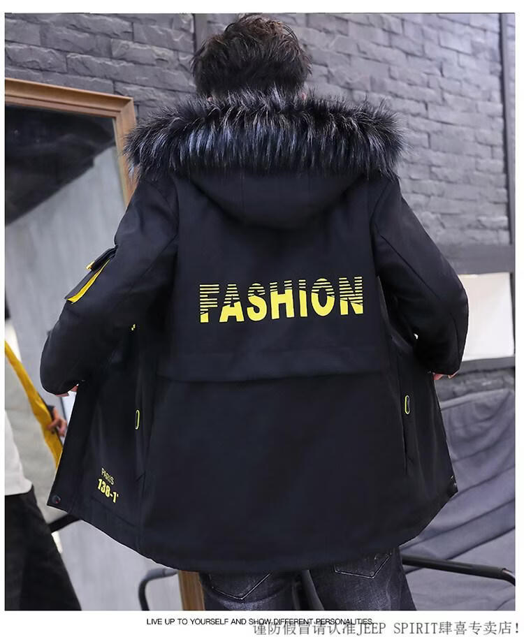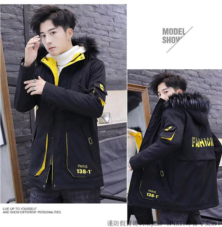 JEEP SPIRIT новая зимняя мужская хлопчатобумажная куртка плюс бархат и утепление для мужчин, ветровка средней длины, зимняя одежда, морозостойкая и теплая куртка на ватном подкладке JH66 черно-желтая плюс бархат и утолщение (с меховым воротником) M