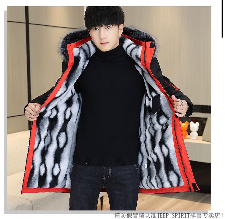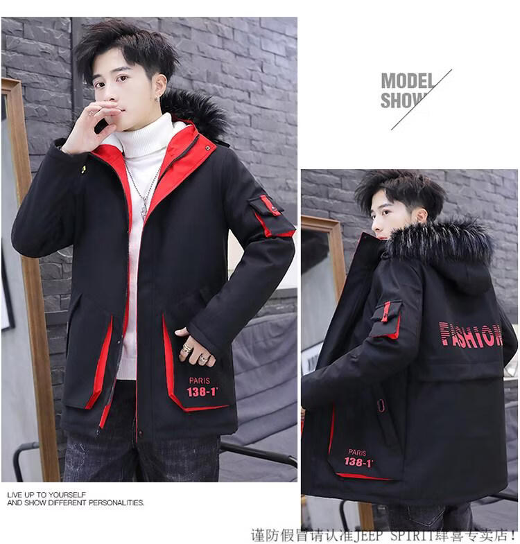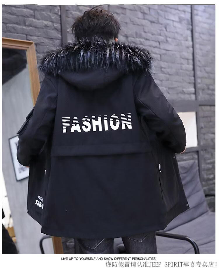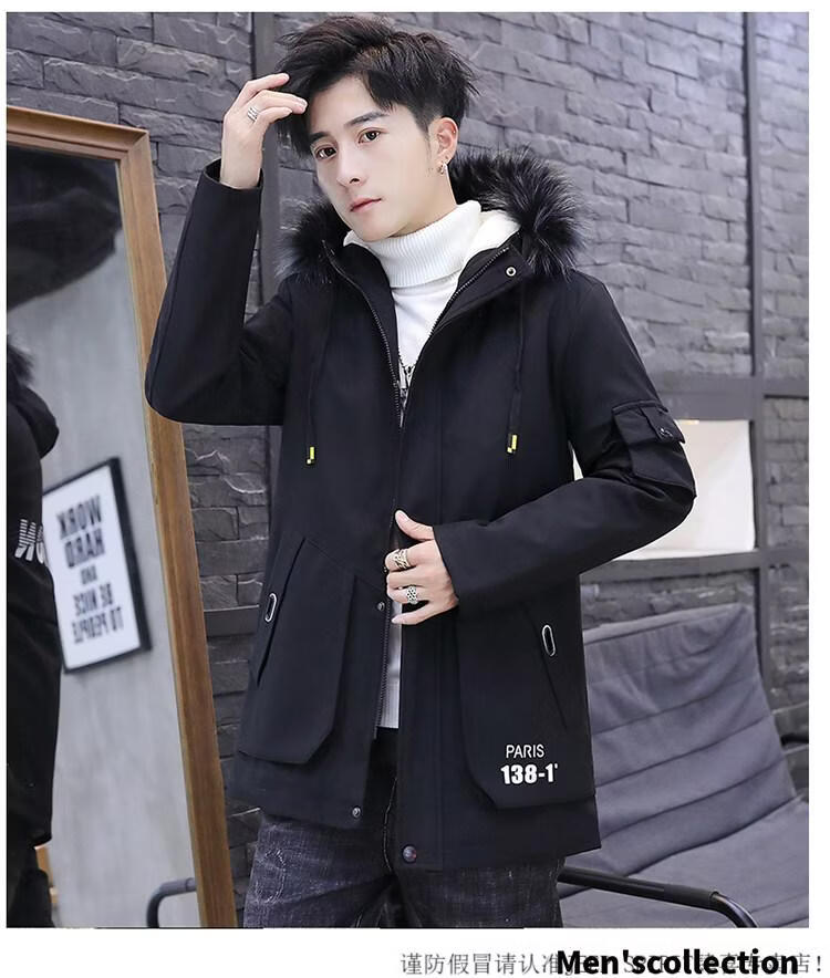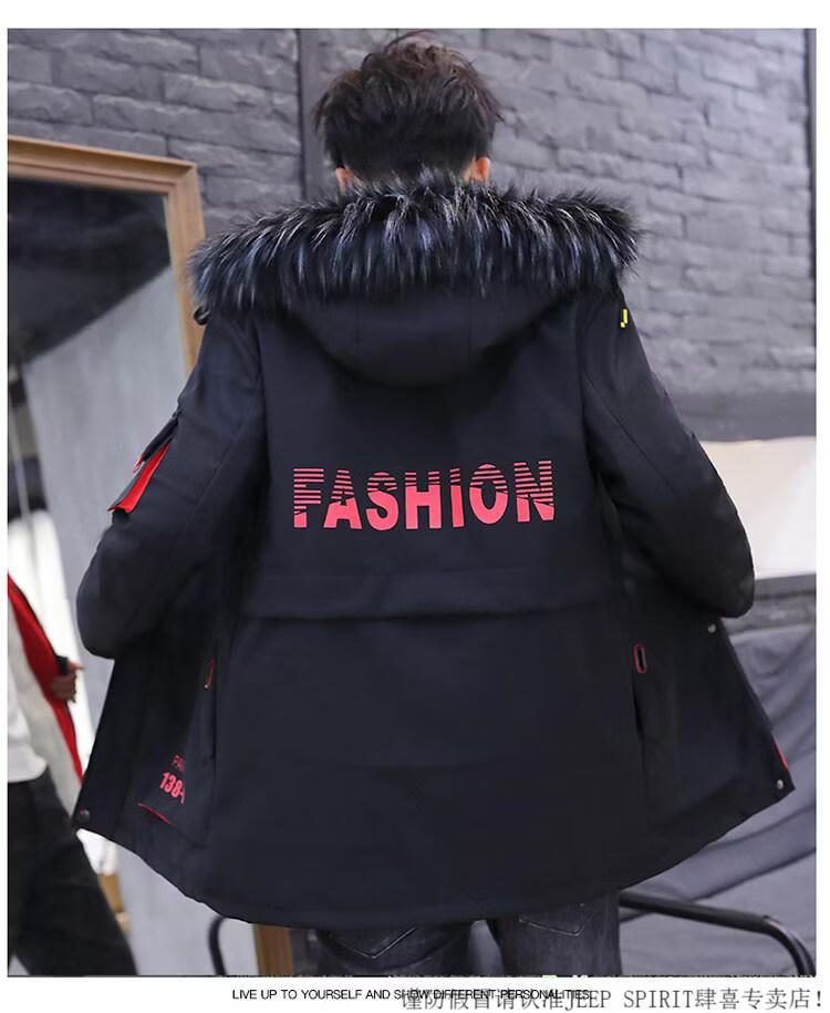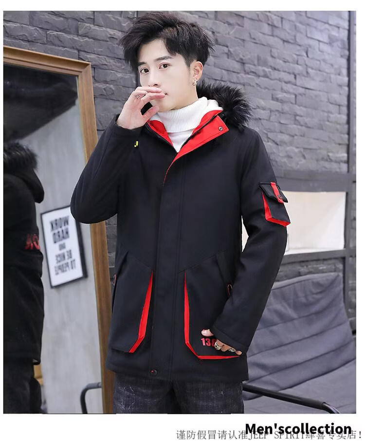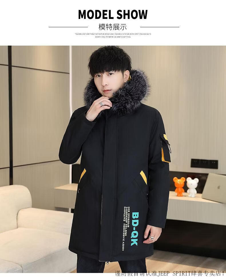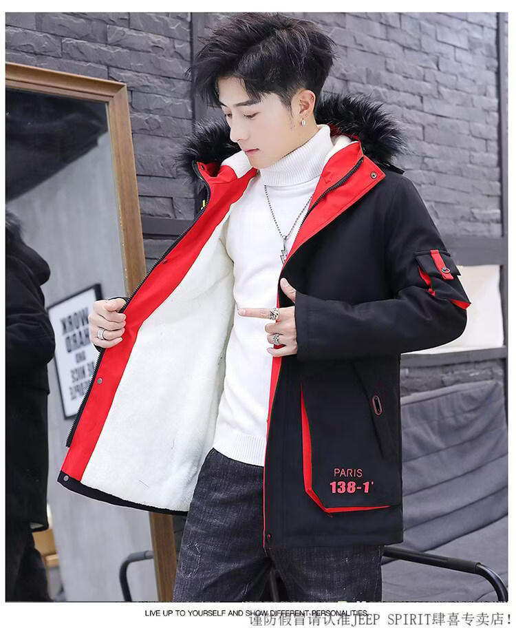 JEEP SPIRIT новая зимняя мужская хлопчатобумажная куртка плюс бархат и утепление для мужчин, ветровка средней длины, зимняя одежда, морозостойкая и теплая куртка на ватном подкладке JH66 черно-желтая плюс бархат и утолщение (с меховым воротником) M