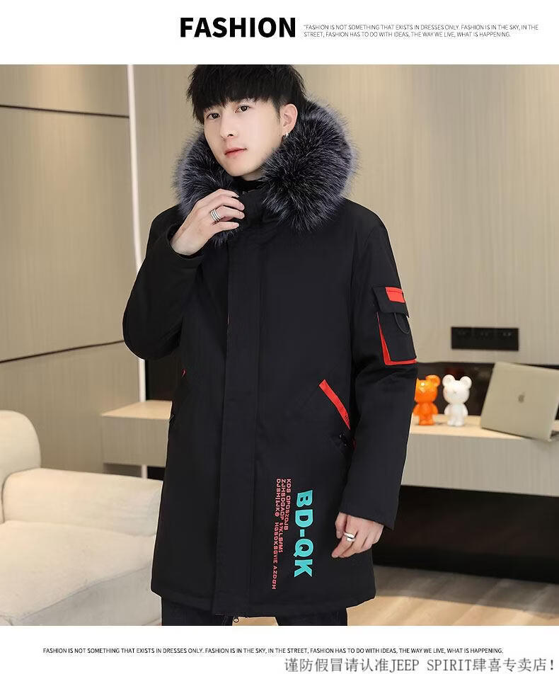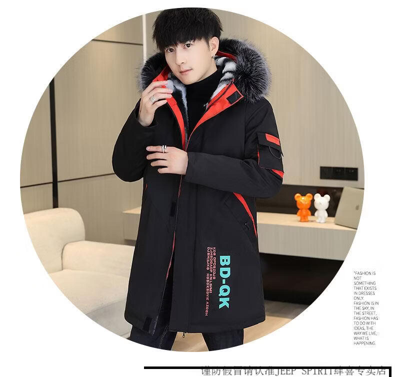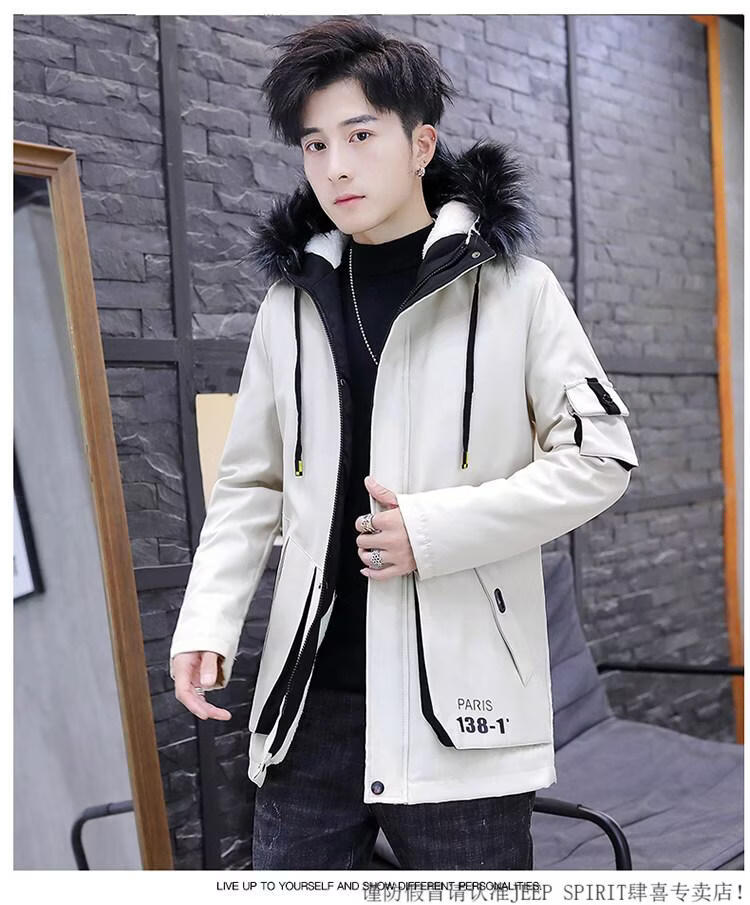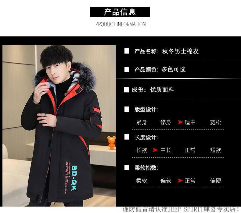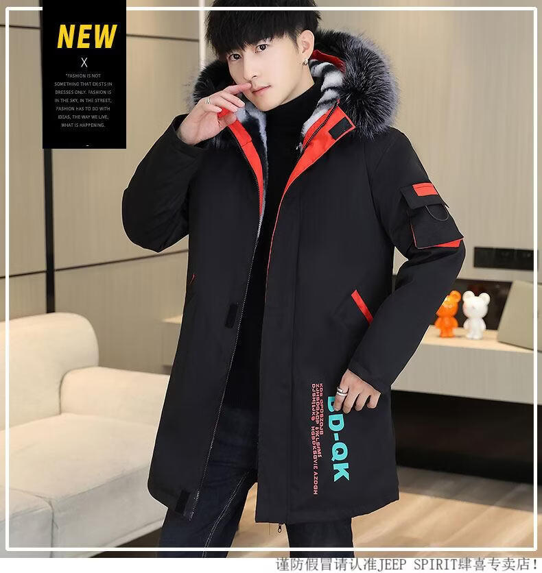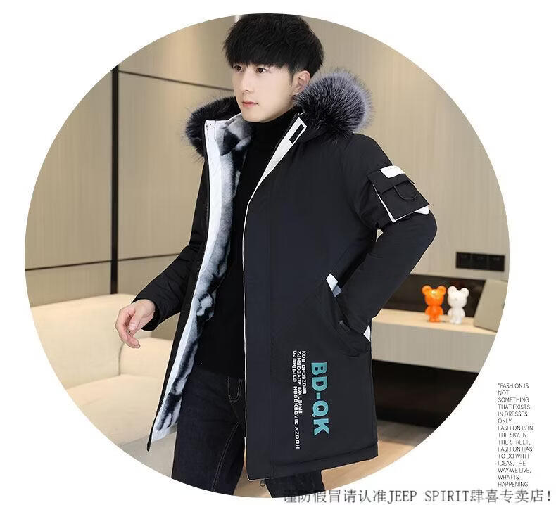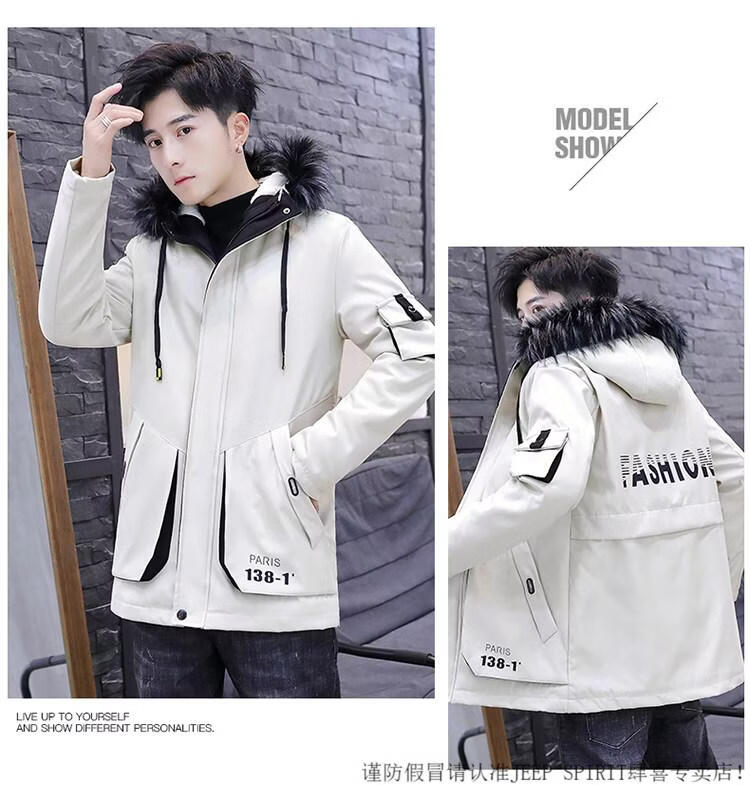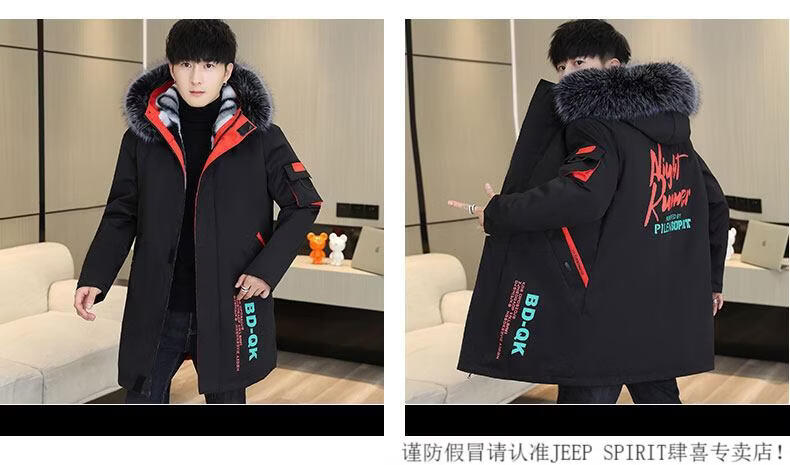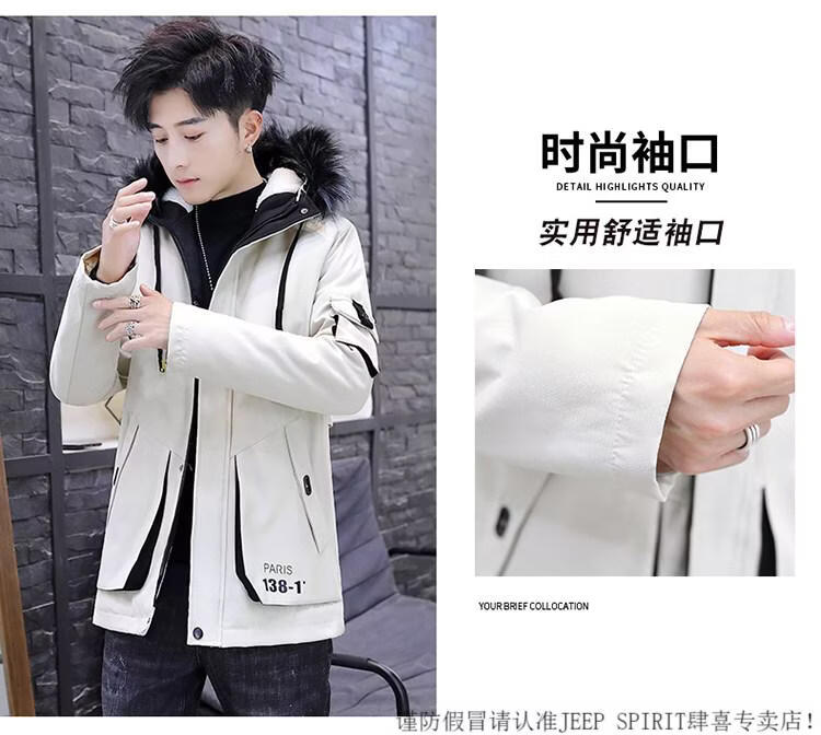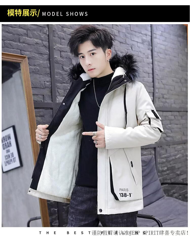 JEEP SPIRIT новая зимняя мужская хлопчатобумажная куртка плюс бархат и утепление для мужчин, ветровка средней длины, зимняя одежда, морозостойкая и теплая куртка на ватном подкладке JH66 черно-желтая плюс бархат и утолщение (с меховым воротником) M
