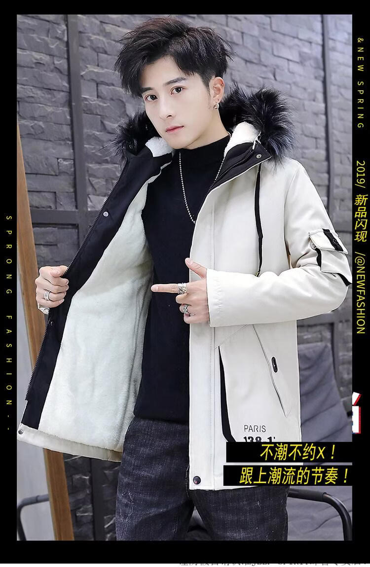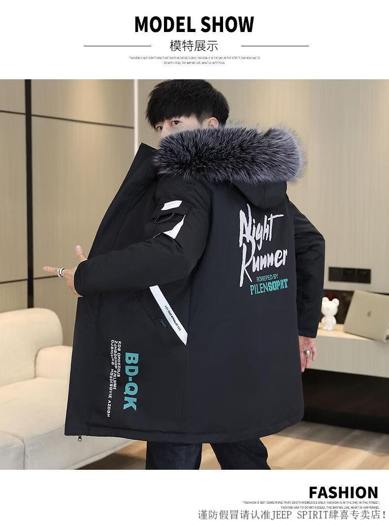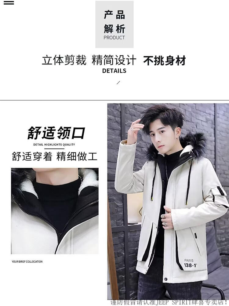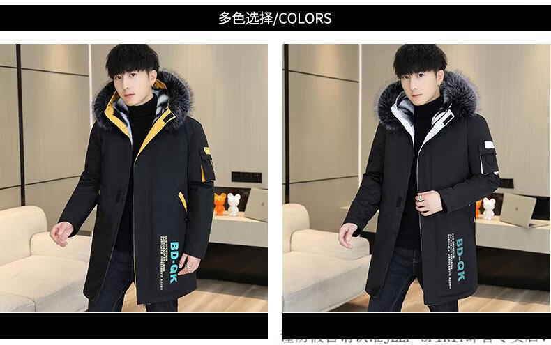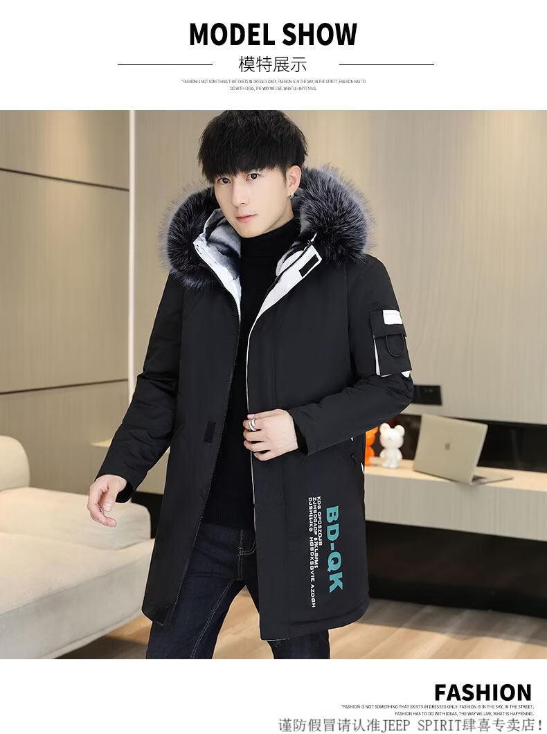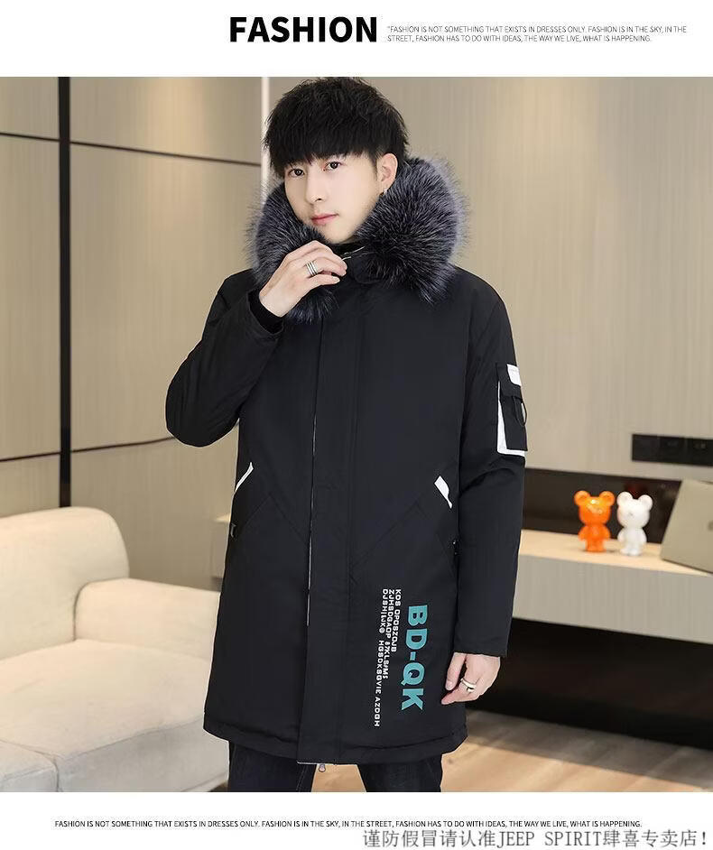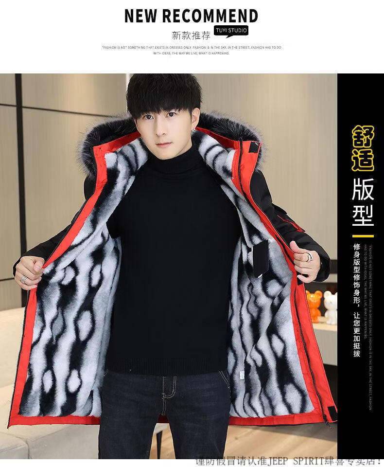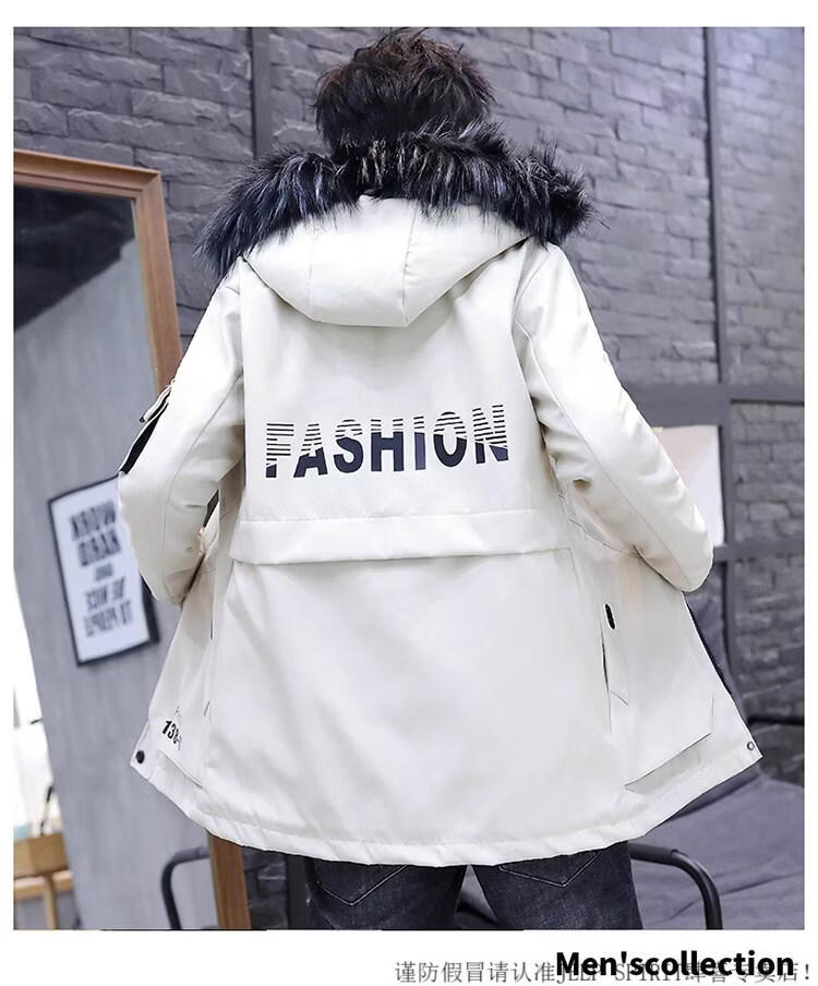 JEEP SPIRIT новая зимняя мужская хлопчатобумажная куртка плюс бархат и утепление для мужчин, ветровка средней длины, зимняя одежда, морозостойкая и теплая куртка на ватном подкладке JH66 черно-желтая плюс бархат и утолщение (с меховым воротником) M