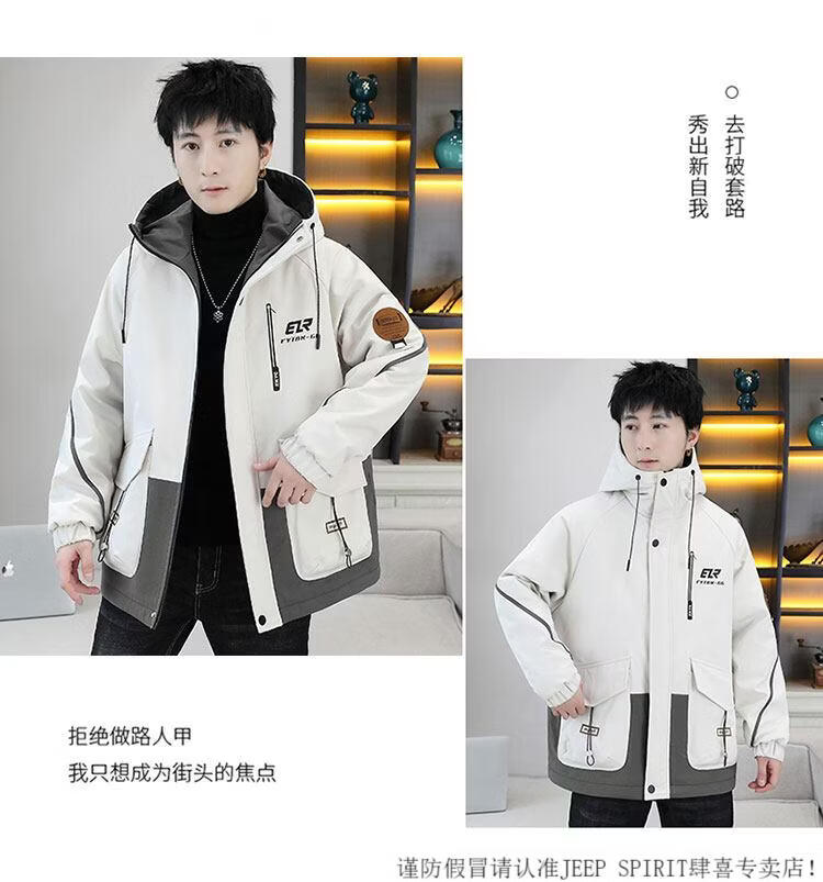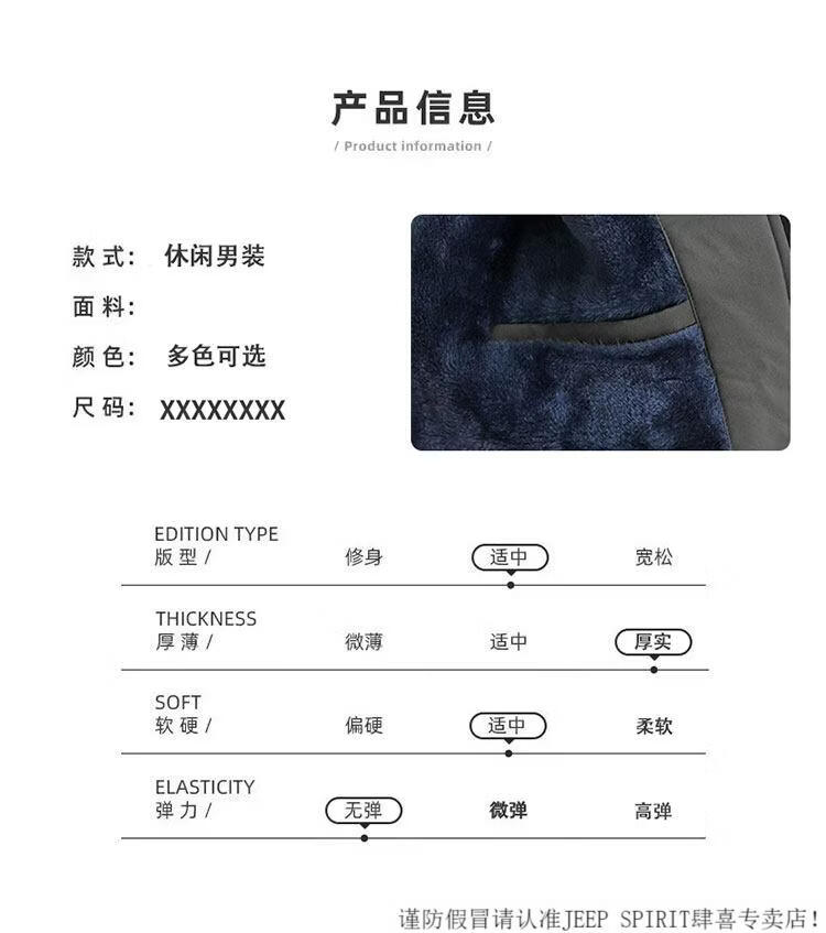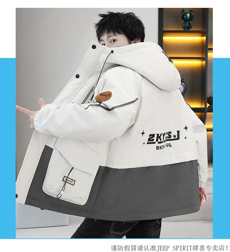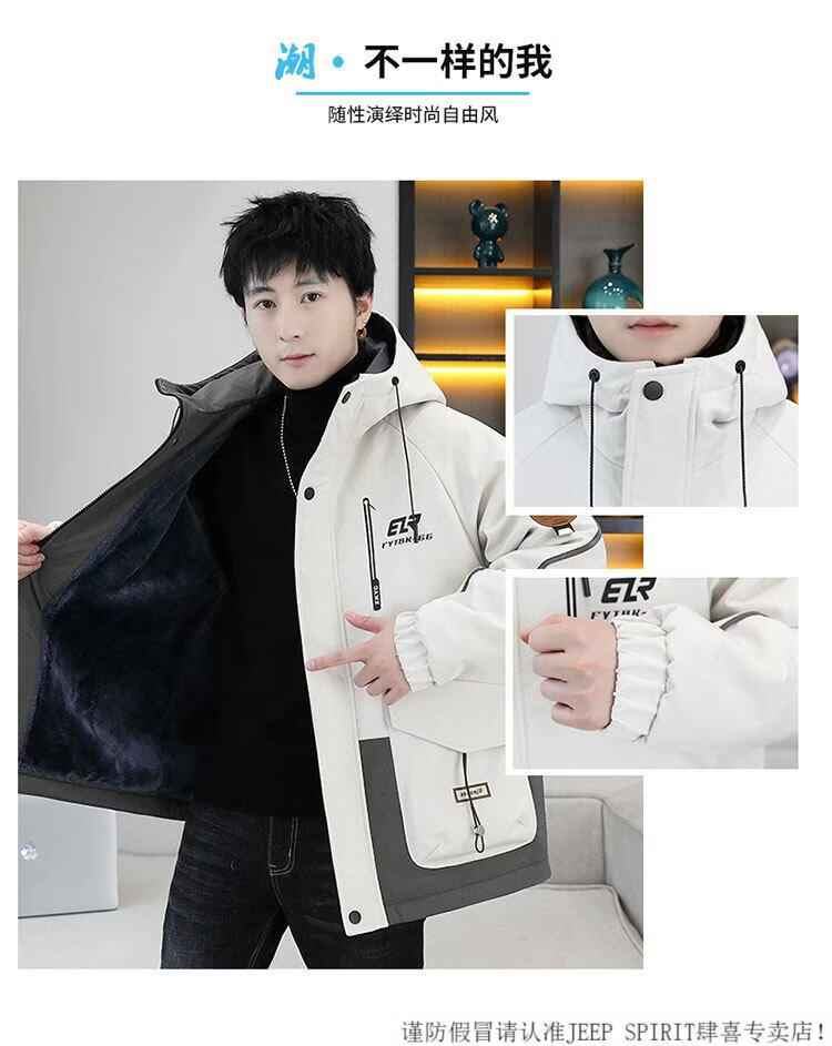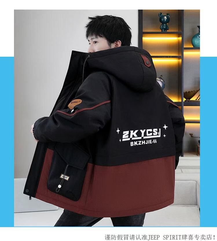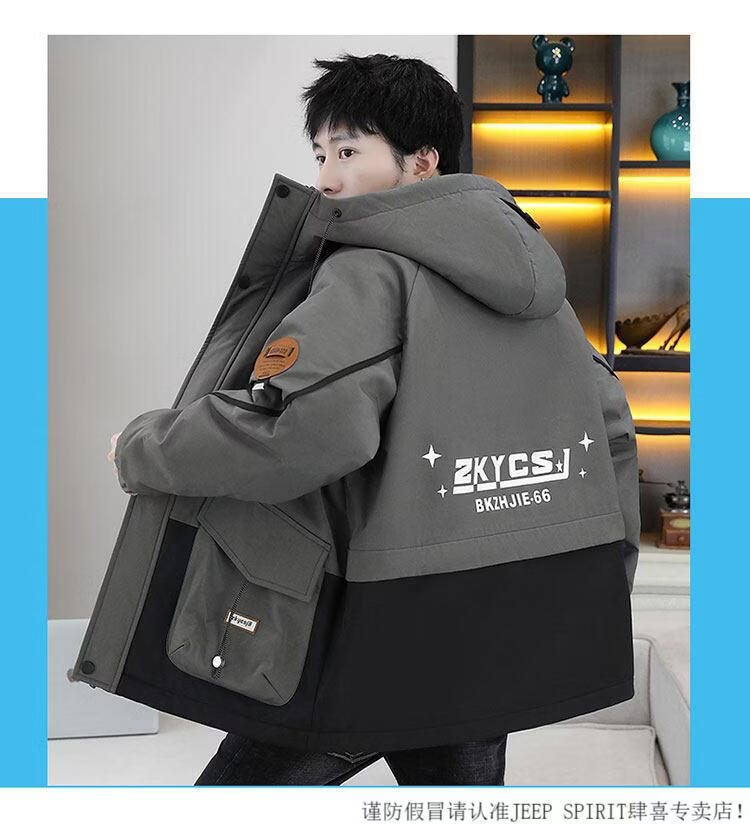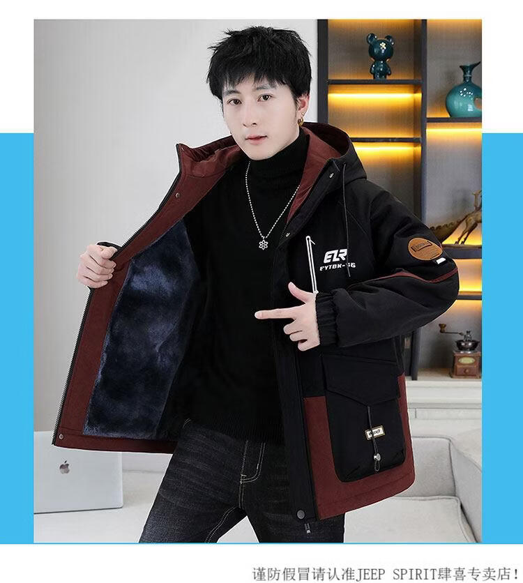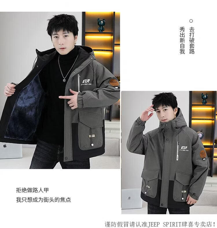 JEEP SPIRIT winter coat men's jacket hooded casual plus velvet thickened warm work jacket windbreaker 2025 new winter wear black M