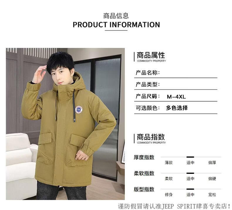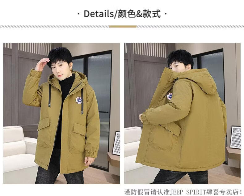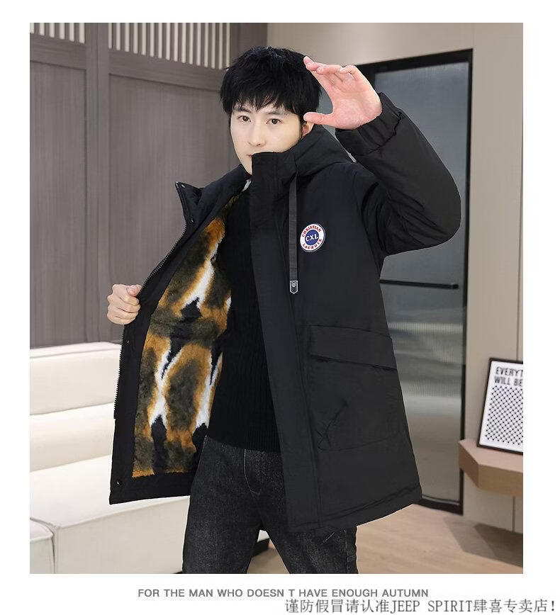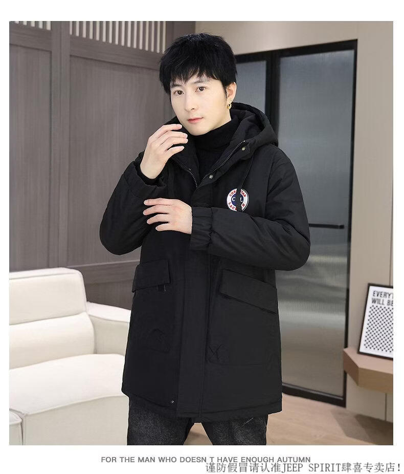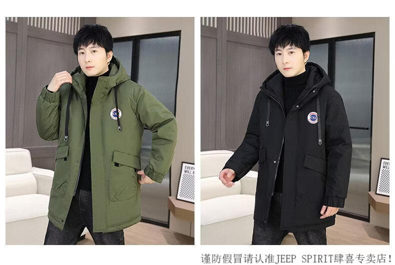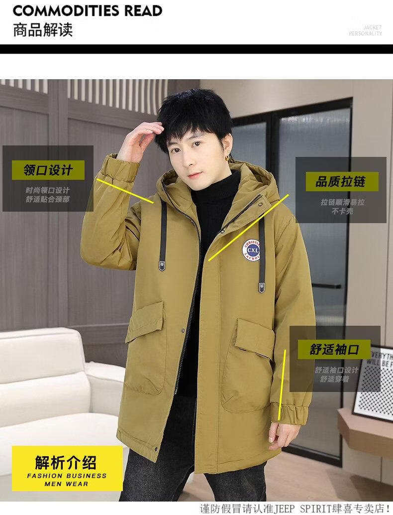 JEEP SPIRIT parka men's winter jacket plus velvet and thickening mid-length windproof jacket trendy winter warm cotton jacket for men 2801 black plus velvet and thickening M 90-110Jin Jin is equal to 0.5 kg
