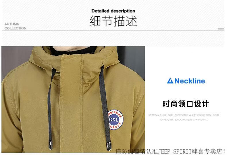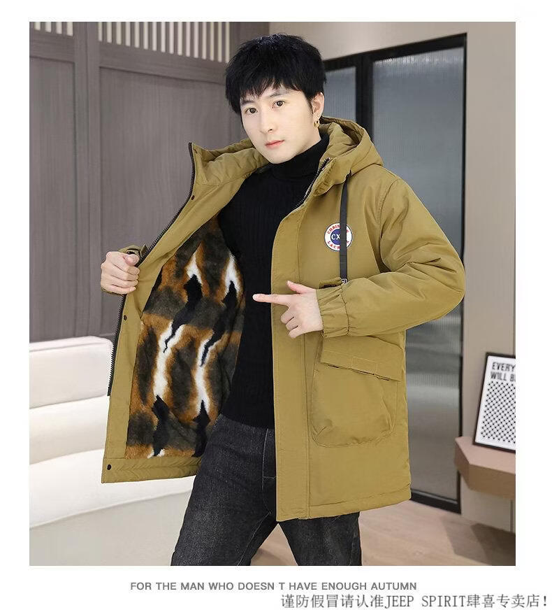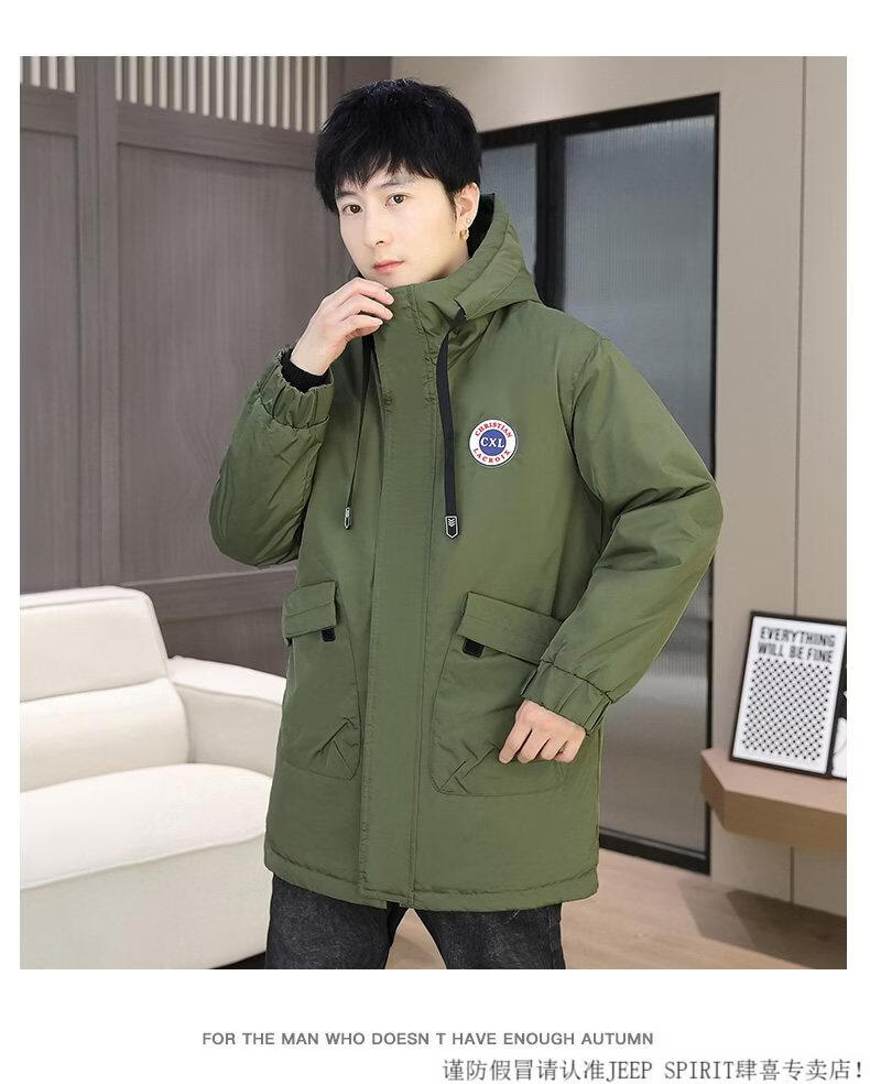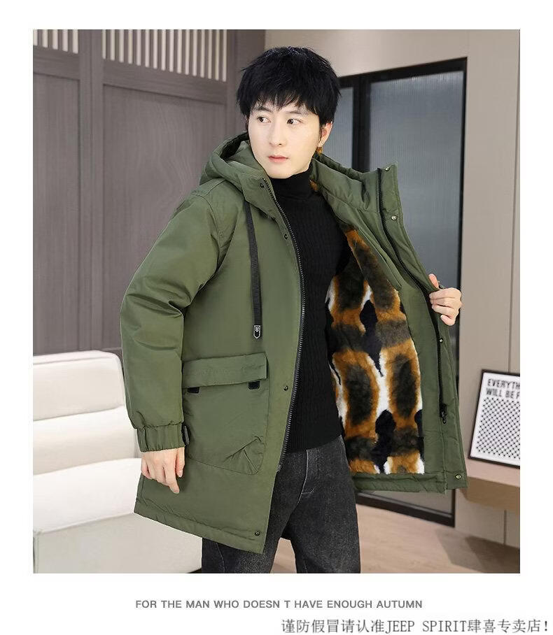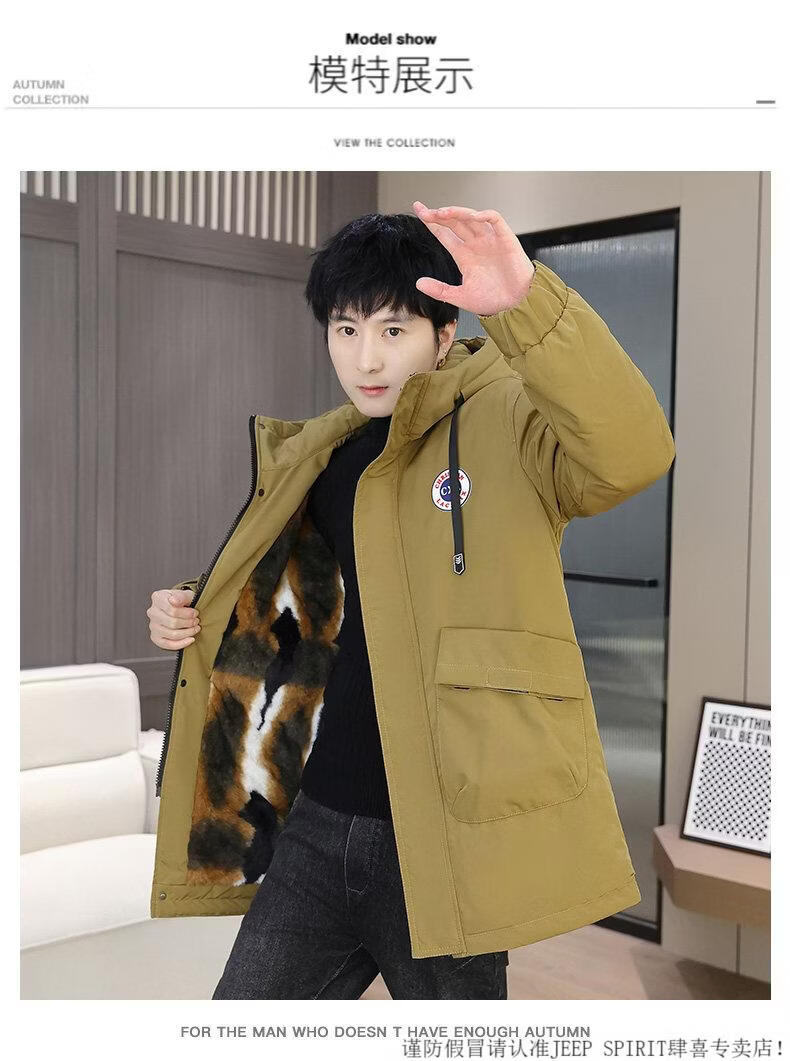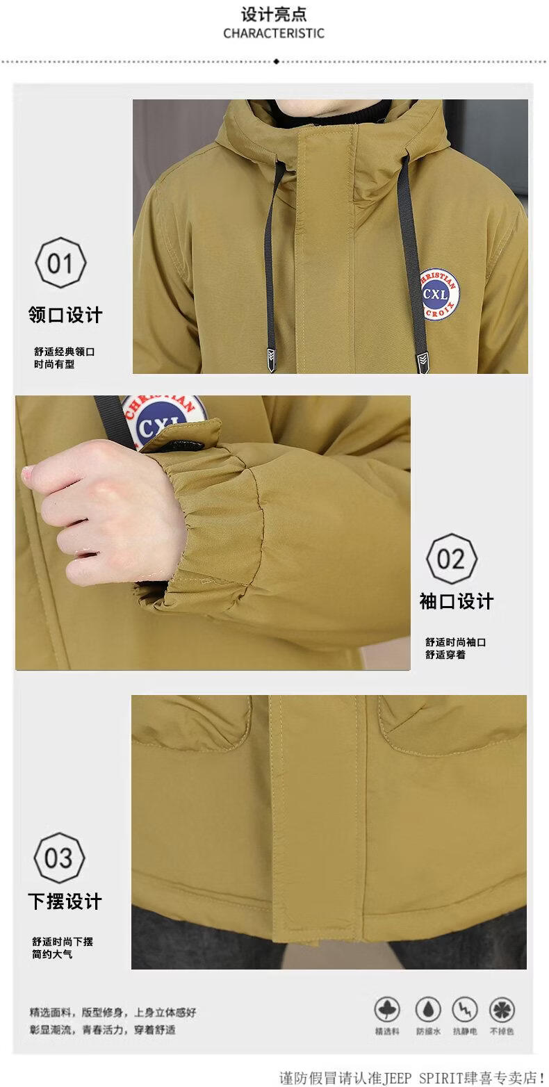 JEEP SPIRIT parka men's winter jacket plus velvet and thickening mid-length windproof jacket trendy winter warm cotton jacket for men 2801 black plus velvet and thickening M 90-110Jin Jin is equal to 0.5 kg