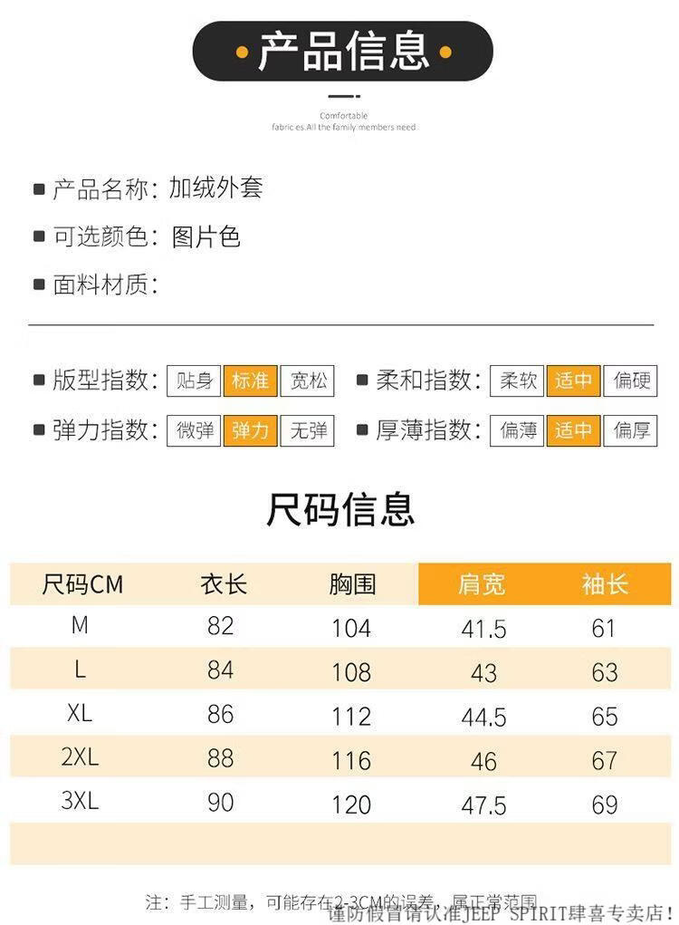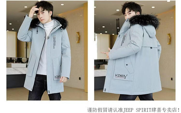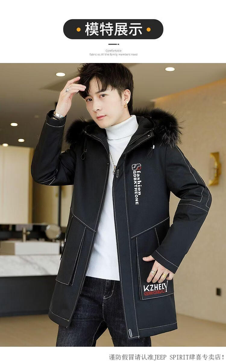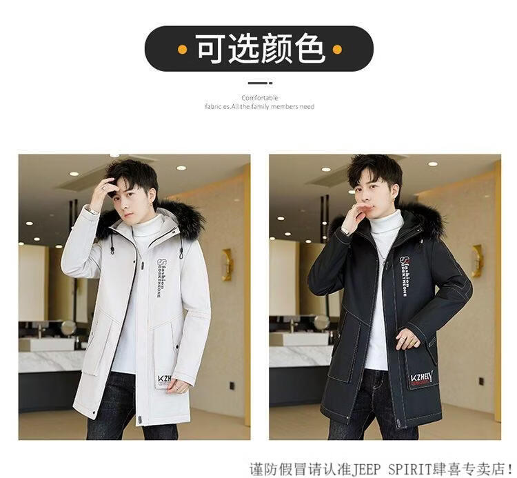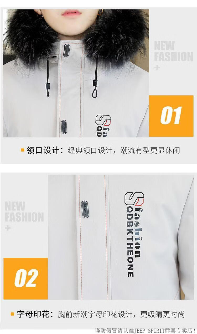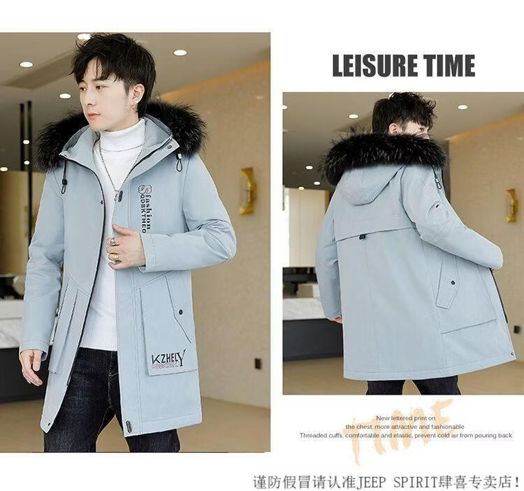 JEEP SPIRIT mid-length windbreaker autumn and winter plus velvet thickened jacket men's simple trendy fashion top winter clothing two-piece set 1/GF plus velvet fur collar-Black M