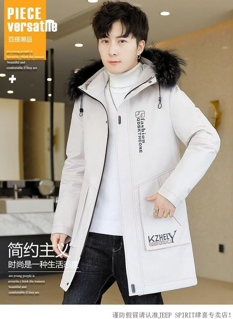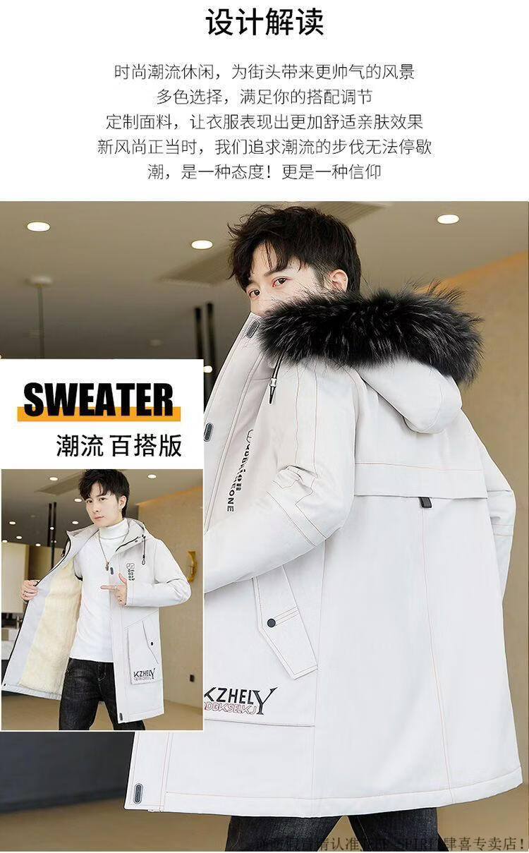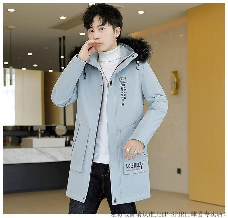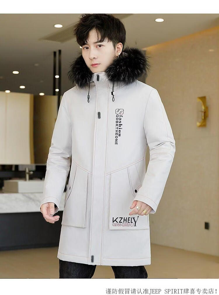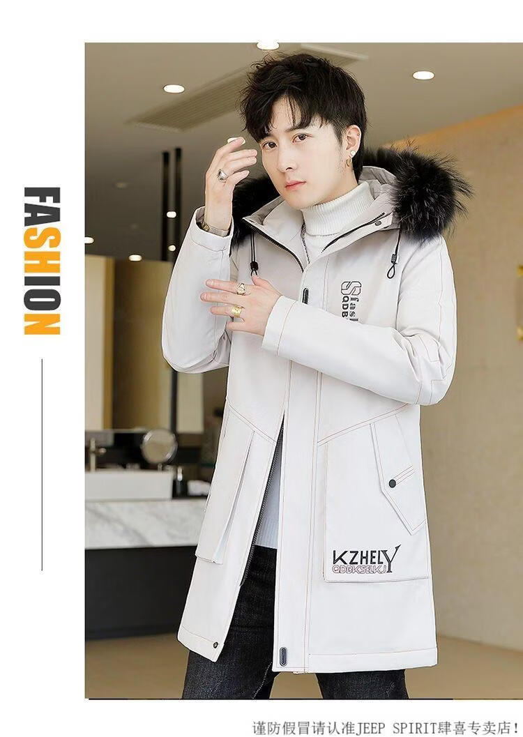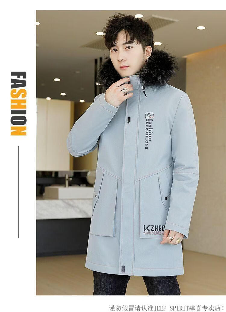 JEEP SPIRIT mid-length windbreaker autumn and winter plus velvet thickened jacket men's simple trendy fashion top winter clothing two-piece set 1/GF plus velvet fur collar-Black M