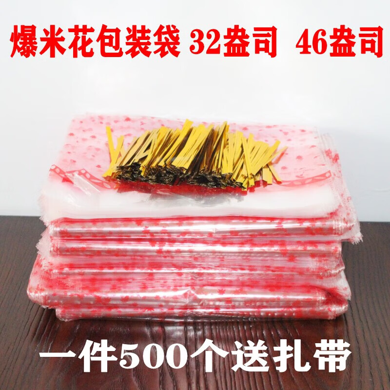 Tuojin popcorn packaging bag large, medium and small transparent small flower dot disposable plastic bag tie wire 500 pieces 32 ounces 19*32cm