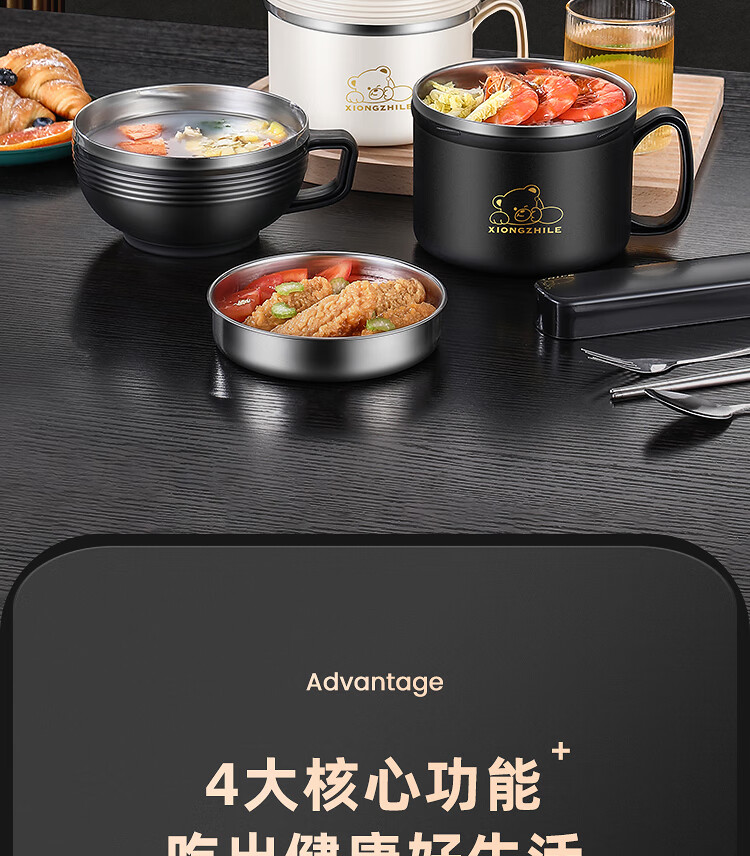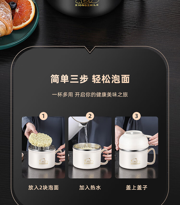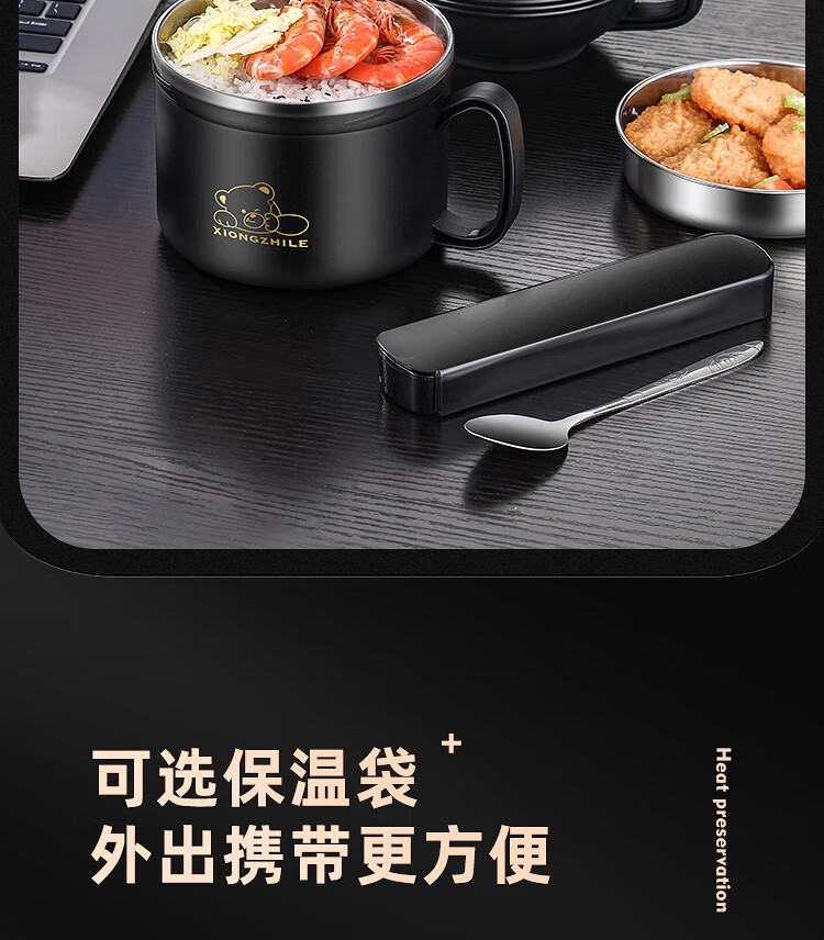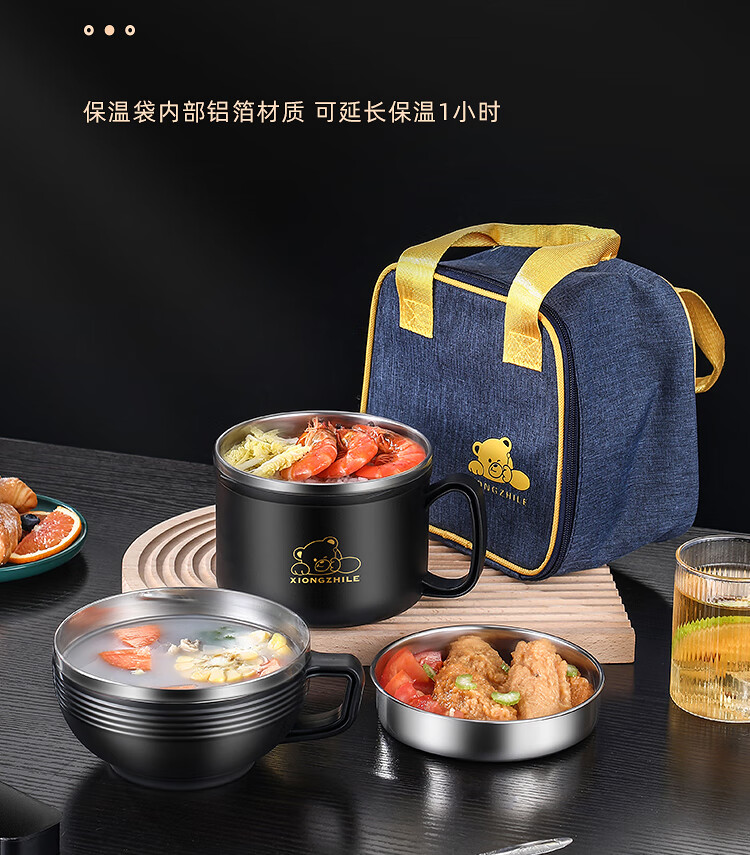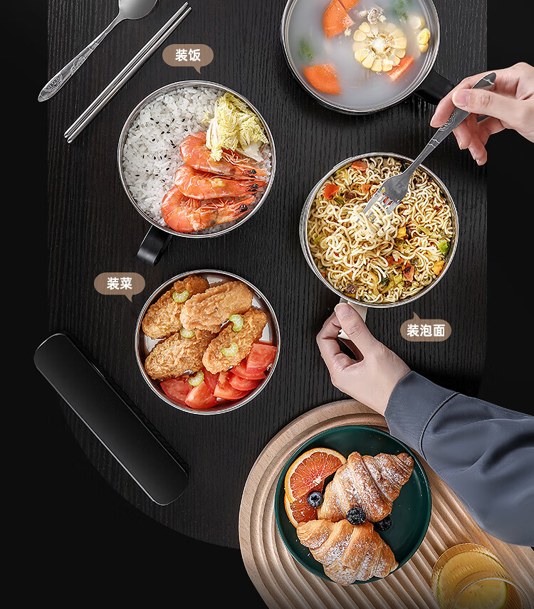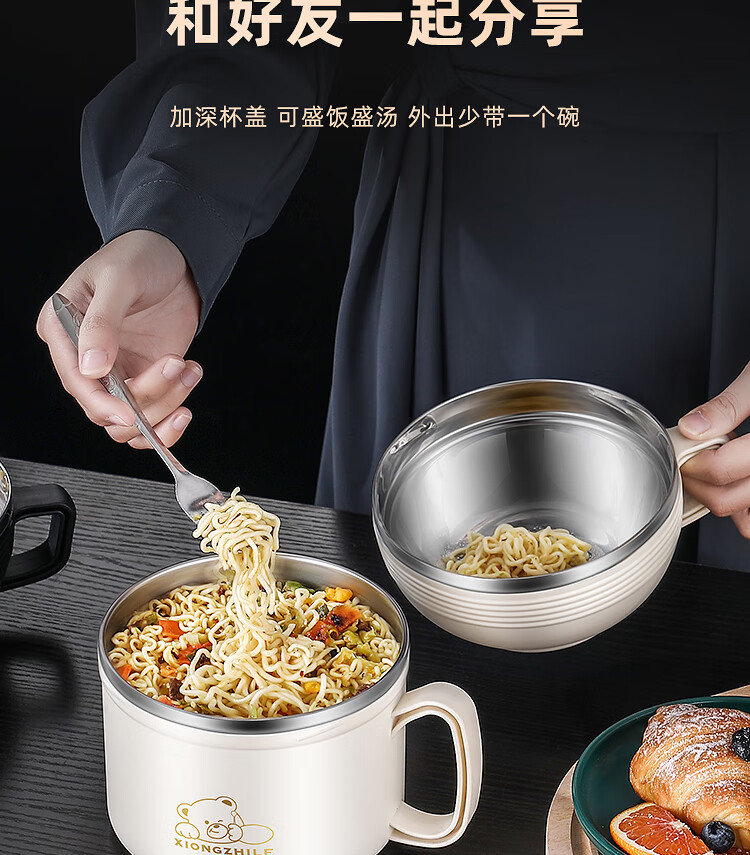 Hualeji thickened 304 stainless steel insulated lunch box large capacity fast food cup student dormitory instant noodle bowl 304 meters white