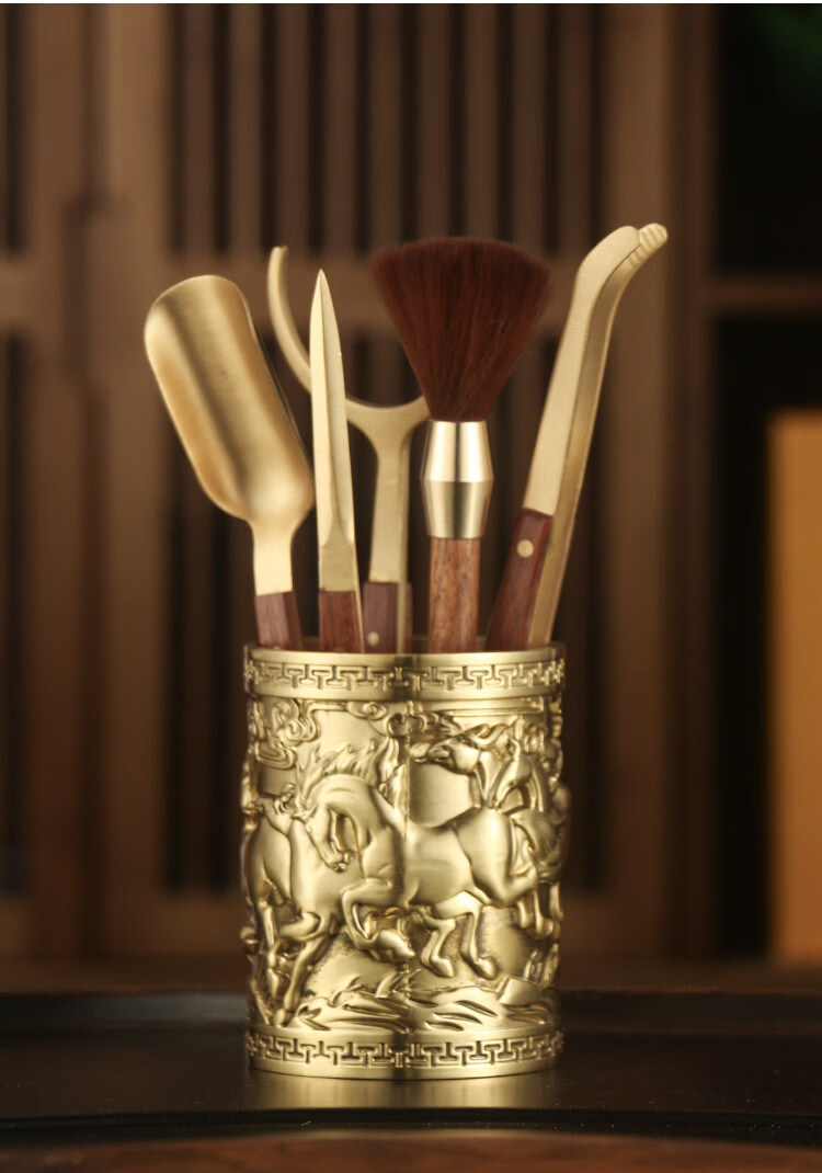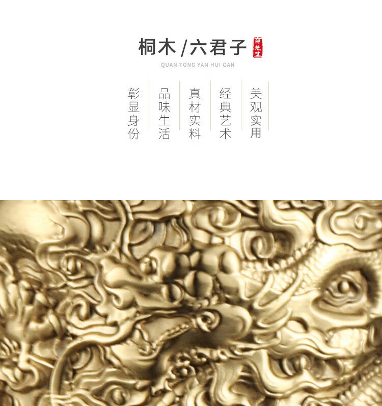 He Jiagong Pure Copper Tea Ceremony Six Gentlemen Set Light Luxury Dragon Pattern Carved Tea Set Accessories Complete Collection of Handmade Tea Art Tools Tea Tweezers All Copper Series-Double Dragons Playing with Pearls Six Gentlemen (about 1000 grams of brass) Free tea