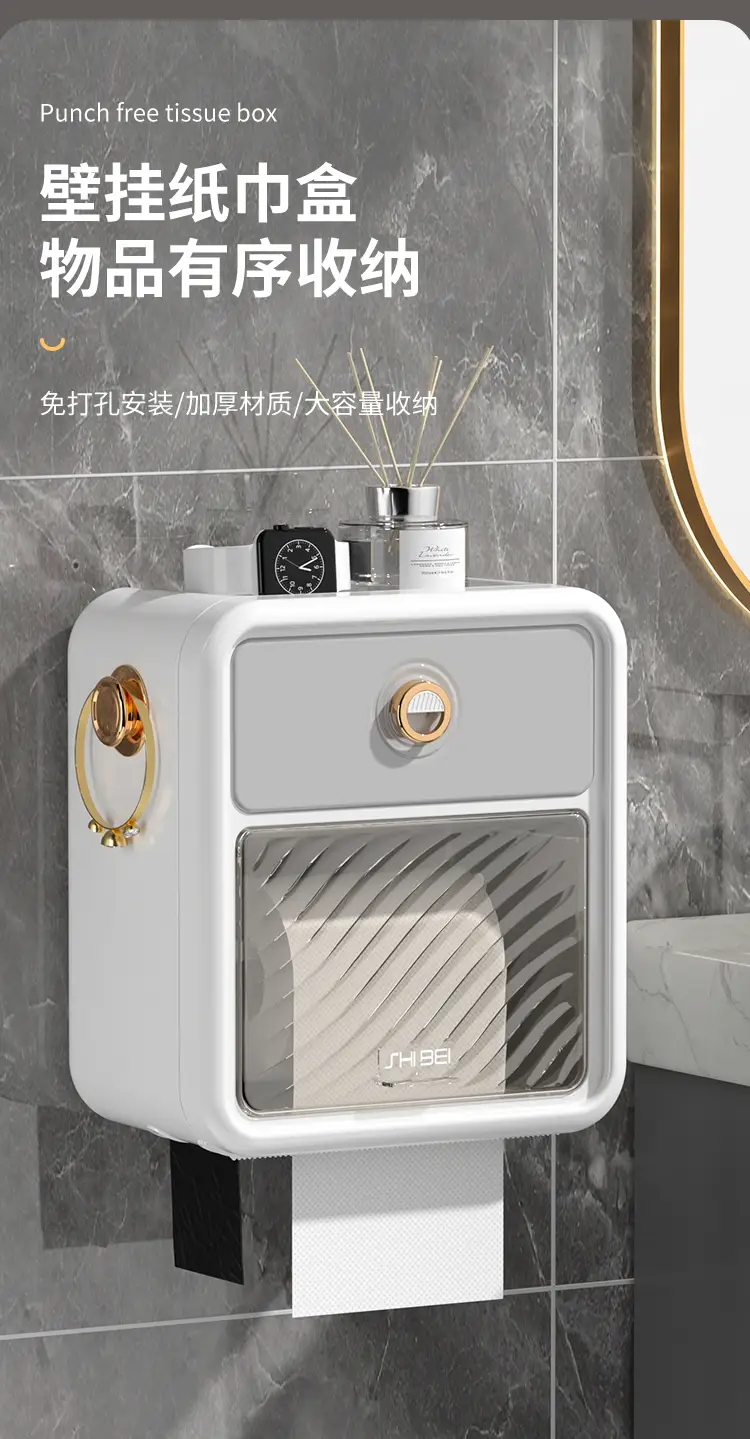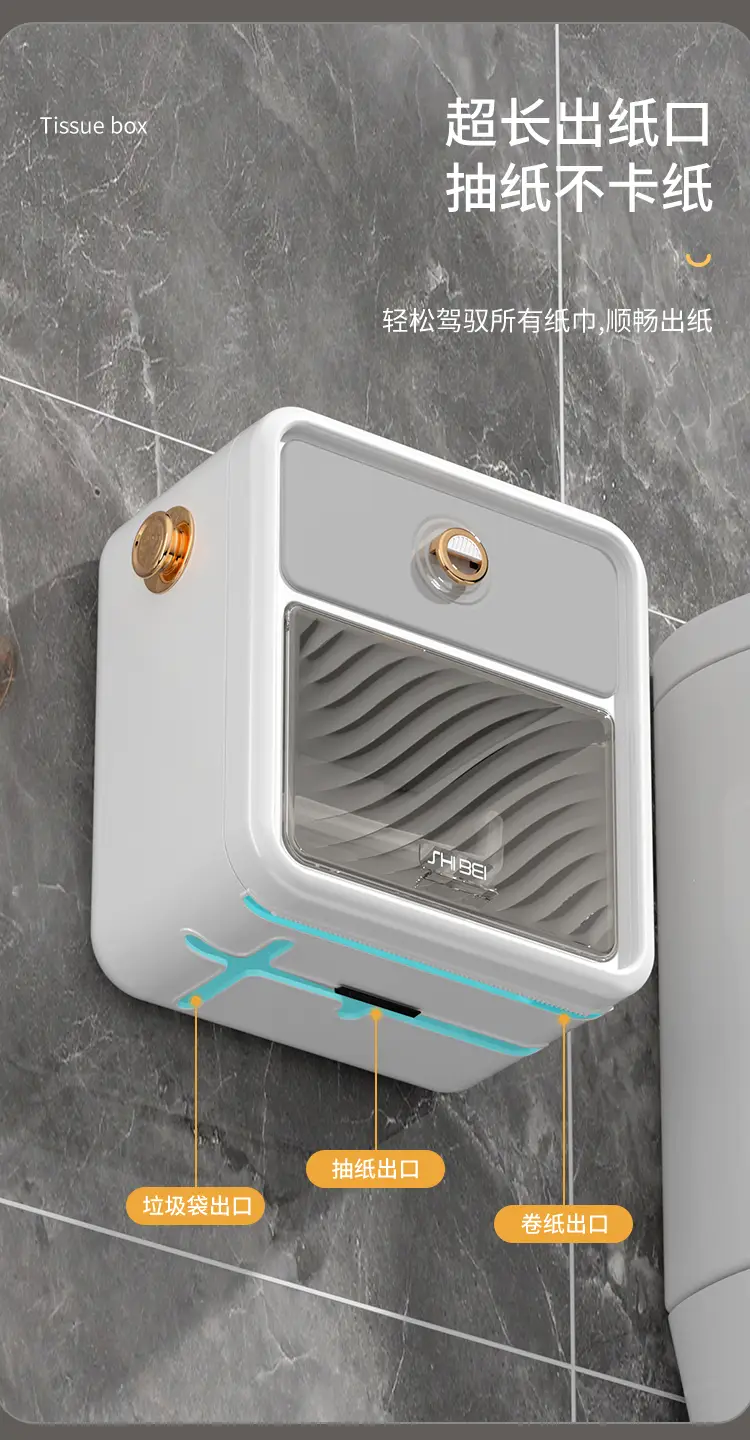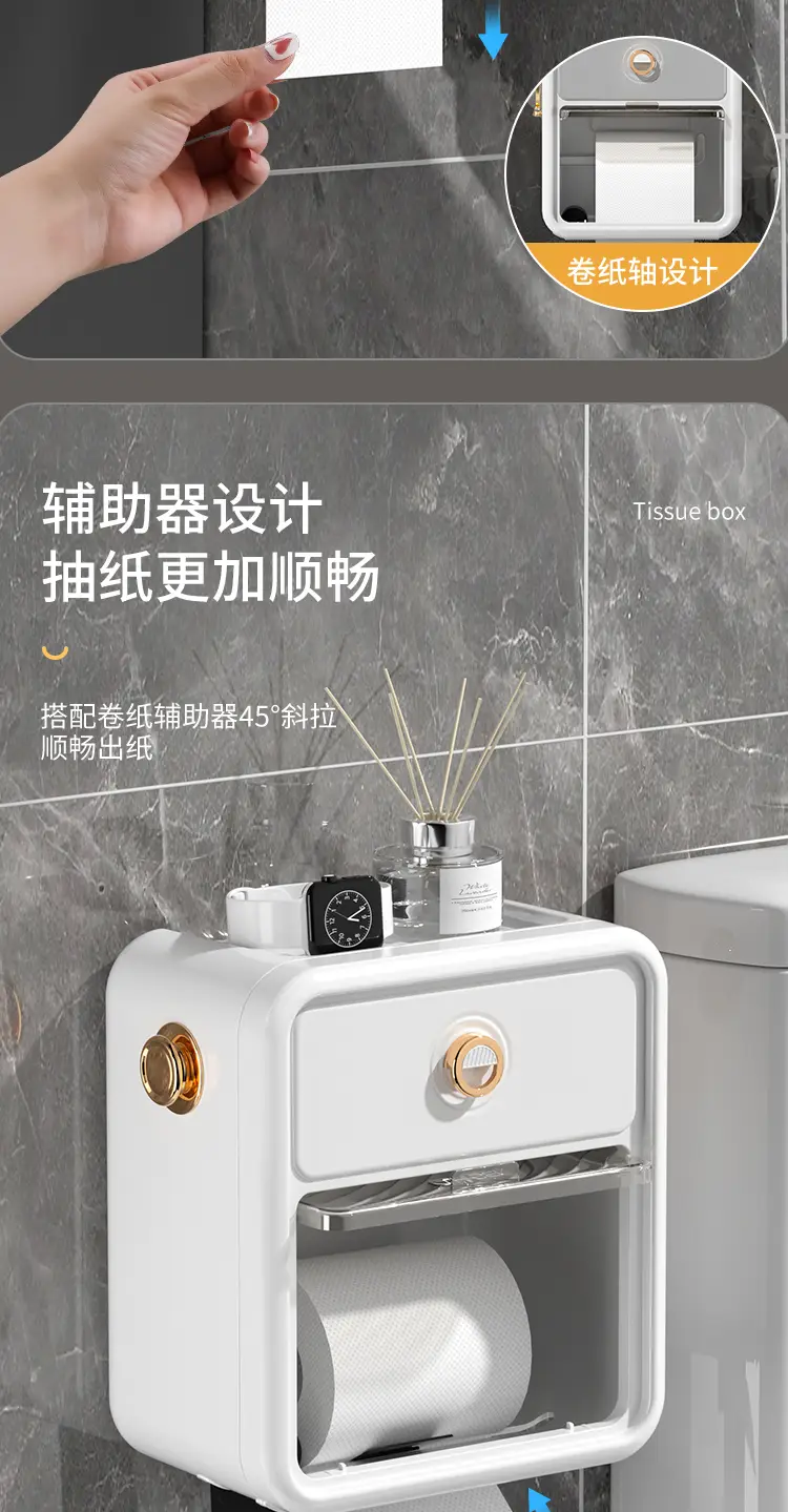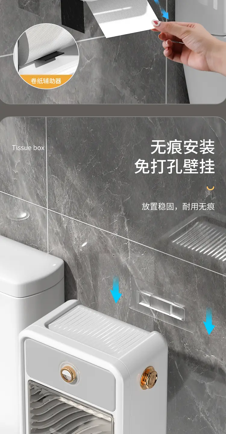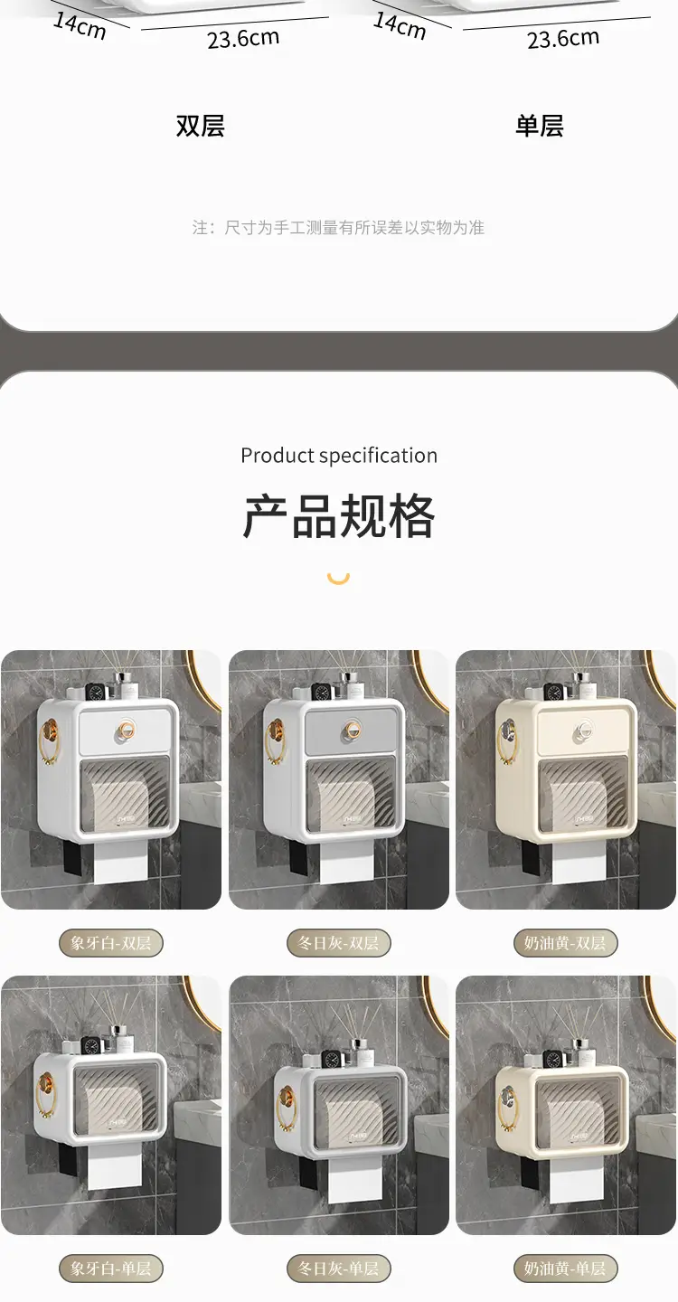 Yusenyi toilet paper box wall-mounted toilet multi-functional roll paper holder toilet paper box free of special punching waterproof toilet paper box cream yellow large size (garbage bag opening for easy removal of paper)
