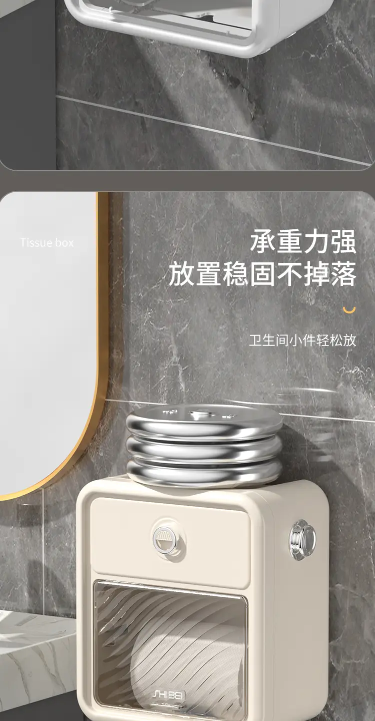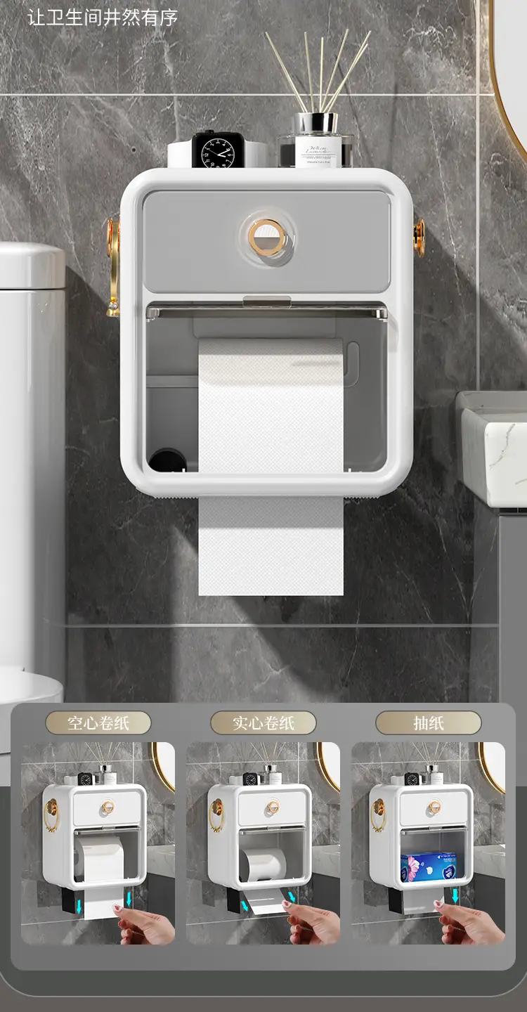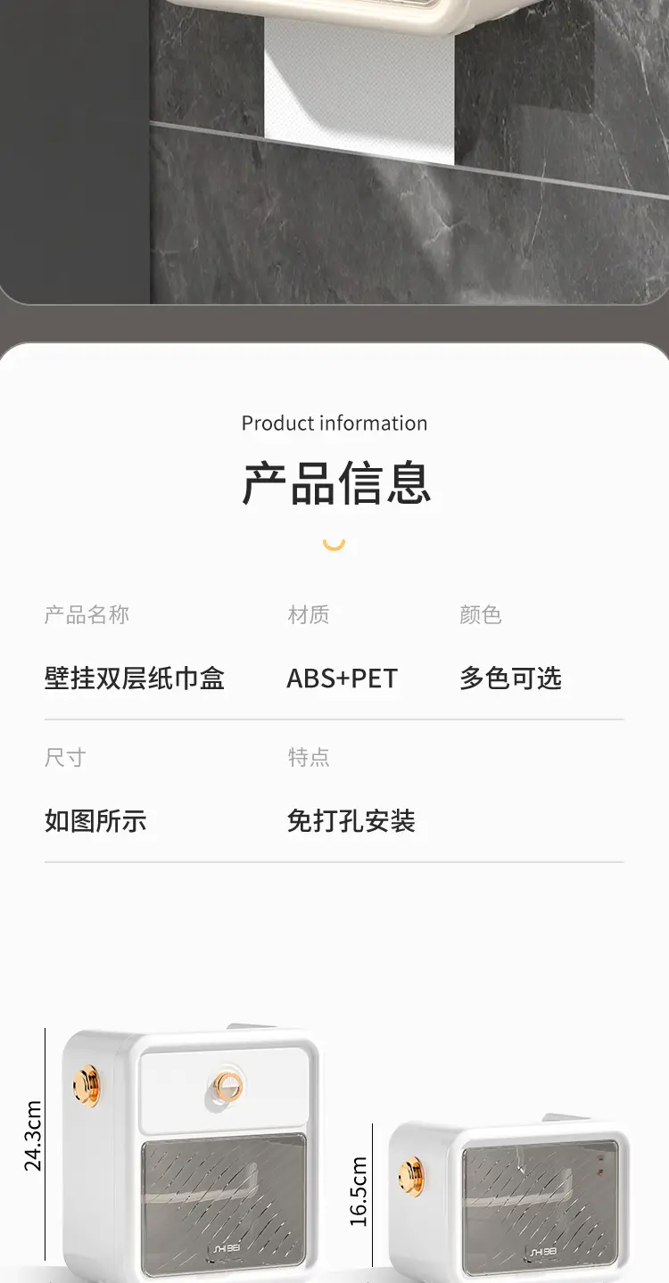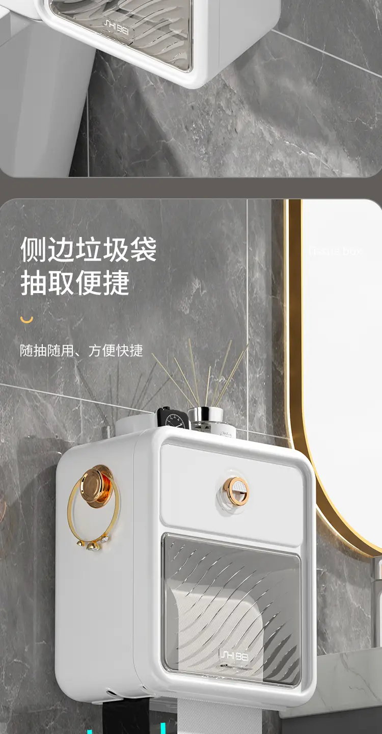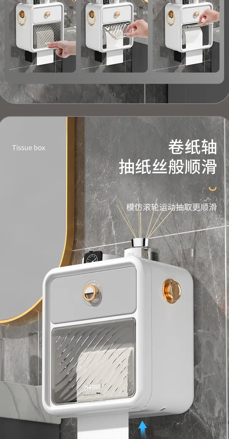 Yusenyi toilet paper box wall-mounted toilet multi-functional roll paper holder toilet paper box free of special punching waterproof toilet paper box cream yellow large size (garbage bag opening for easy removal of paper)