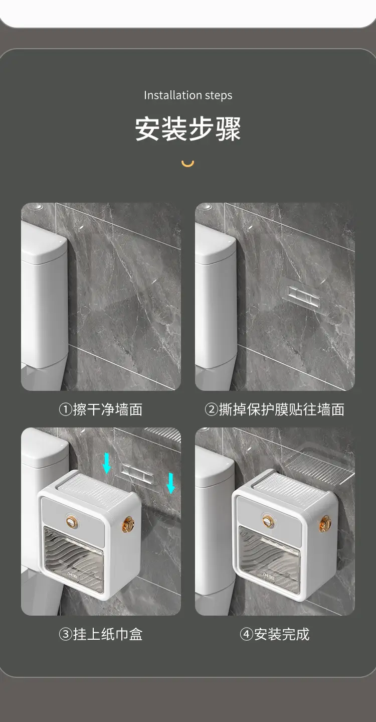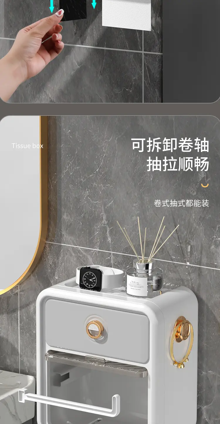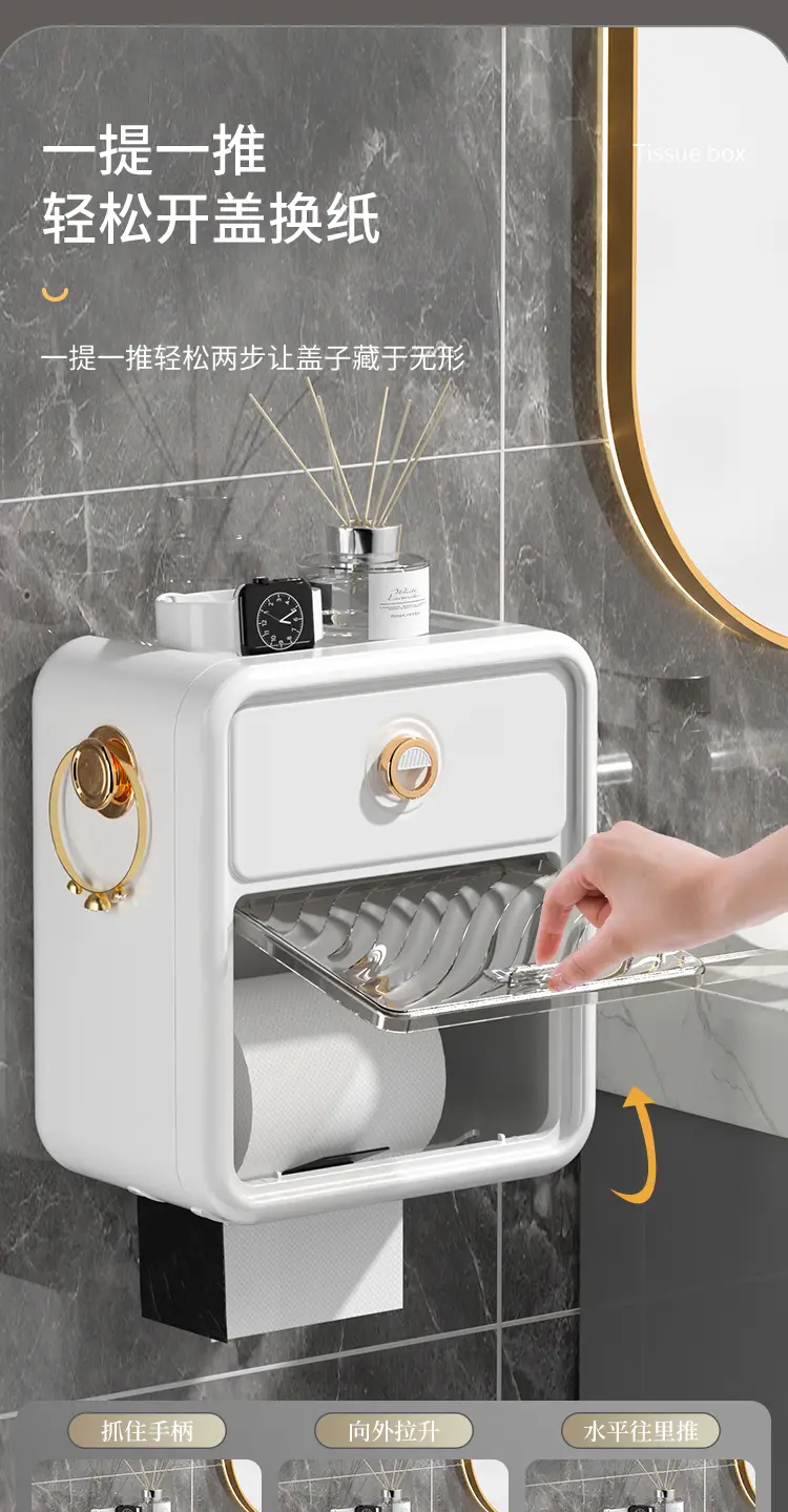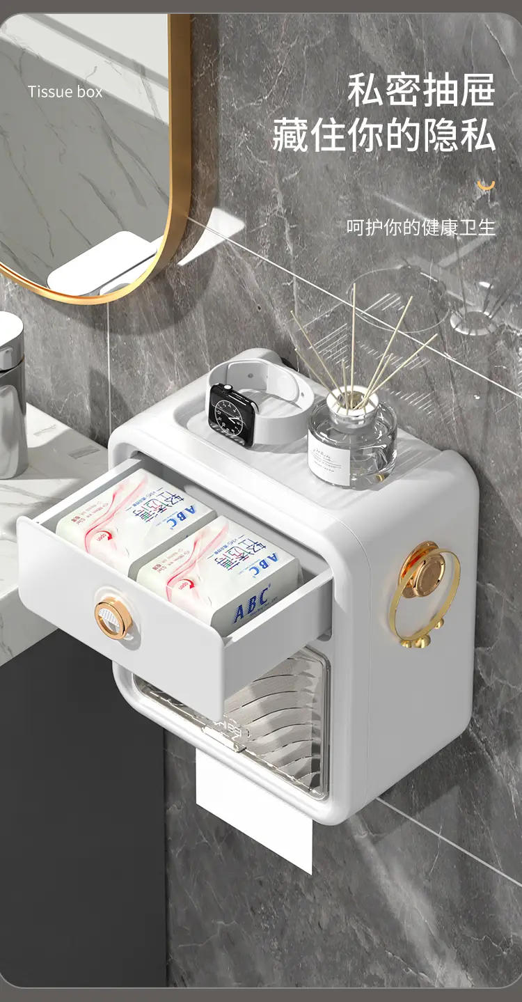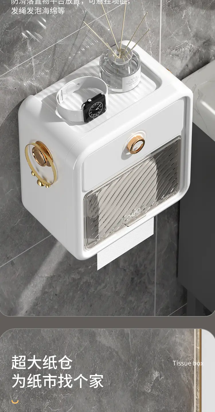 Yusenyi toilet paper box wall-mounted toilet multi-functional roll paper holder toilet paper box free of special punching waterproof toilet paper box cream yellow large size (garbage bag opening for easy removal of paper)