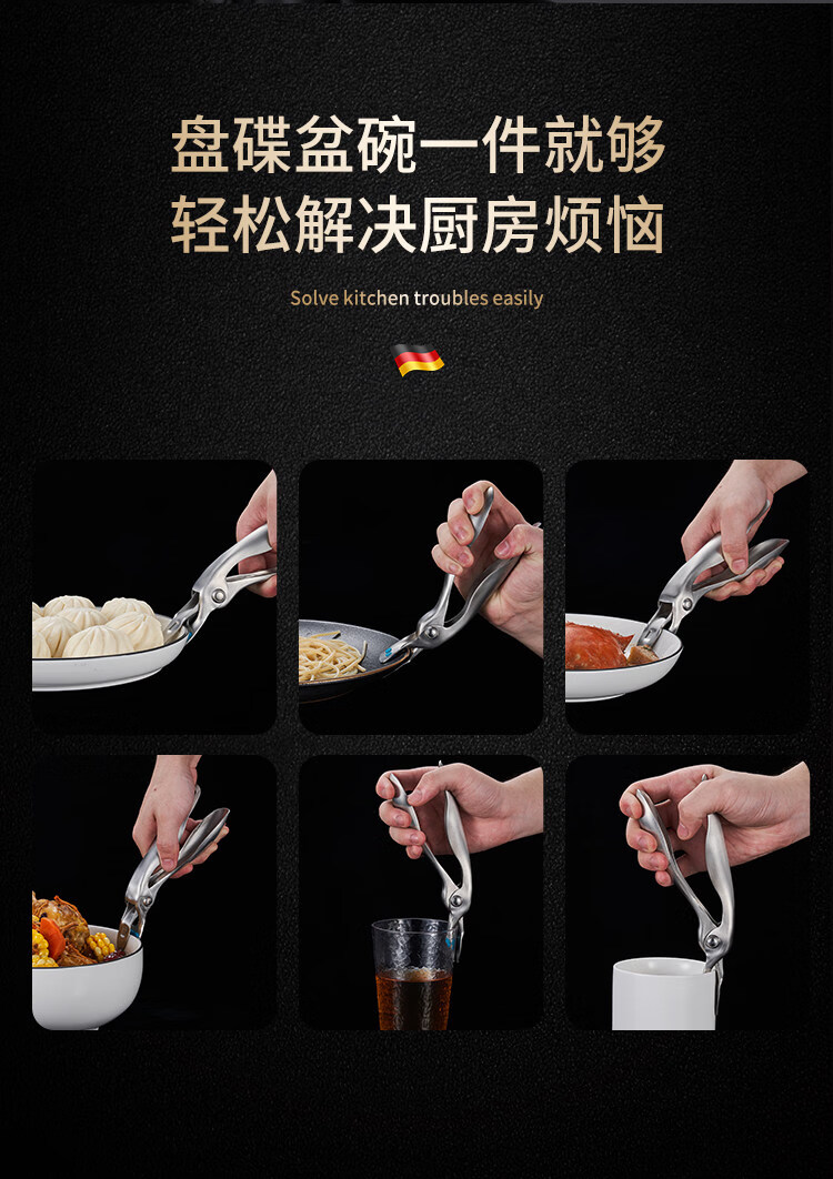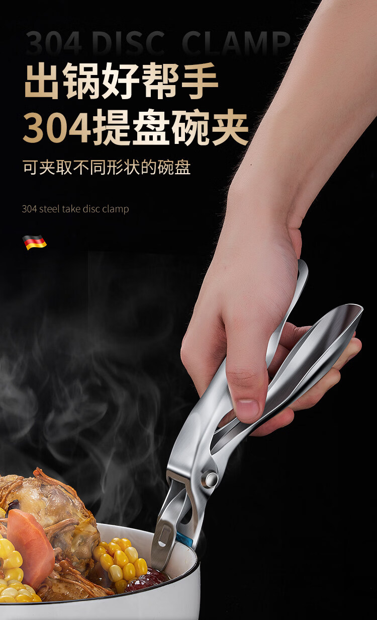 Tuojin German imported quality 304 stainless steel anti-scalding bowl clamp steamed vegetable casserole clamp plate bowl clamp kitchen plate lifter 304 stainless steel thickened version