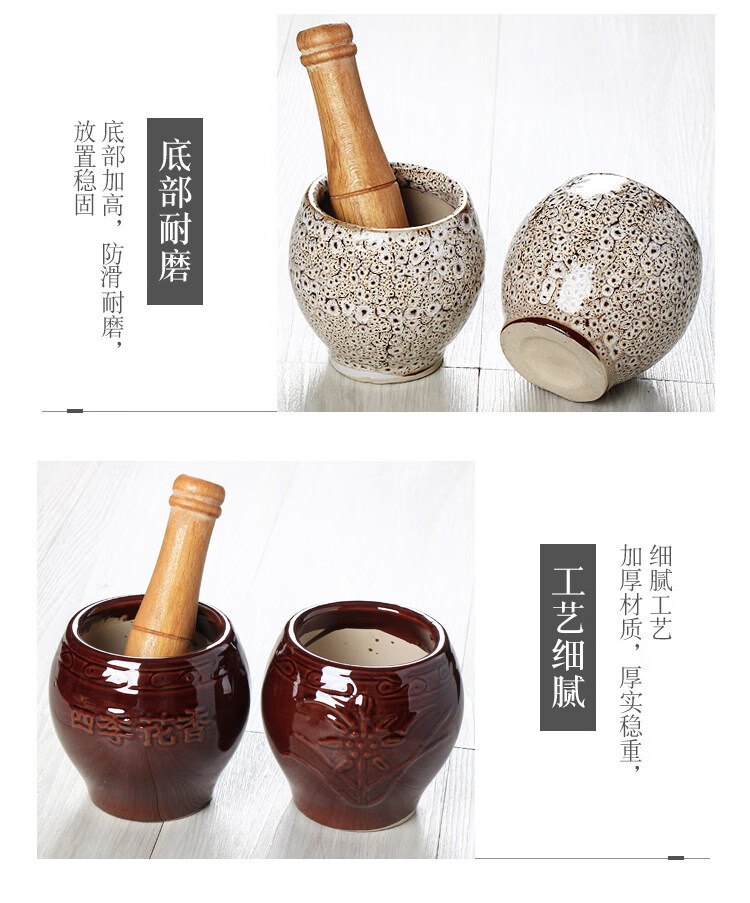 Tuojin imported quality earthenware coarse porcelain garlic mortar from Germany, household old-fashioned garlic press, traditional garlic pounding jar, ceramic garlic jar smashing, single wooden hammer