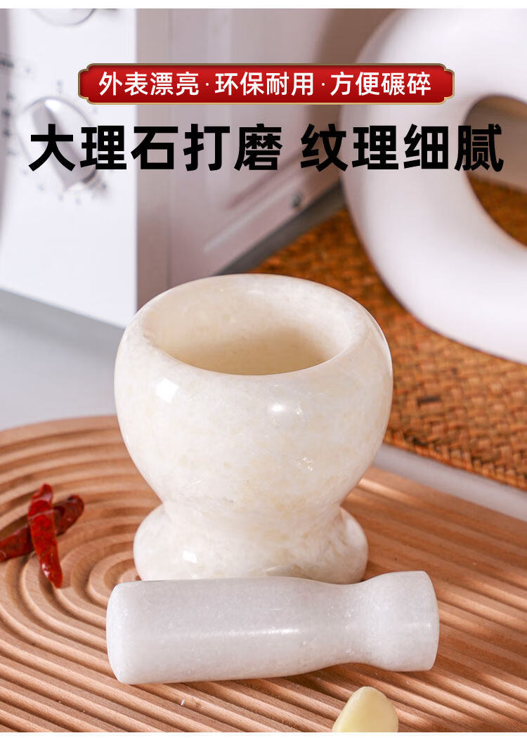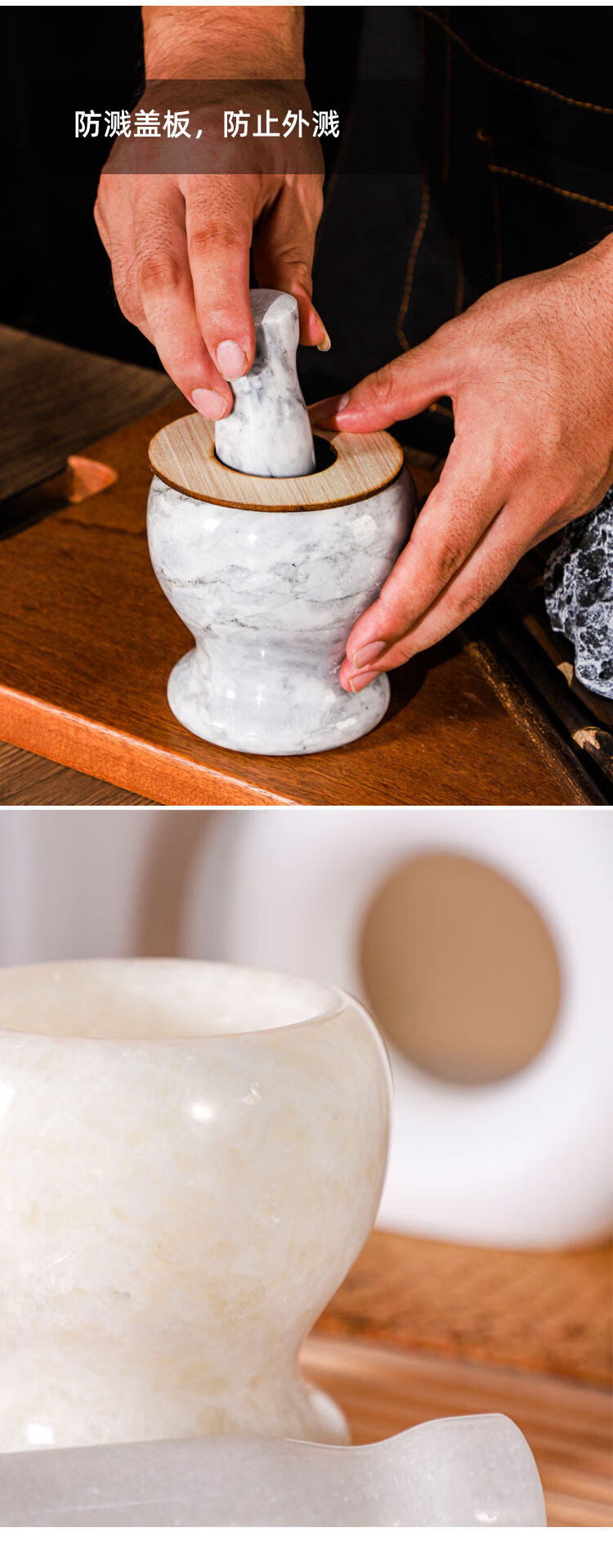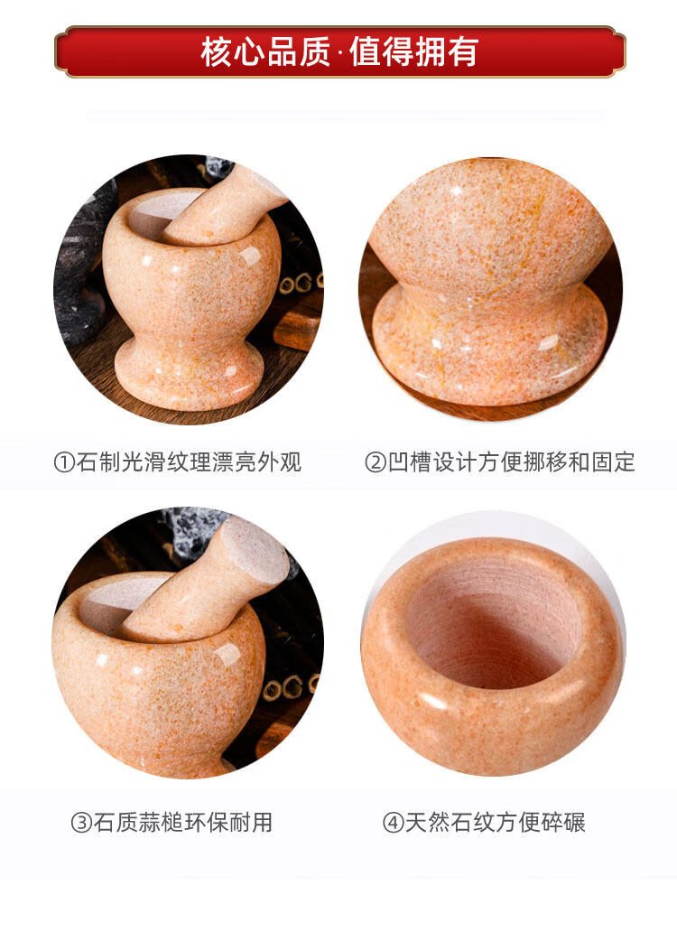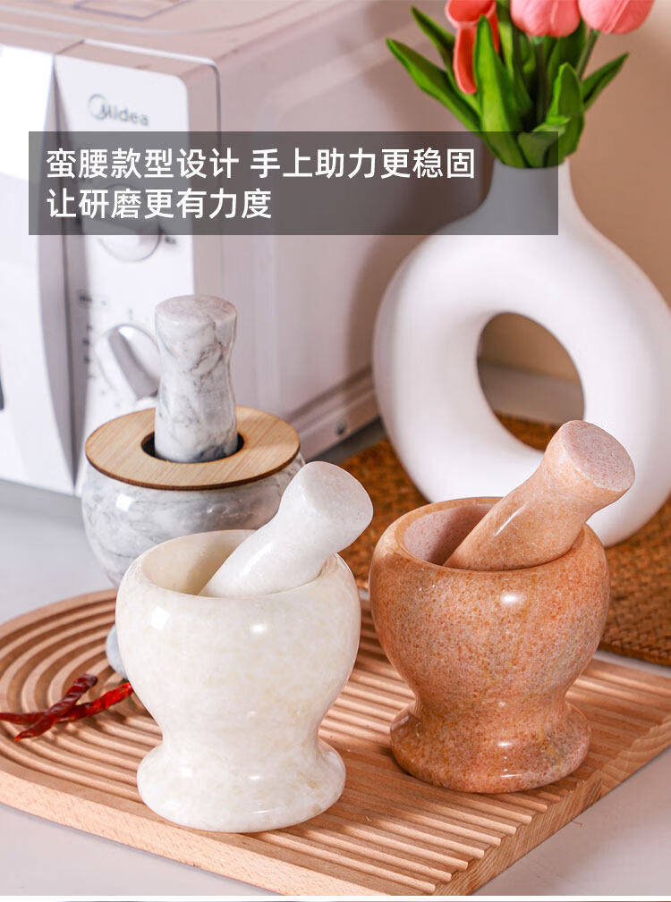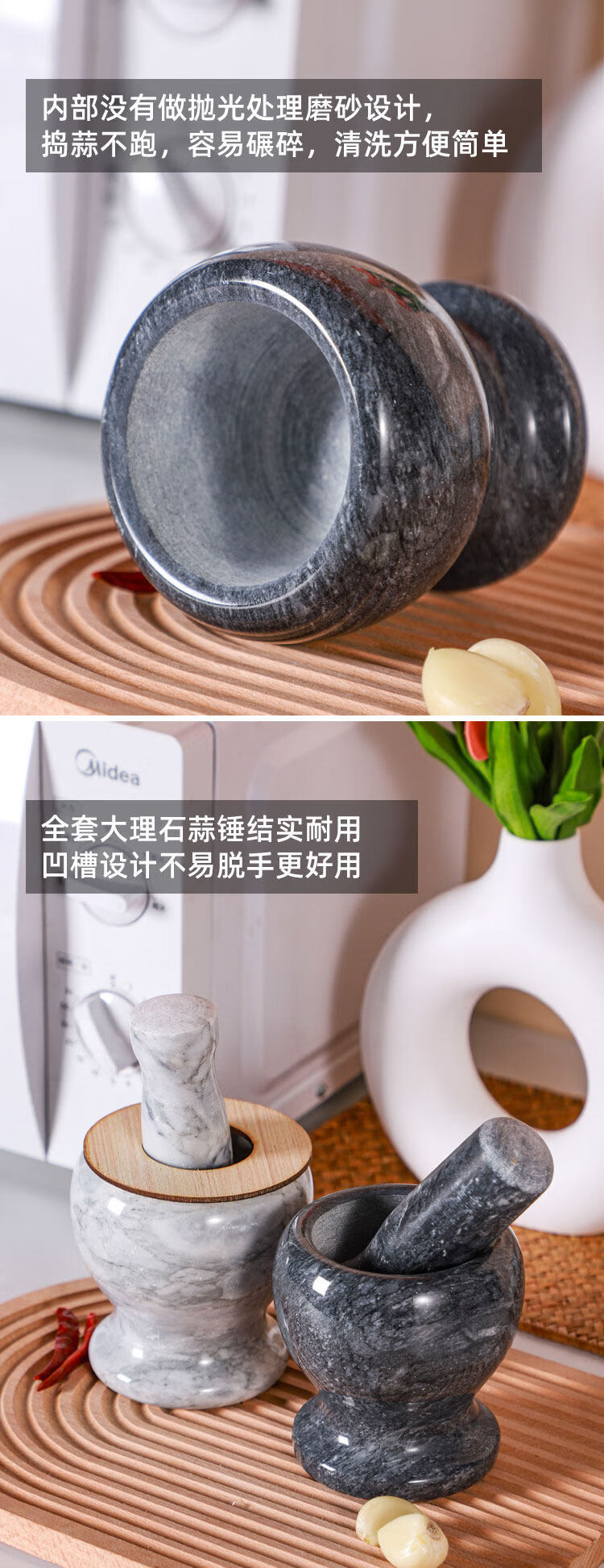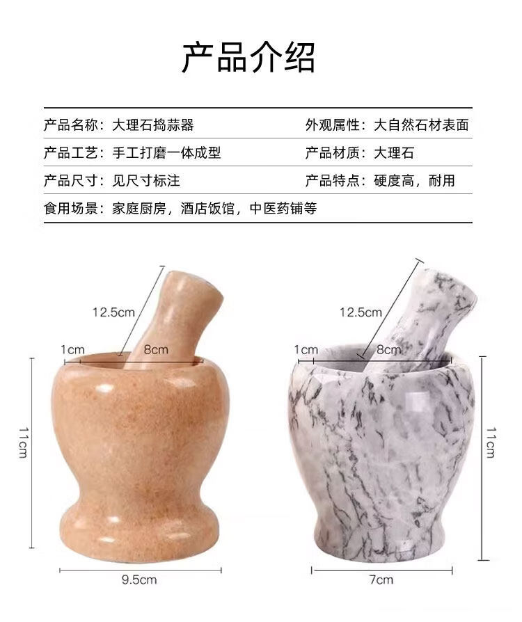Tuojin imported quality jade garlic mortar from Germany, natural stone garlic press, stone mortar, garlic grinder, household pounder, separate stone hammer (without tank)_can note the color