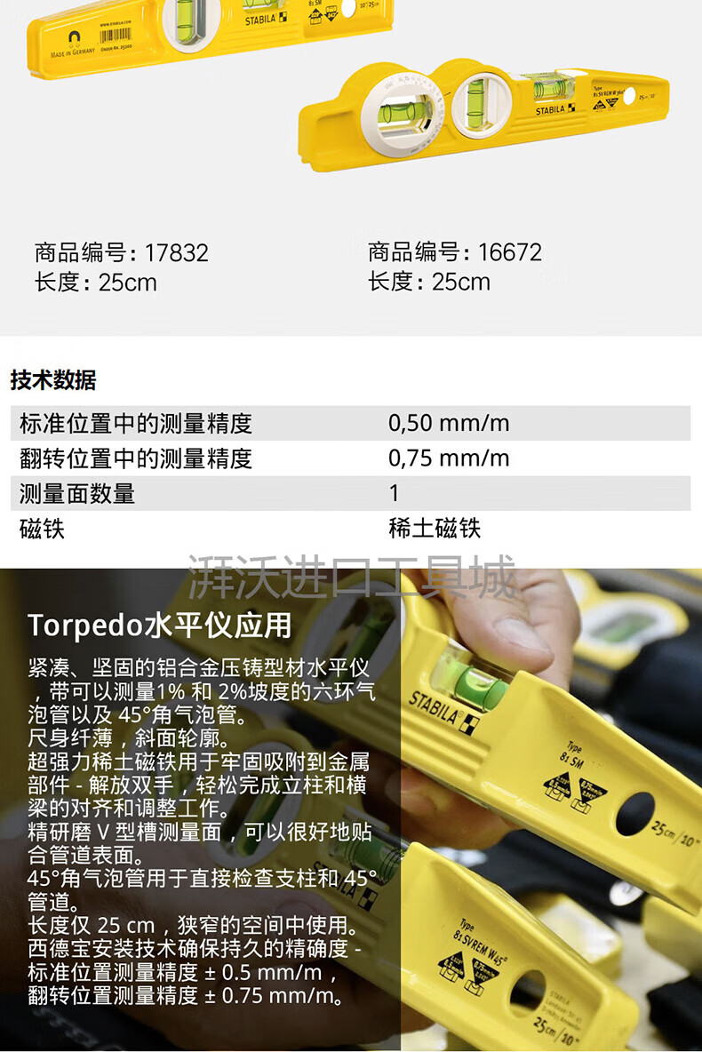 STABILA torpedo level 81S multifunctional mini magnetic measuring level 25cm17832