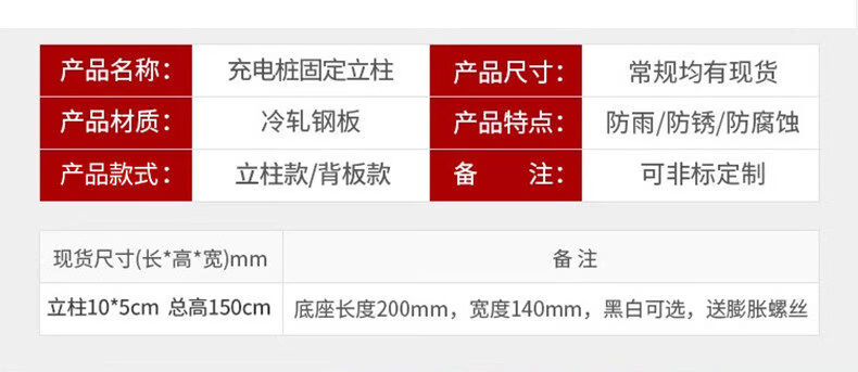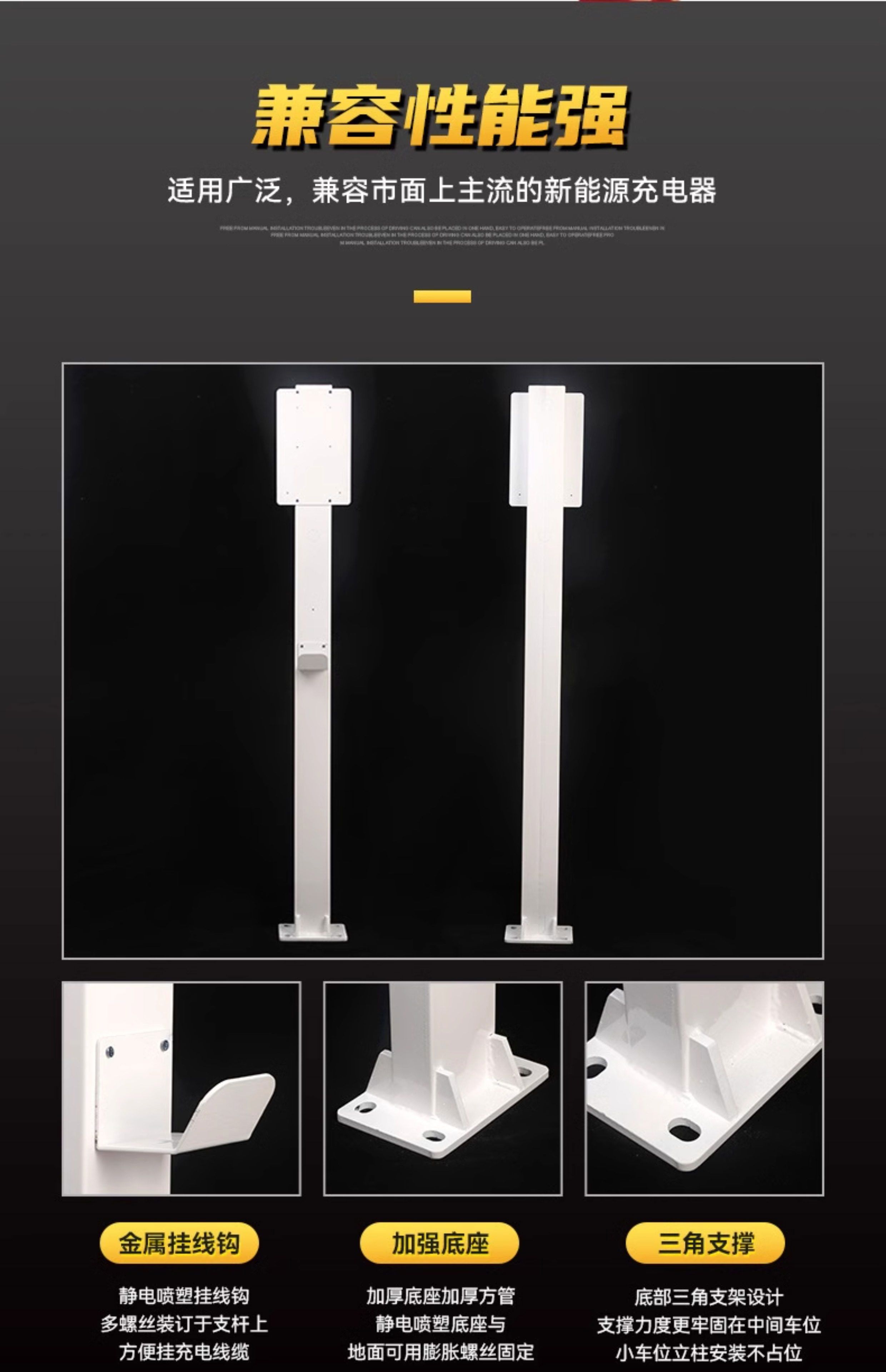 Qiaochong car charging pile pole mounting bracket BYD Tesla home thickened outdoor rust-free 4S universal black 1.5 meters free back plate hook accessories basic version