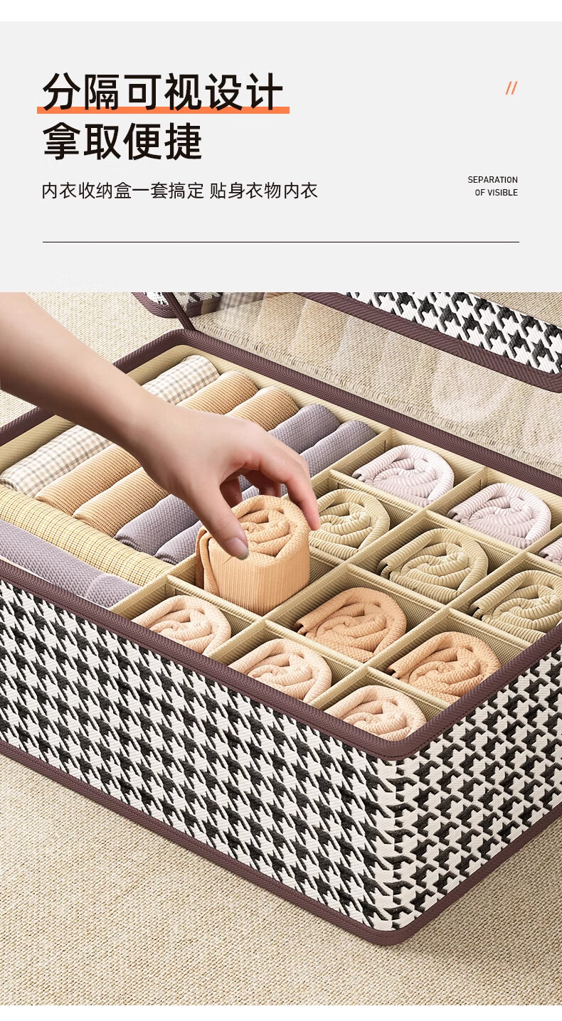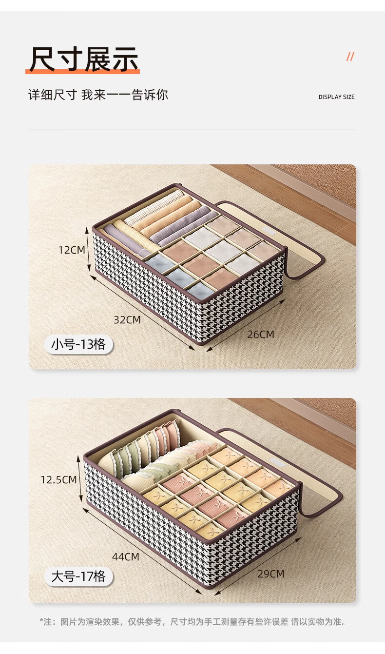 Three-in-one storage box with drawers, compartments for home clothes, bags for organizing 13 gifts, 13 compartments with cover, dust-proof, breathable and odor-free, 2 packs