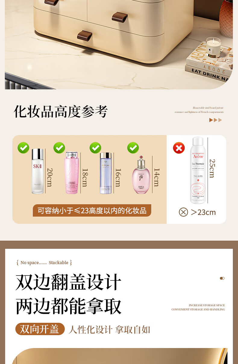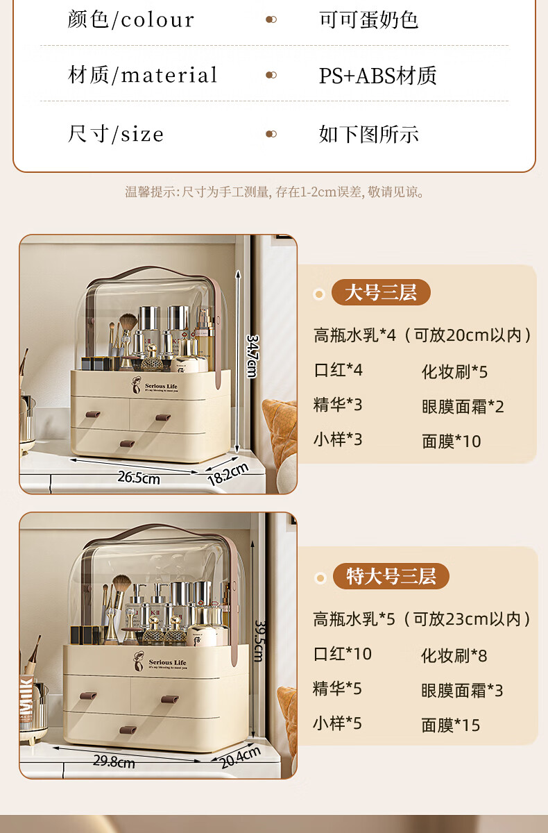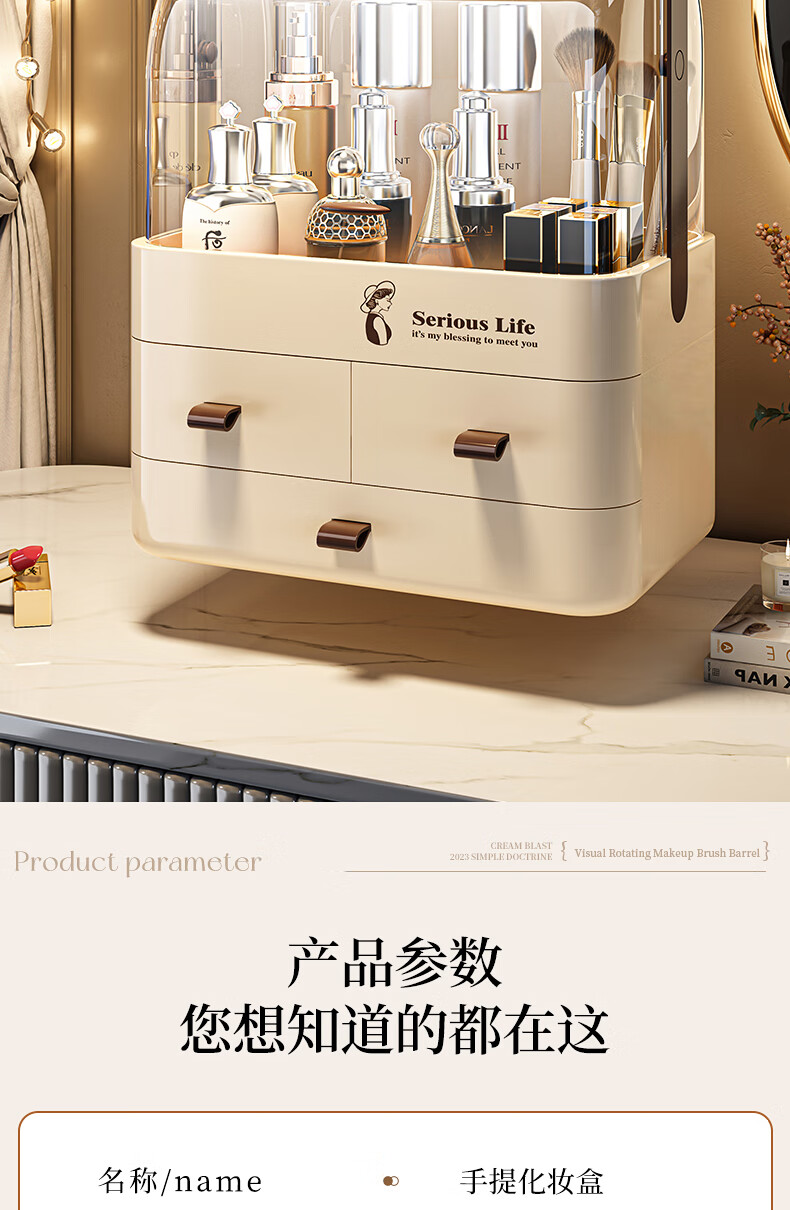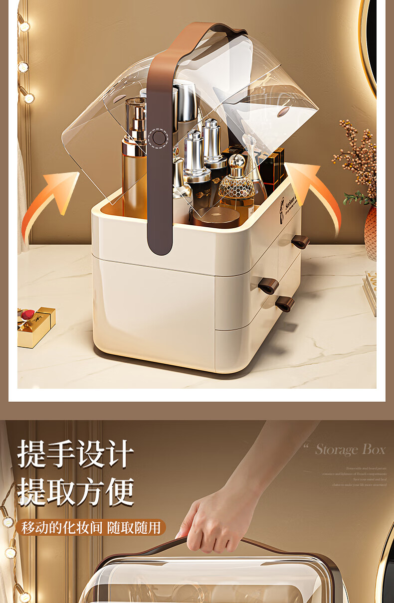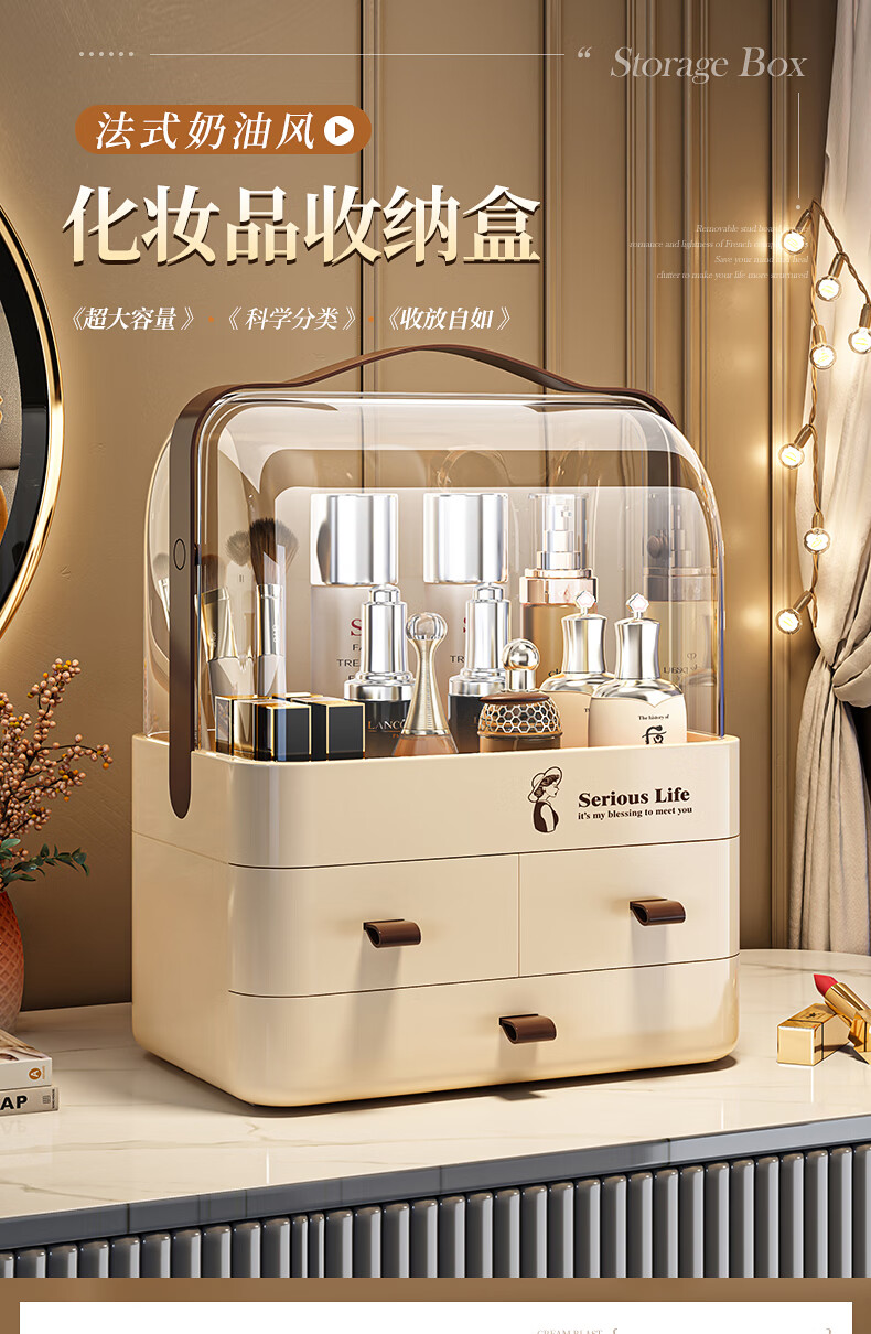 Cosmetic storage box desktop drawer style dustproof large capacity dressing table mask storage rack cream white large size thickened high transparency + storage