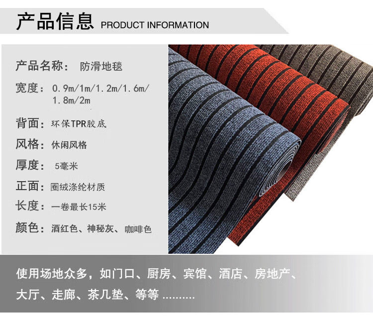Fantasy absorbent door mat weighted long strip carpet kitchen aisle gray + thickened and weighted 2 meters wide x 15 meters long