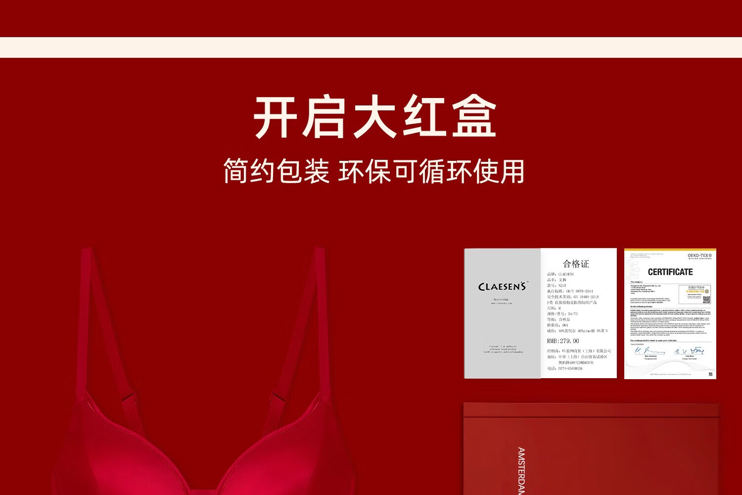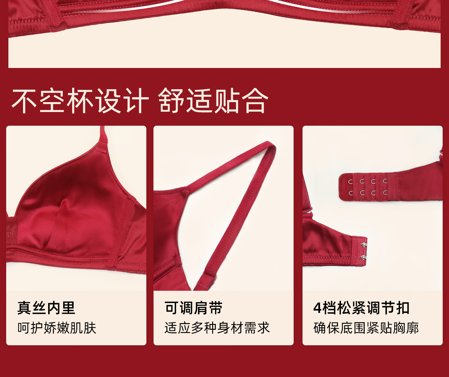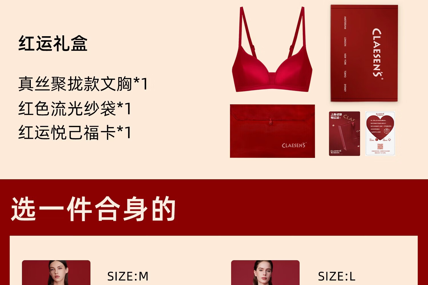 Claesen s zodiac year red bra push-up push up small breasts to look bigger 2026 new silk lining bra set for women in the year of the horse ruby red S (70AA/70A/70B/70C)