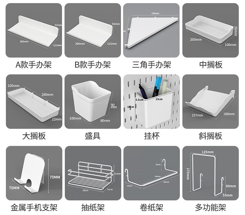 QINFENG desk study room storage perforated board storage rack no punching wall hanging dormitory computer desktop wall organizer artifact white extra large horizontal board 59cmx40cm 1 piece no Specifications