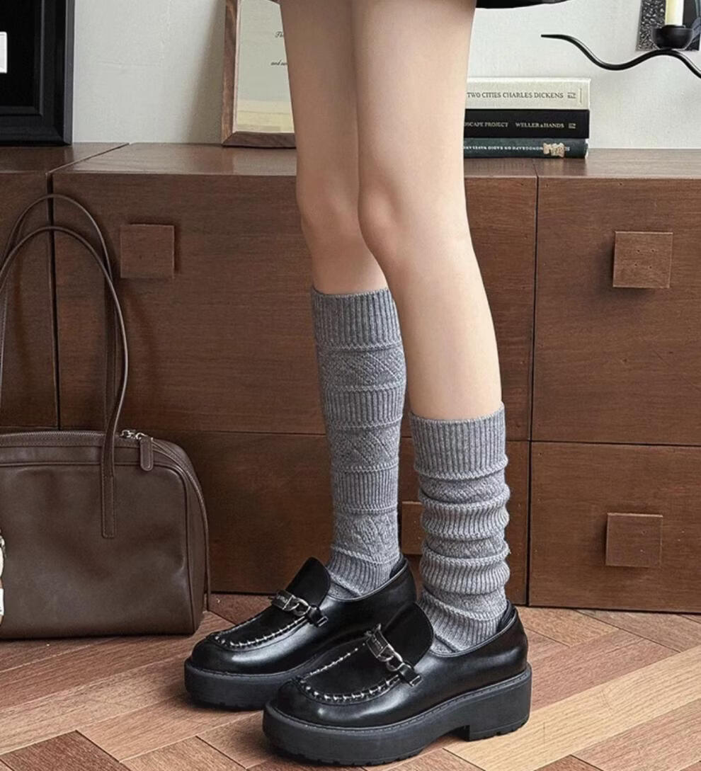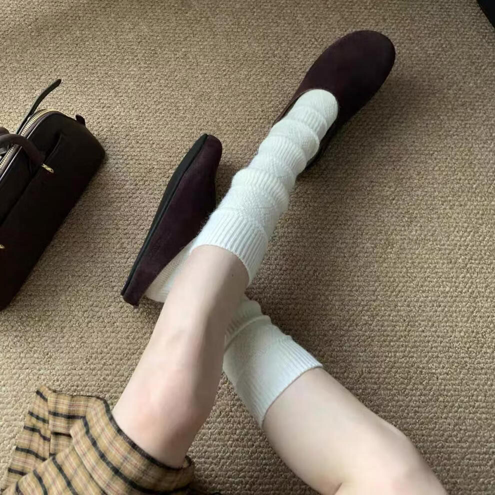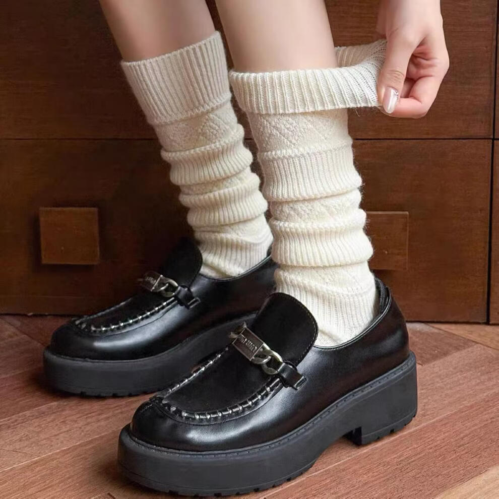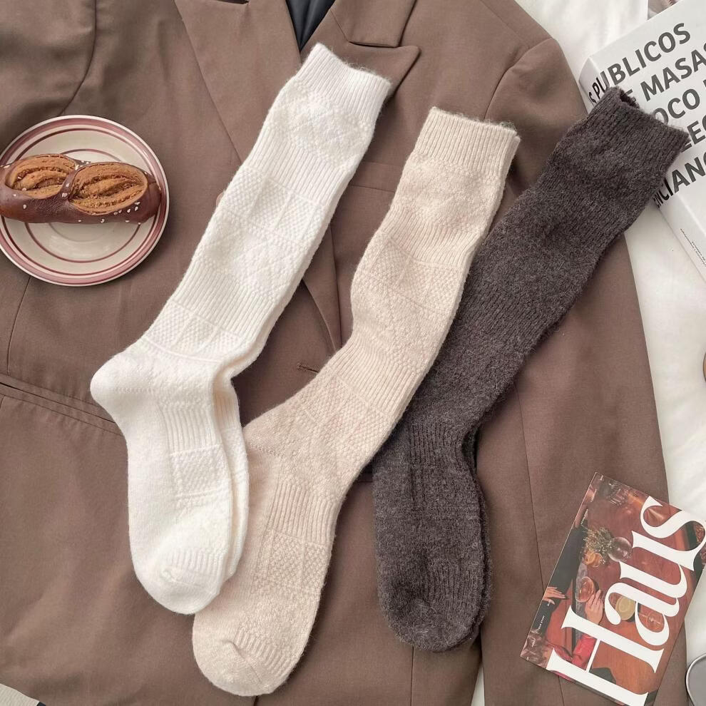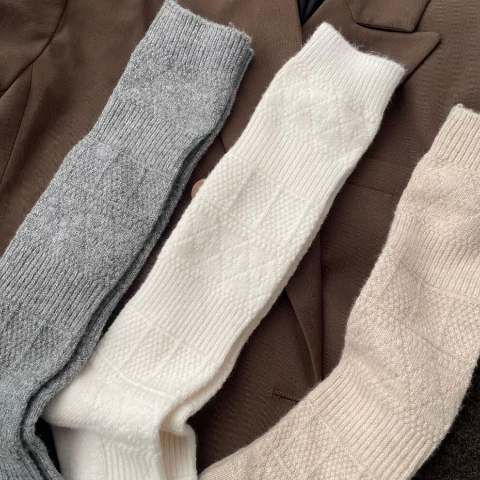 Autumn and winter thickened wool stockings for women, Korean rhombus slimming leg socks, white, one size fits all