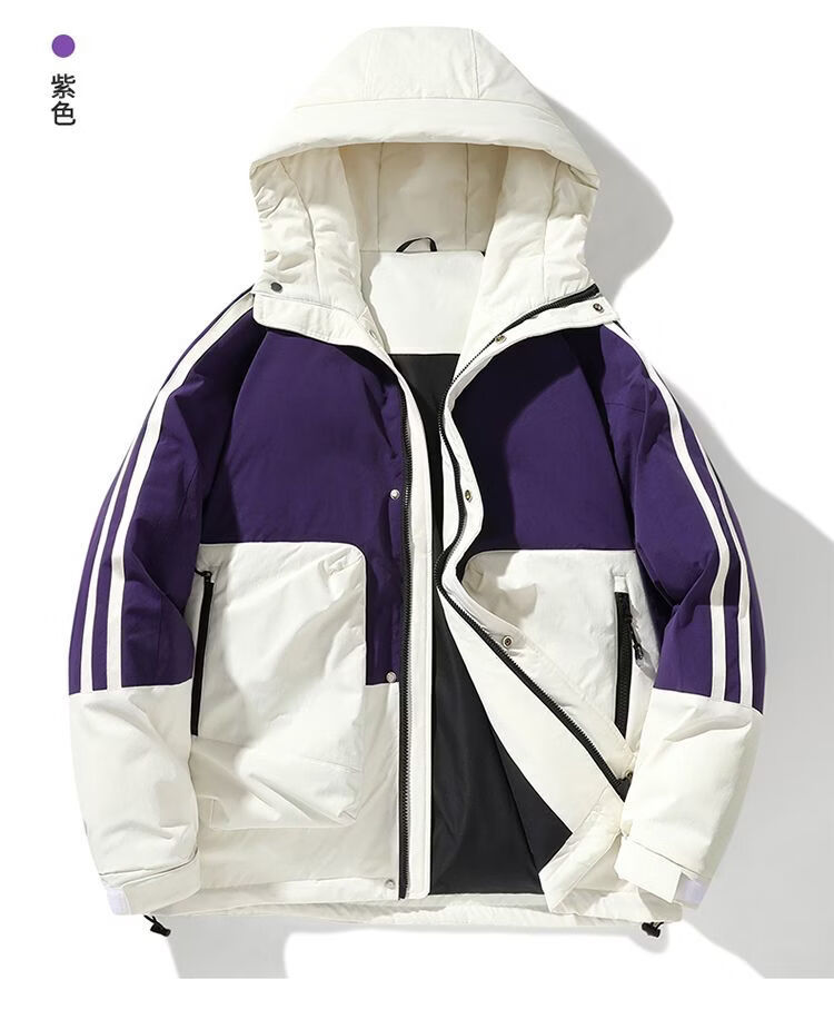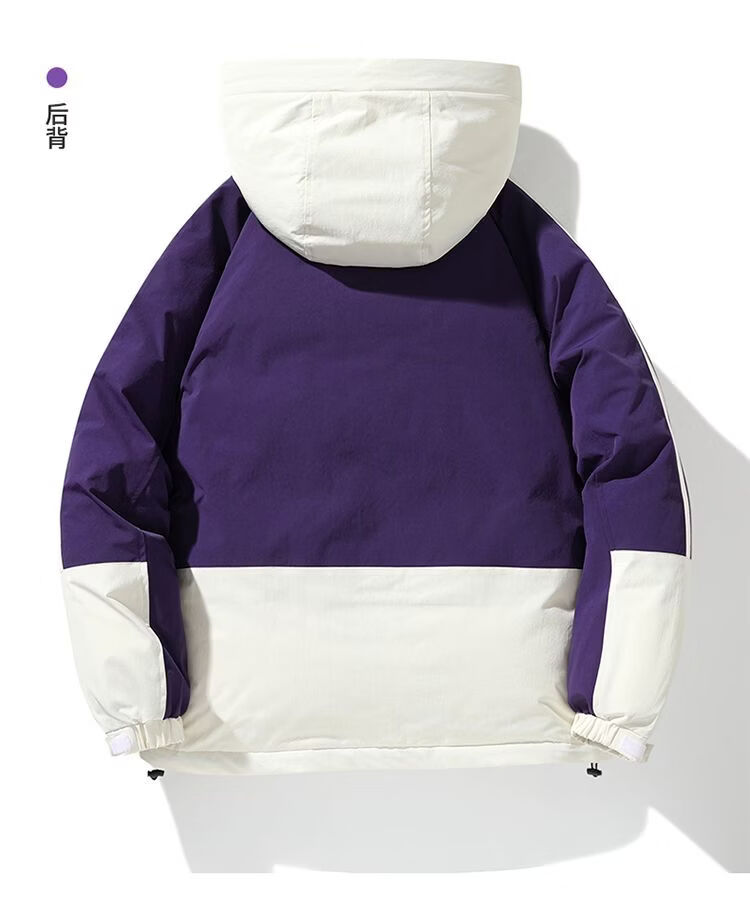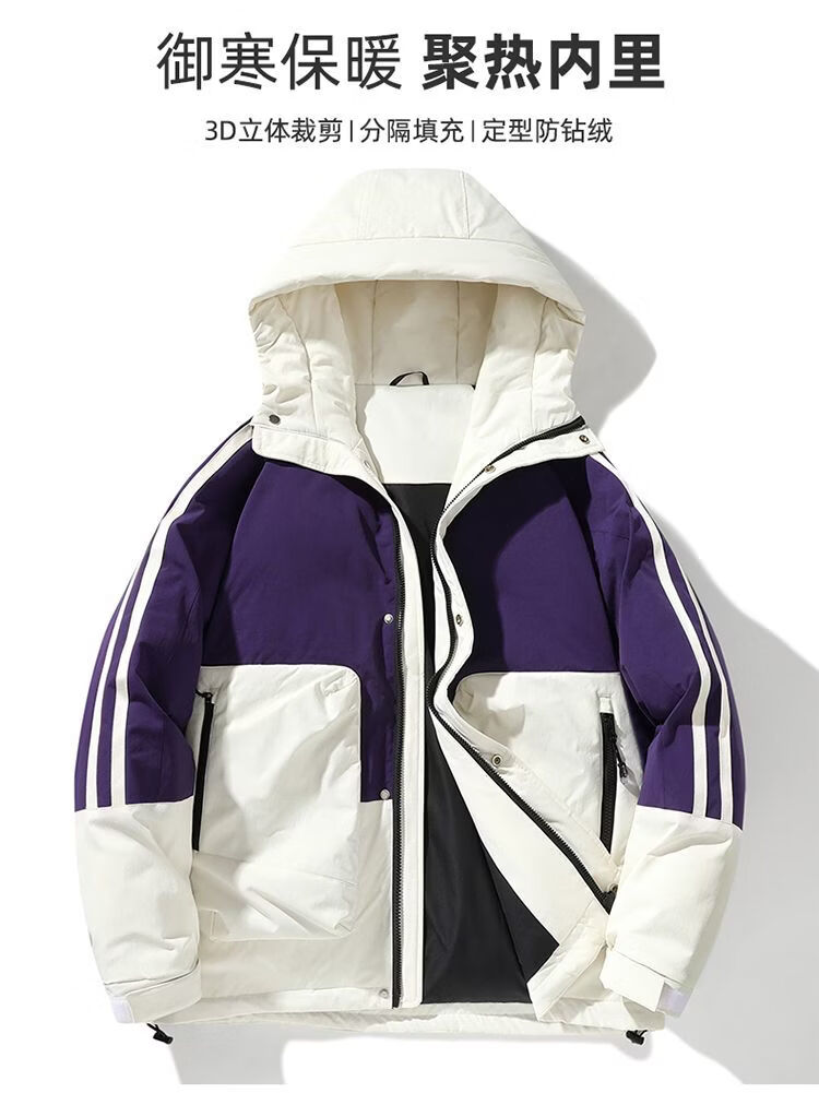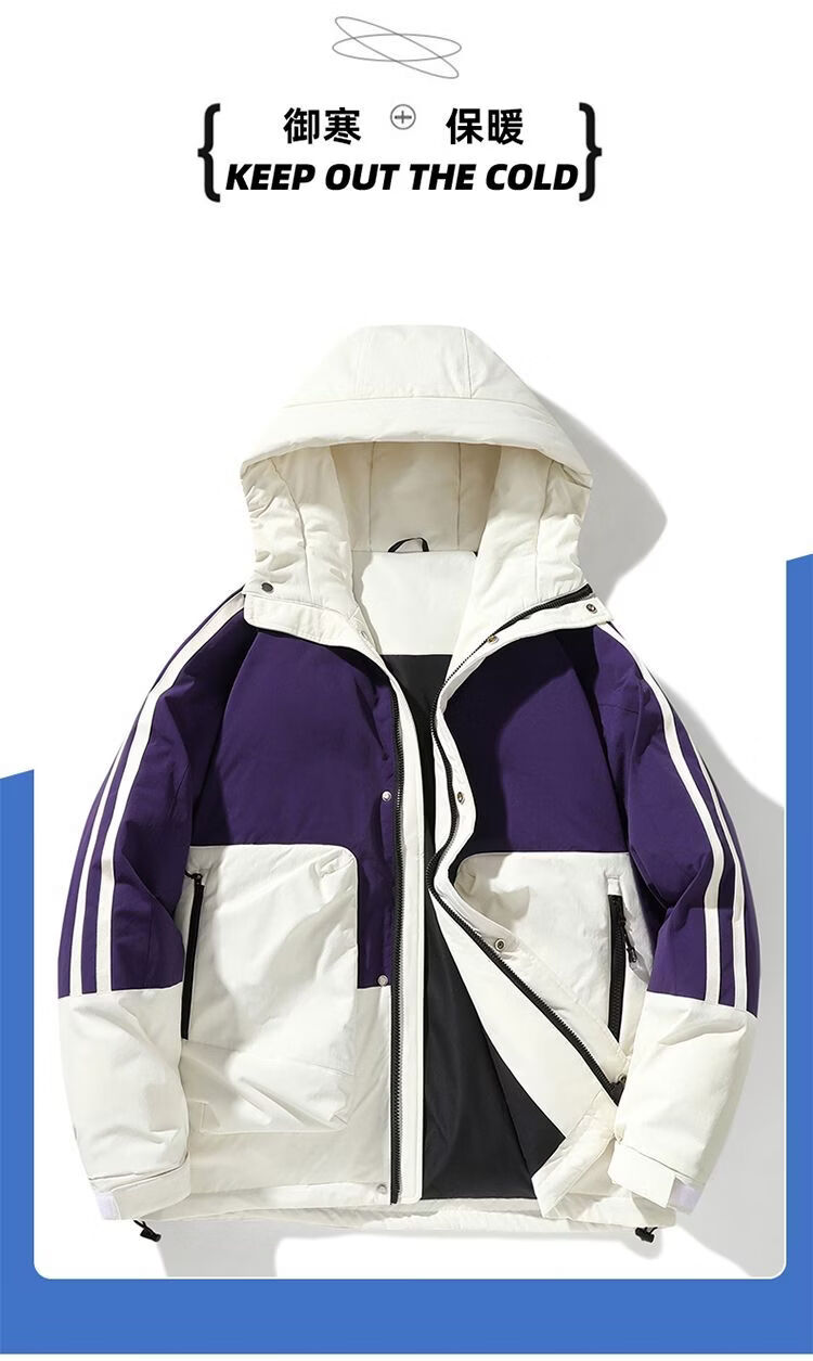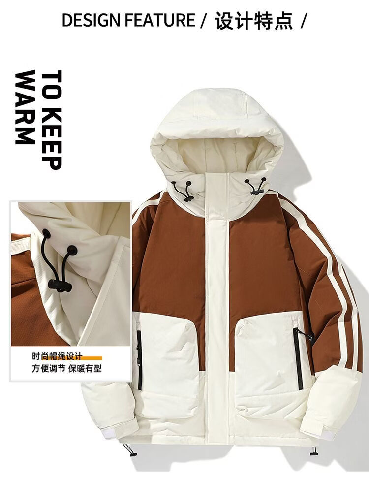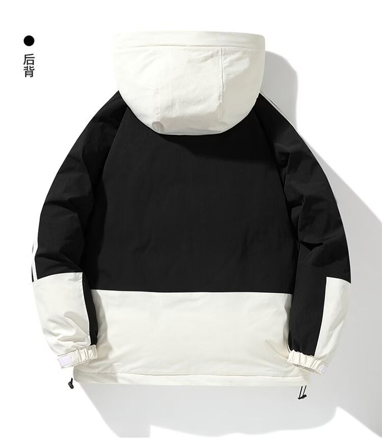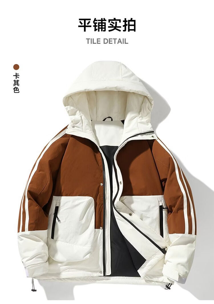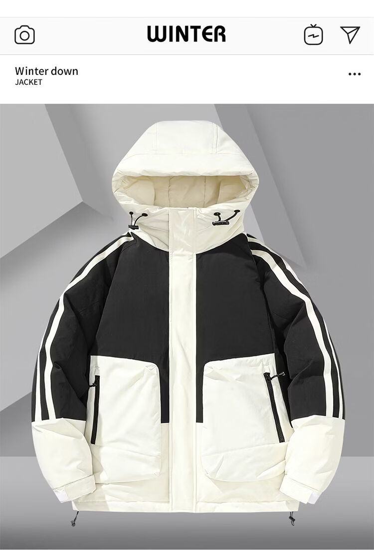 PANMAX new winter splicing contrasting color casual hooded down jacket men's casual versatile thickened warm jacket black S recommended 85-105Jin Jin equals 0.5 kg