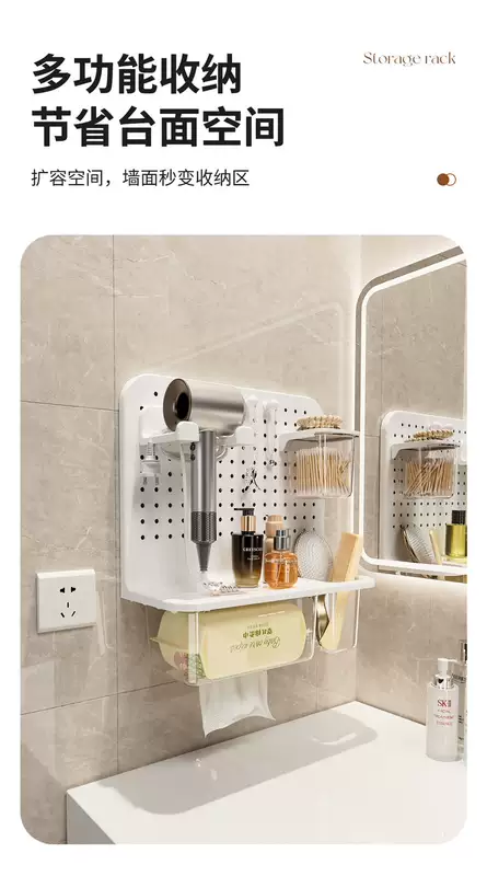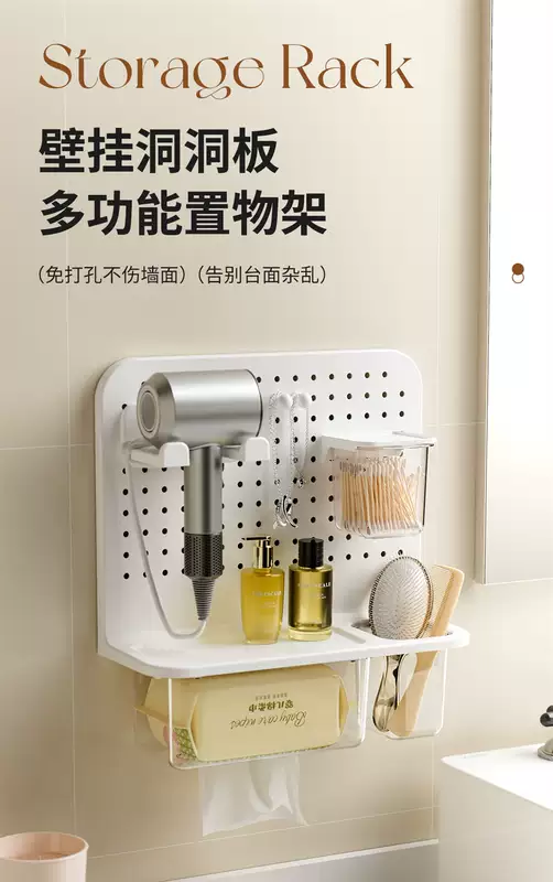 Yusenyi household punch-free hole board storage rack multi-functional toilet wall-mounted tissue box bathroom wall organization and storage layer white 1 layer white