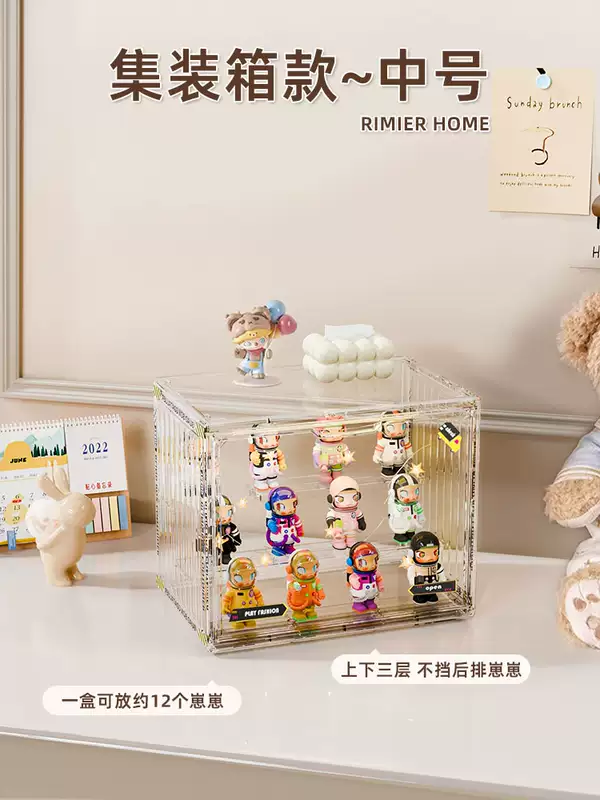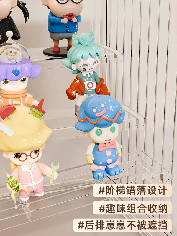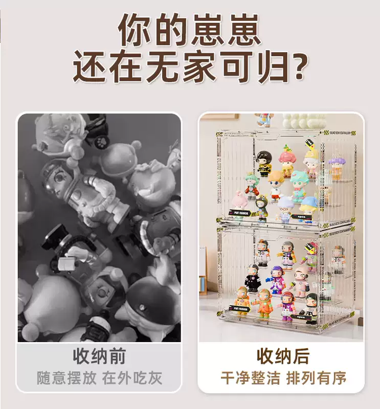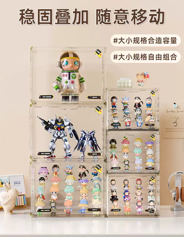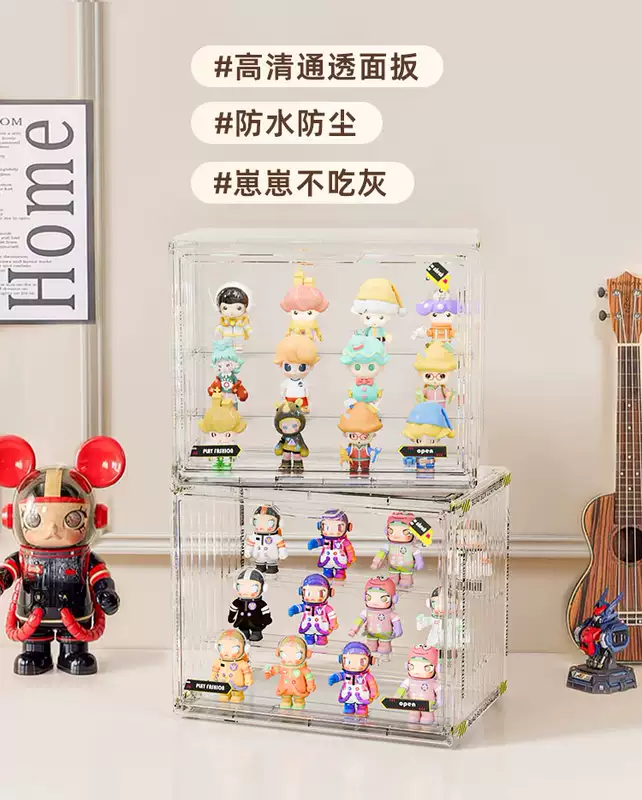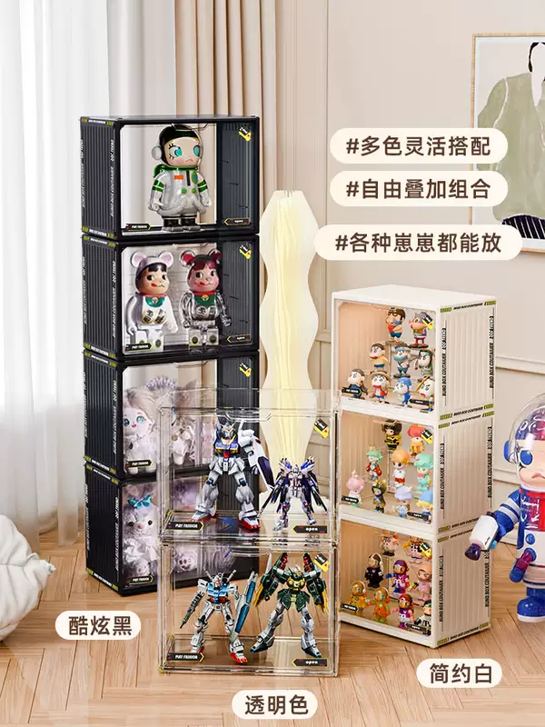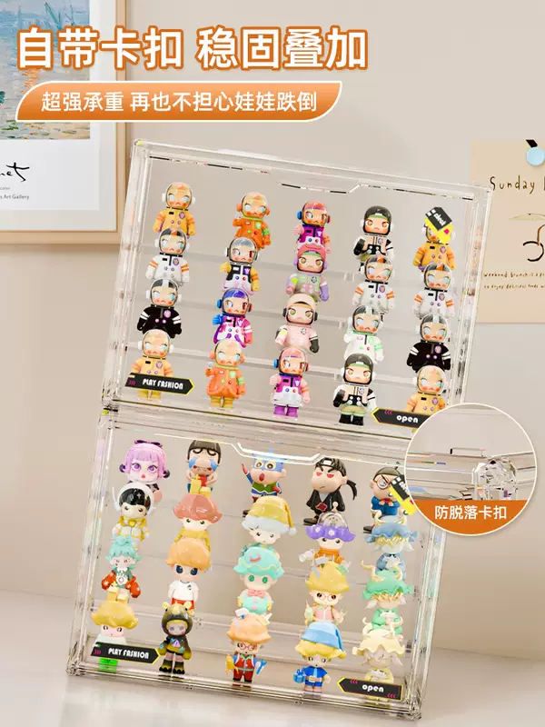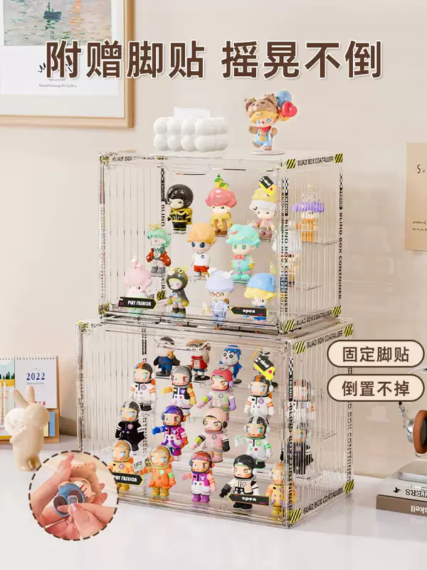 Yusenyi Blind Box Storage Display Rack Transparent Acrylic Dustproof Figure Storage Box Bubble Mart Model Display Display Cabinet Transparent Large (Magnetic Opening and Closing Detachable Steps with Stickers)