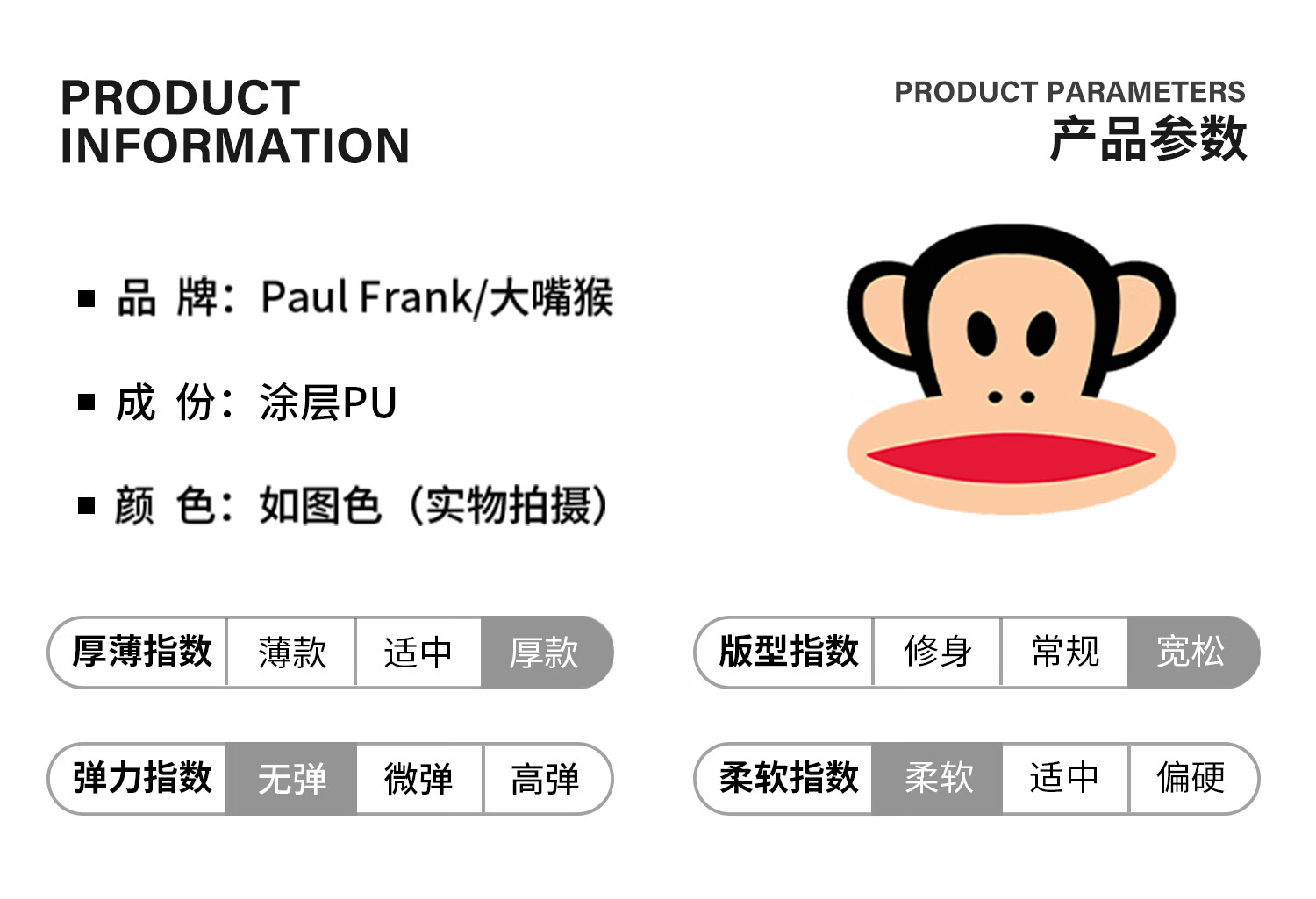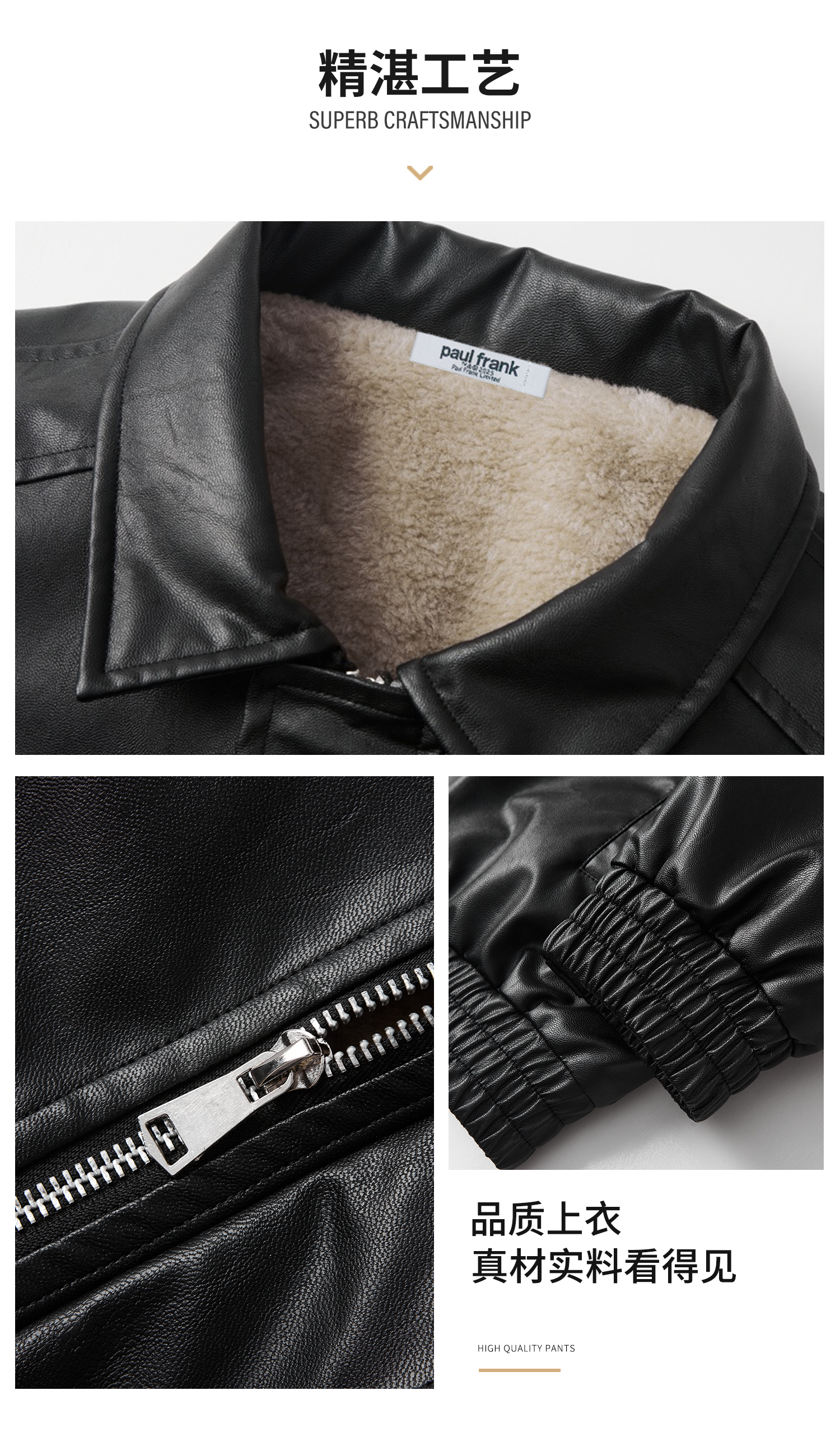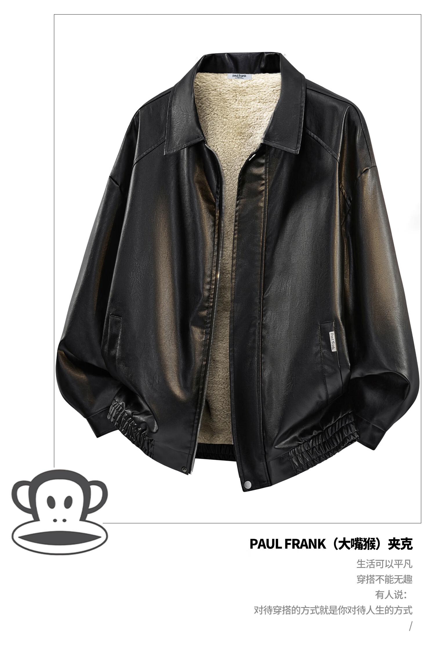 Big mouth monkey (paul frank) PU leather jacket men's autumn and winter new trendy brand loose motorcycle jacket plus velvet thickened warm casual lapel jacket black plus velvet cold protection and warmth M recommended 90-125Jin Jin equals 0.5 kg