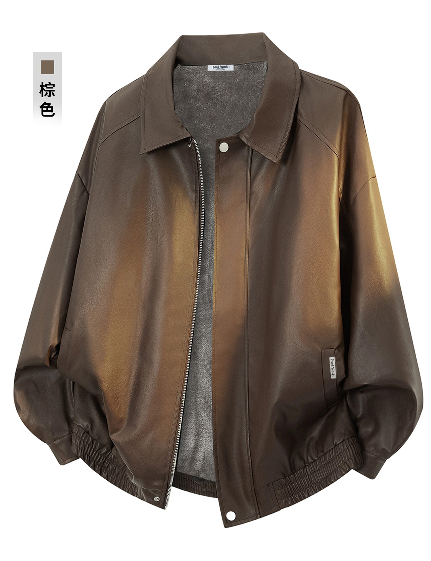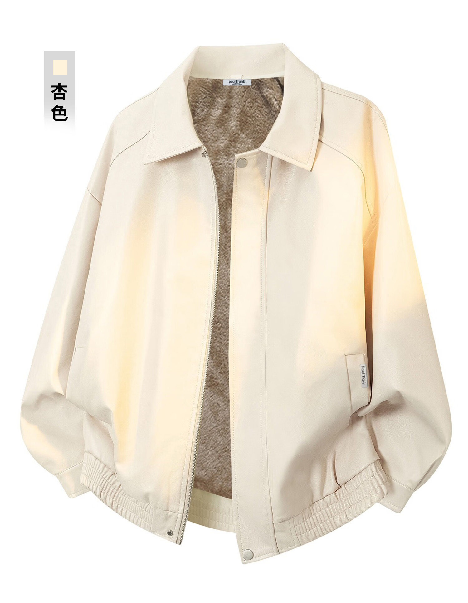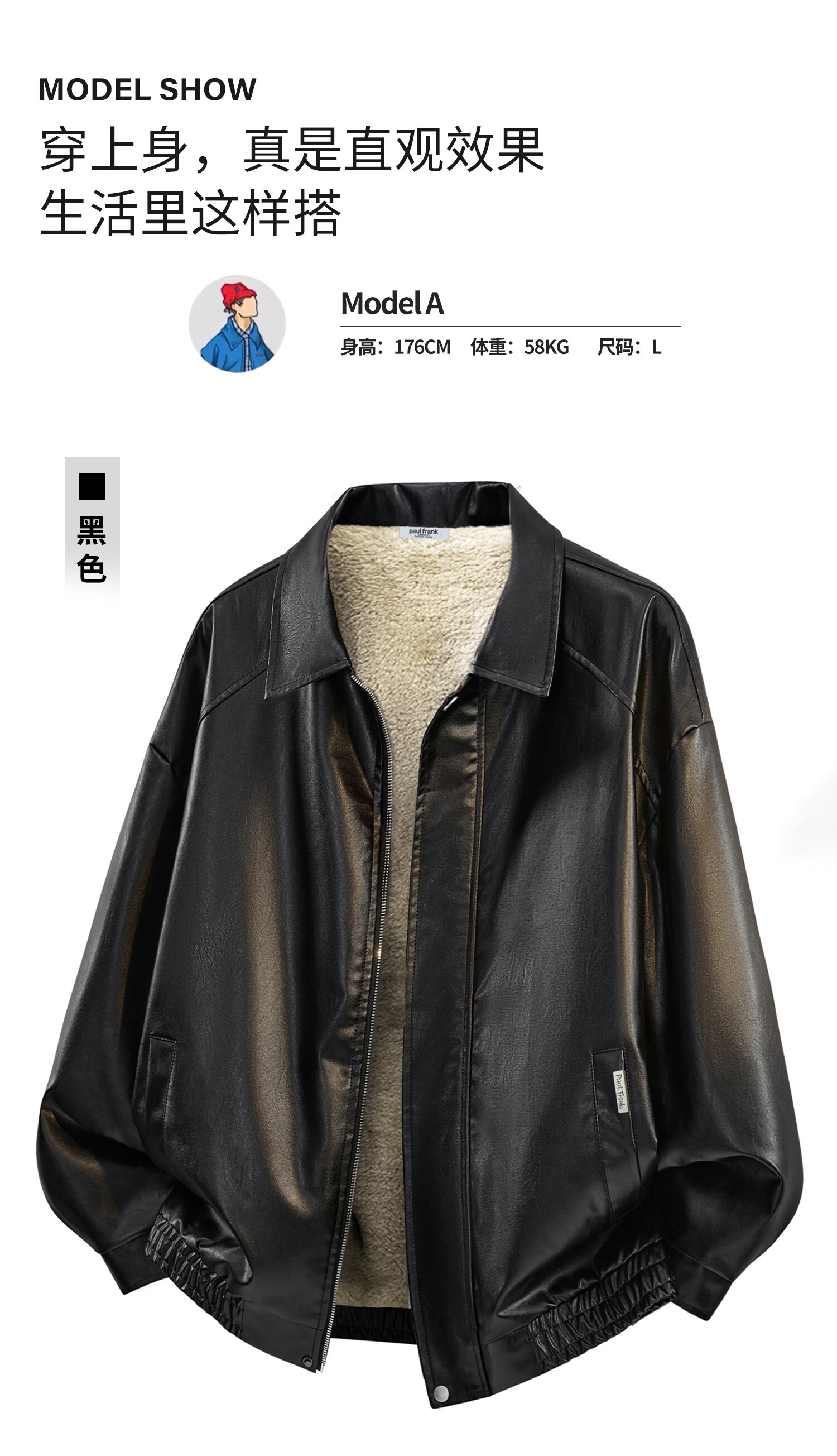 Big mouth monkey (paul frank) PU leather jacket men's autumn and winter new trendy brand loose motorcycle jacket plus velvet thickened warm casual lapel jacket black plus velvet cold protection and warmth M recommended 90-125Jin Jin equals 0.5 kg