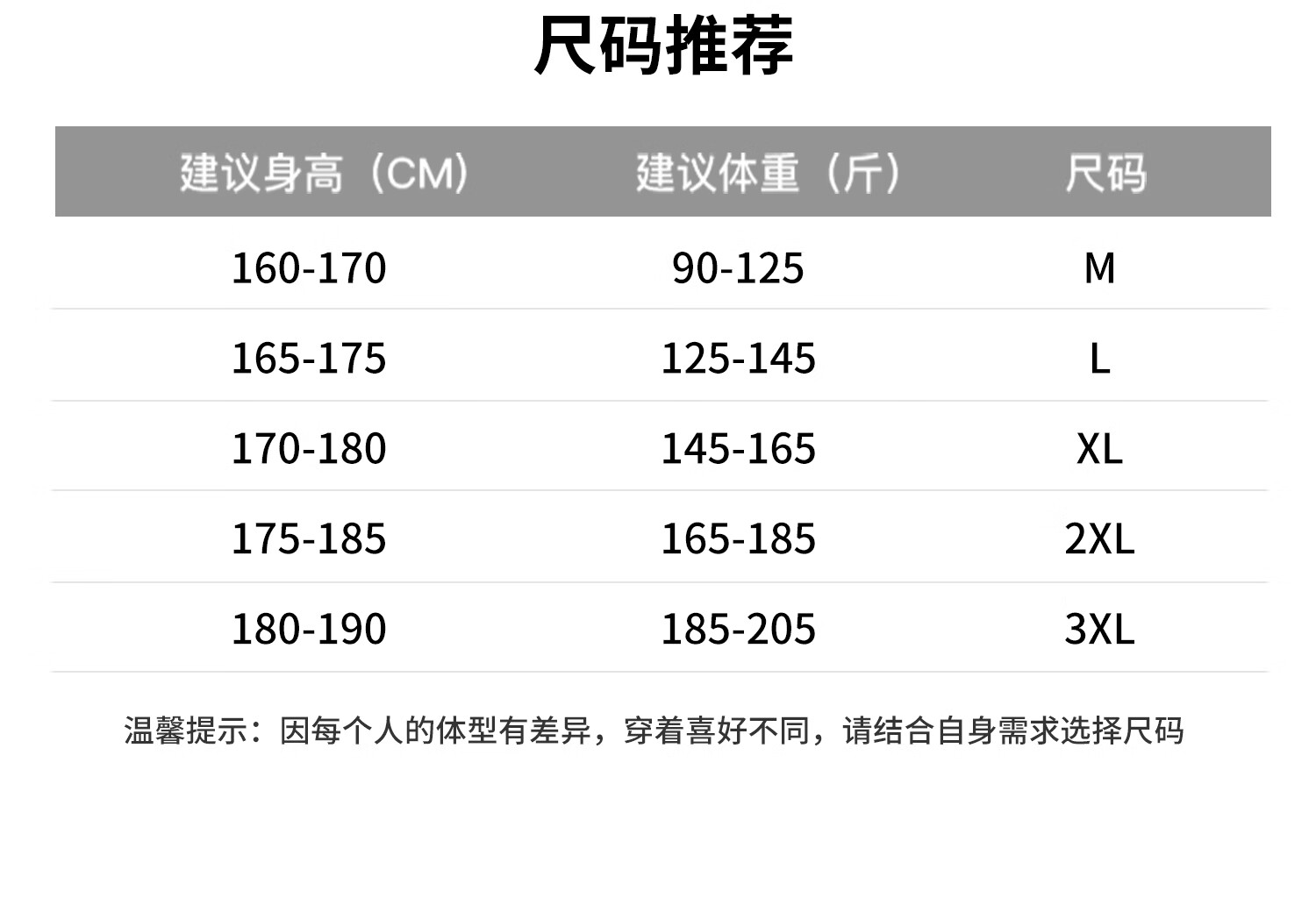 China (cm) 165 / 88-90 170 / 96-98 175 / 108-110 180 / 118-122 185 / 126-130