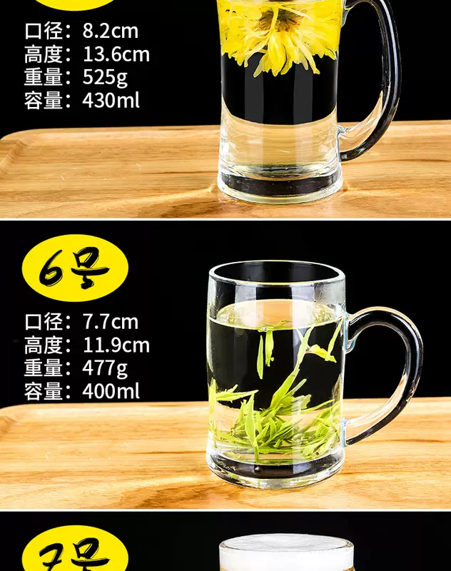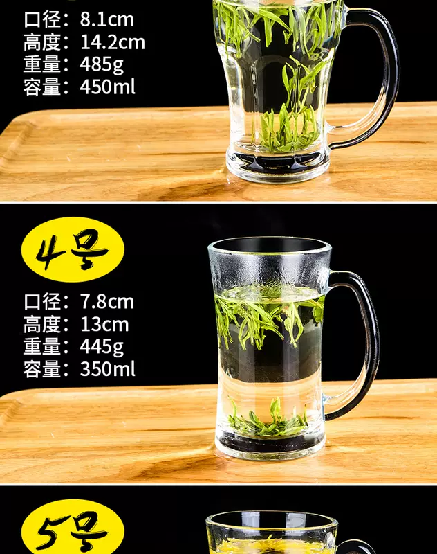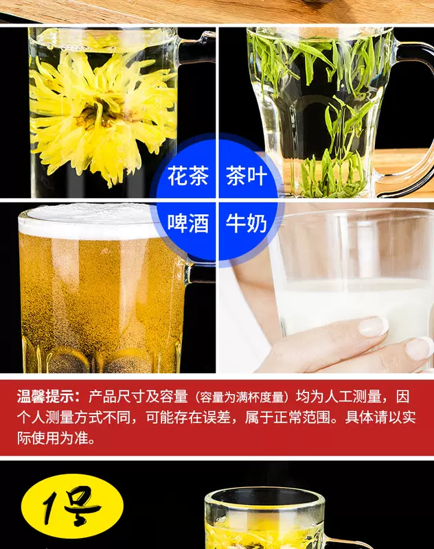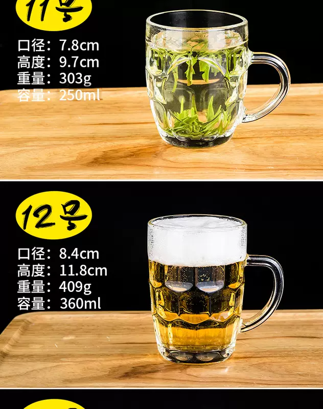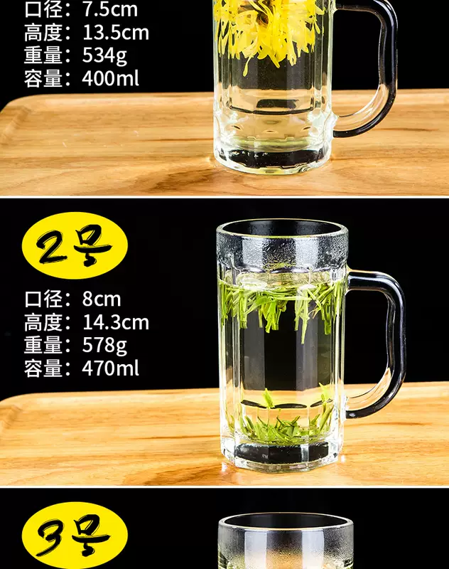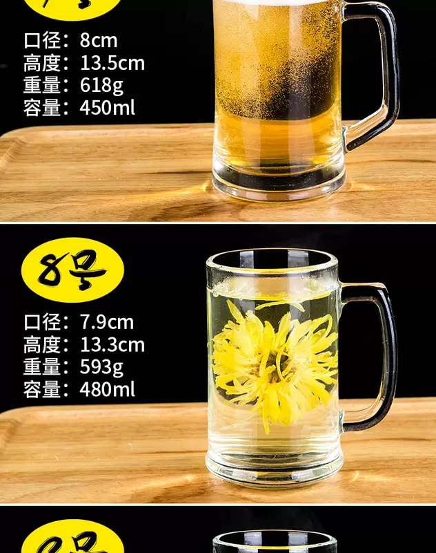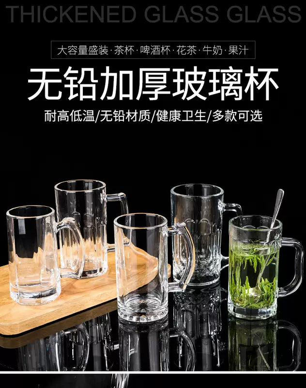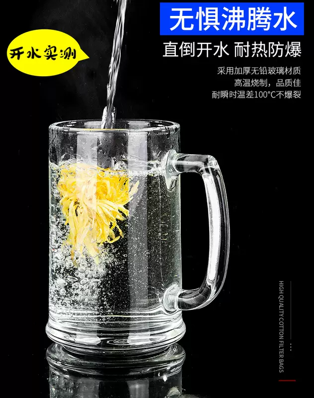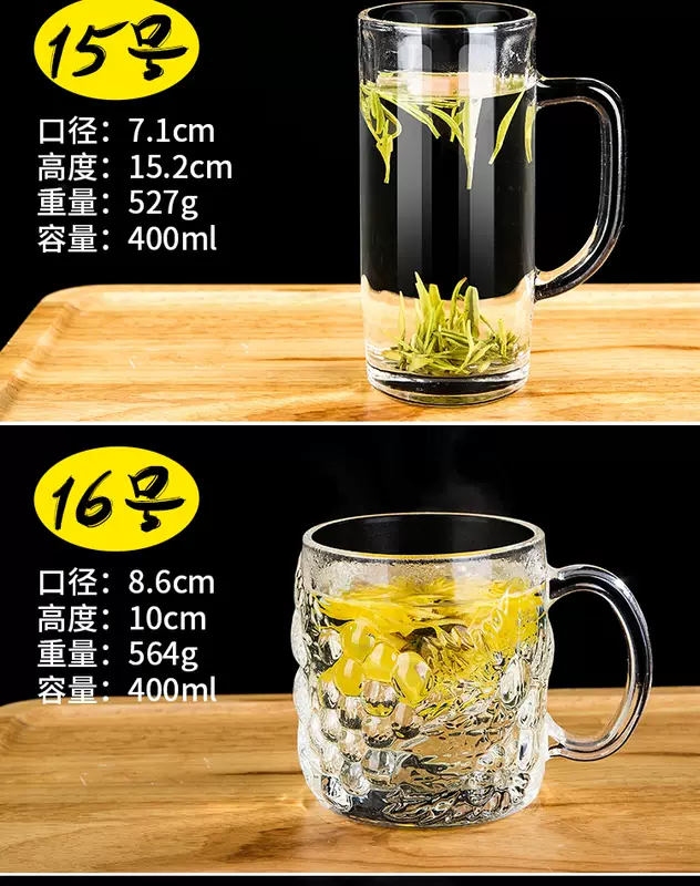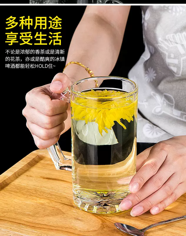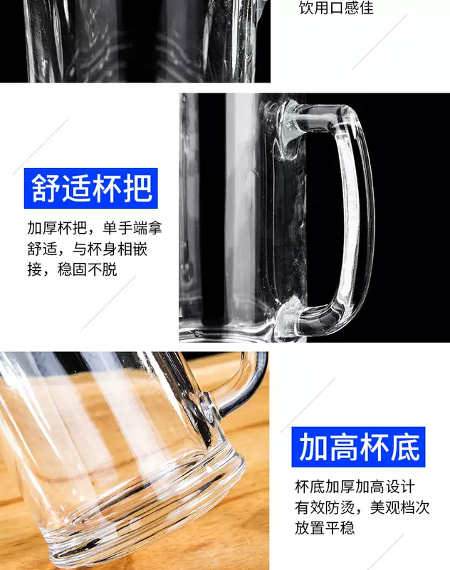 Yusenyi brings a handle glass heat-resistant tea cup, household beer cup, large draft beer cup, thickened handle cup, drinking cup, No. 1 glass handle cup 400ml