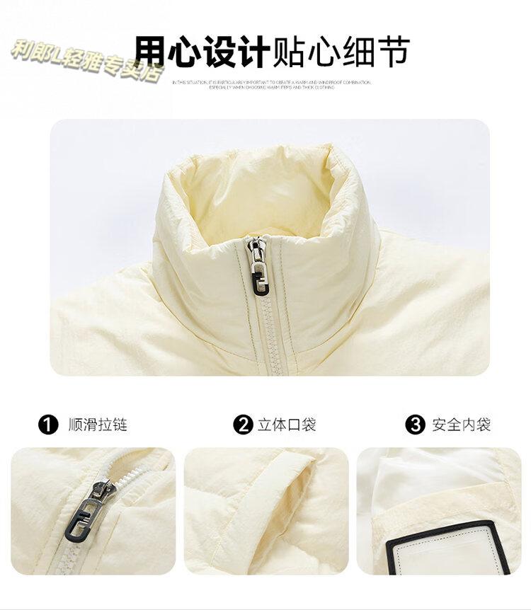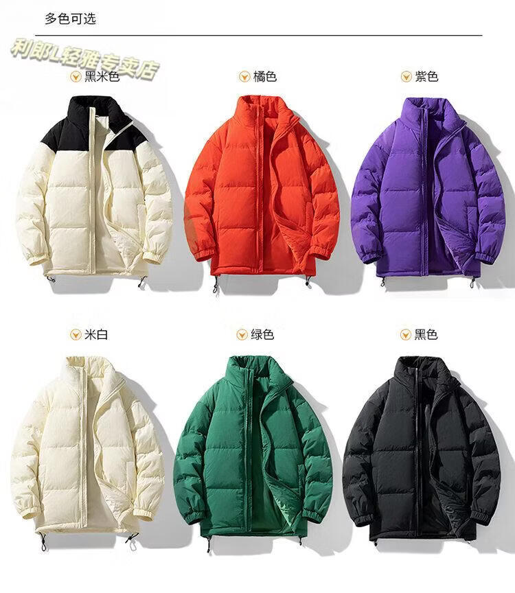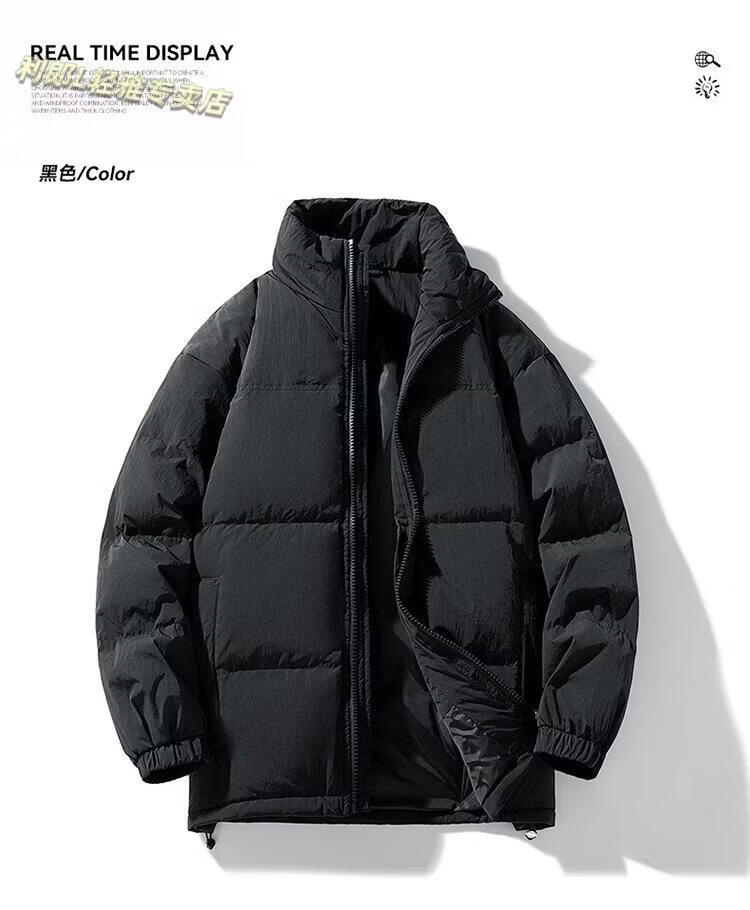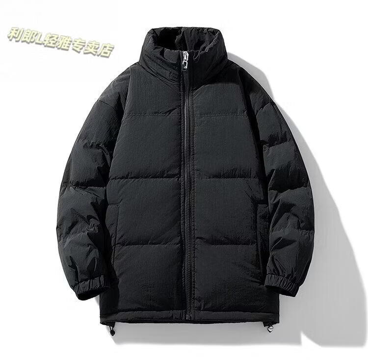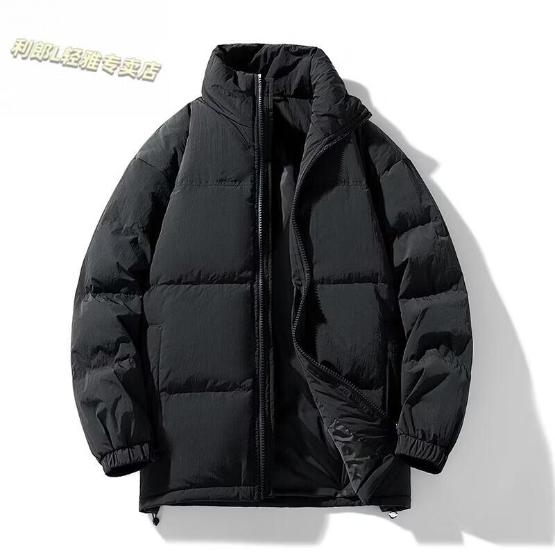 LILANZ 90 White Duck Down Short Down Jacket Thickened Stand-up Collar Lightweight Warm Couple Loose Bread Down Jacket Black L