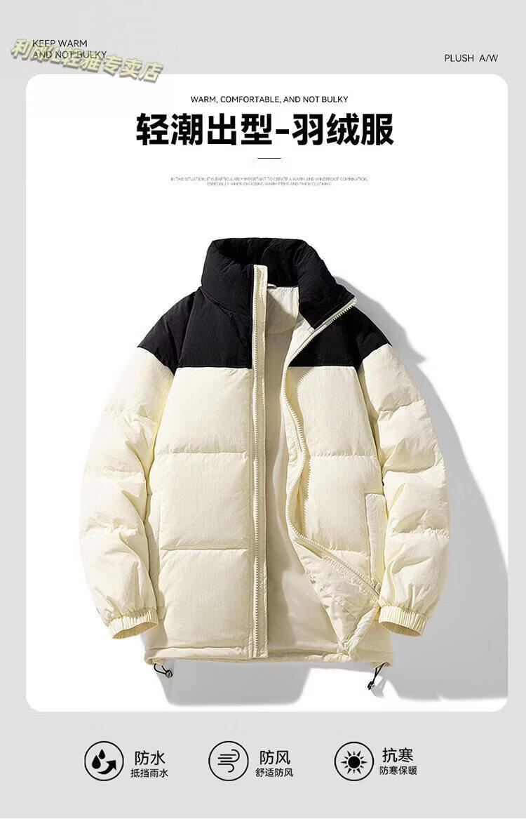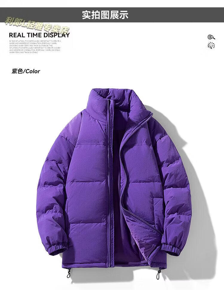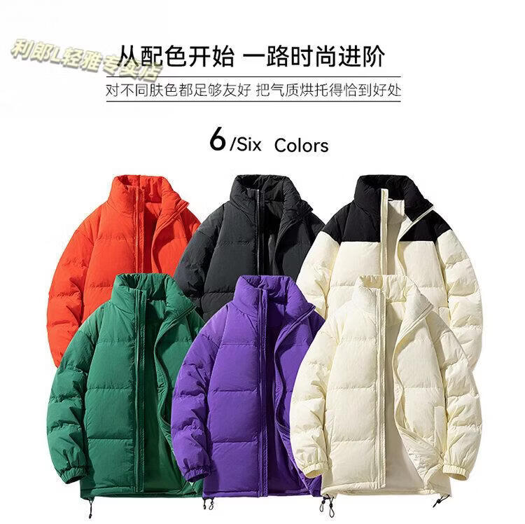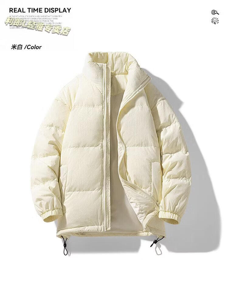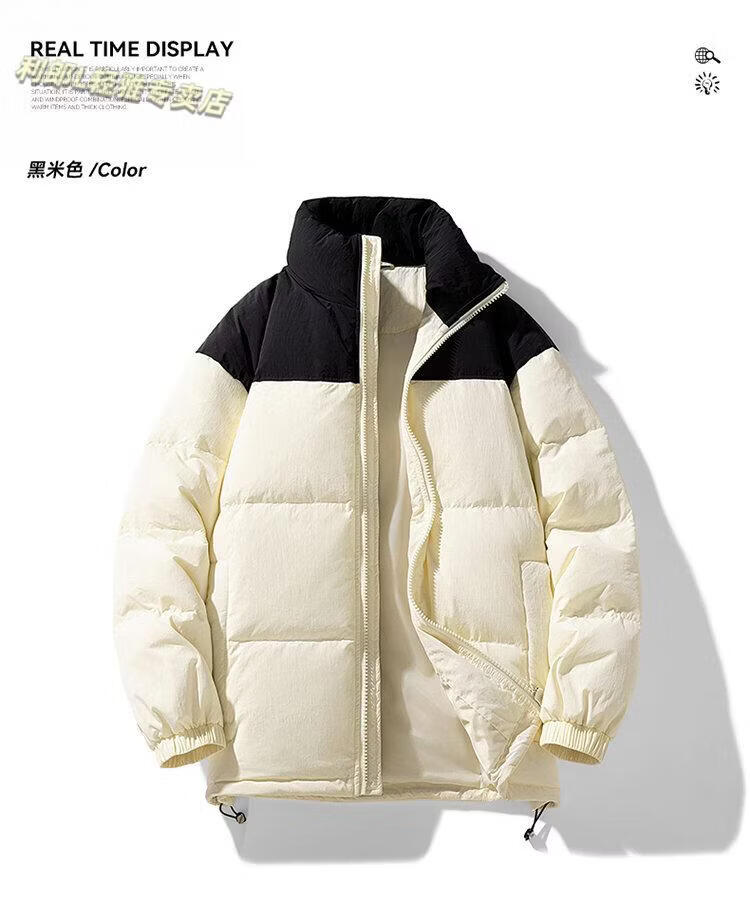 LILANZ 90 White Duck Down Short Down Jacket Thickened Stand-up Collar Lightweight Warm Couple Loose Bread Down Jacket Black L