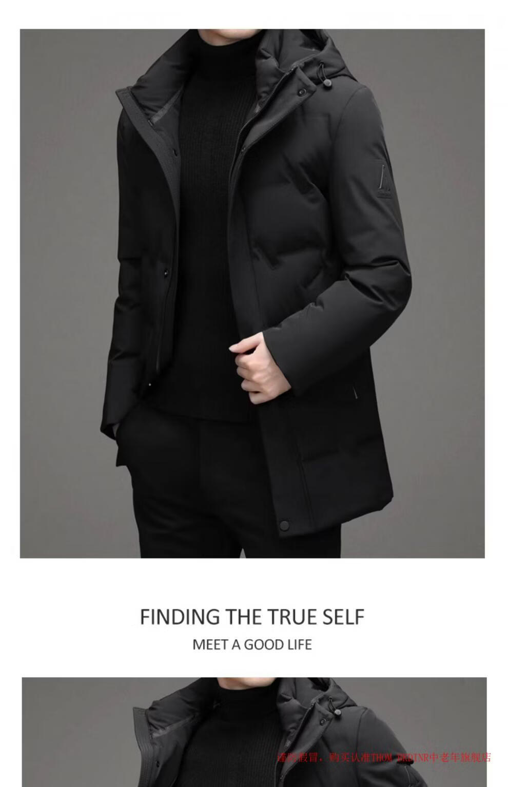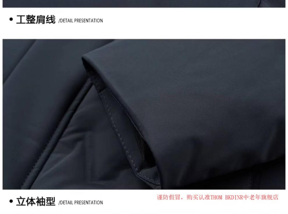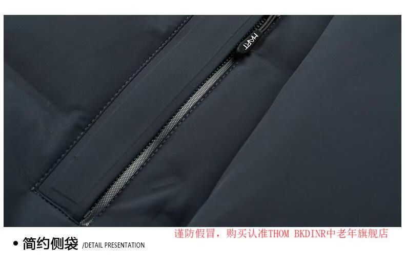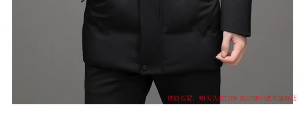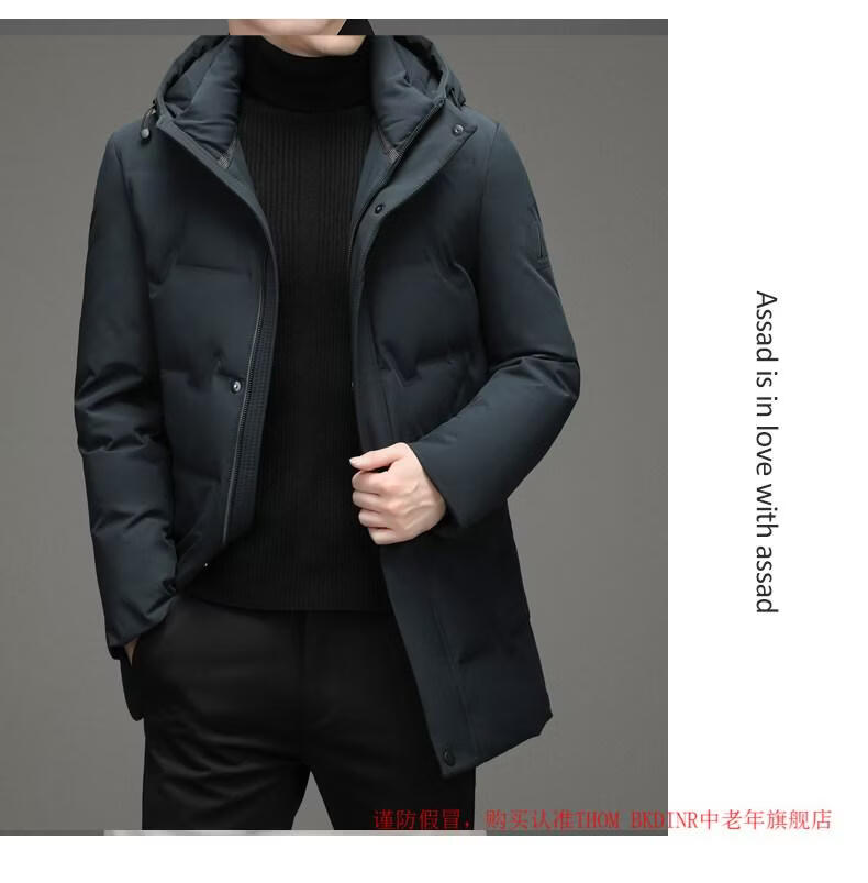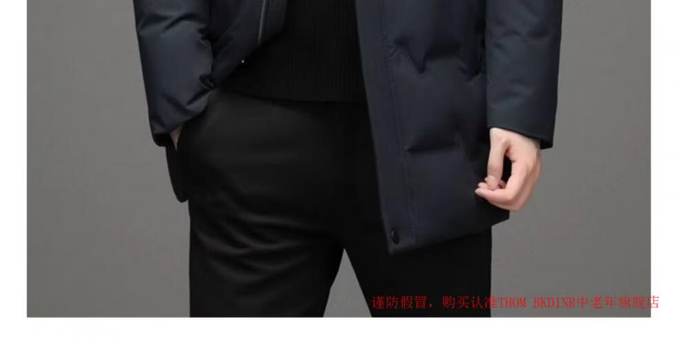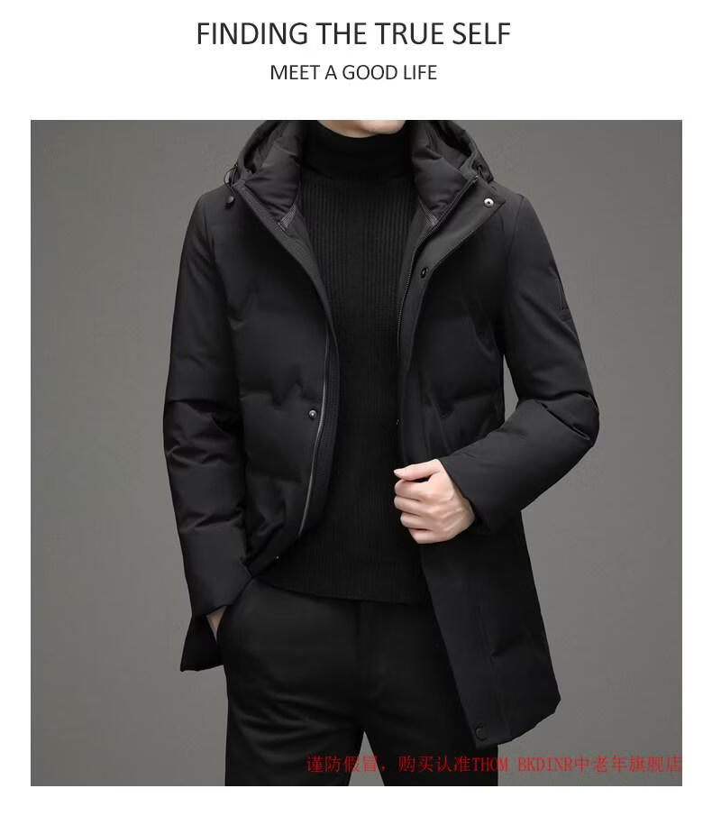 THOM BKDINR high-end mid-length down jacket for men 2025 new winter thickened hooded brand casual jacket black 2XL 180 (recommended weight 160-180Jin Jin equals 0.5 kg)