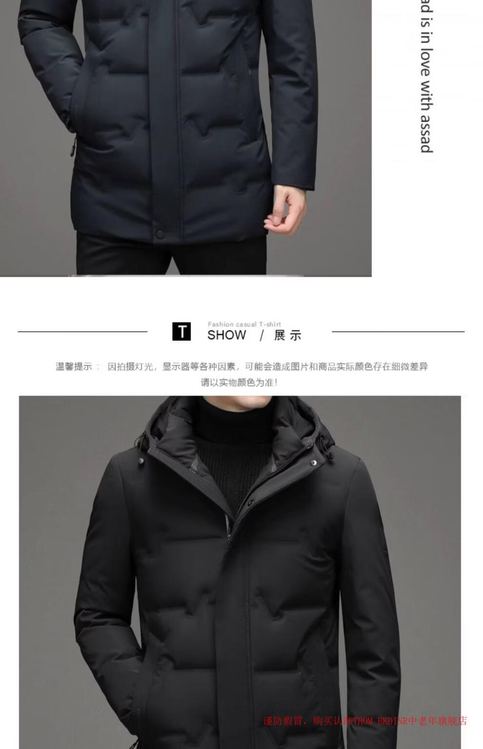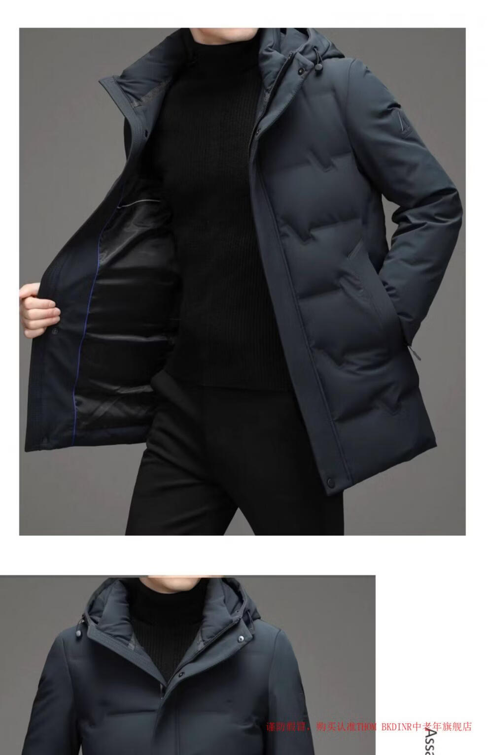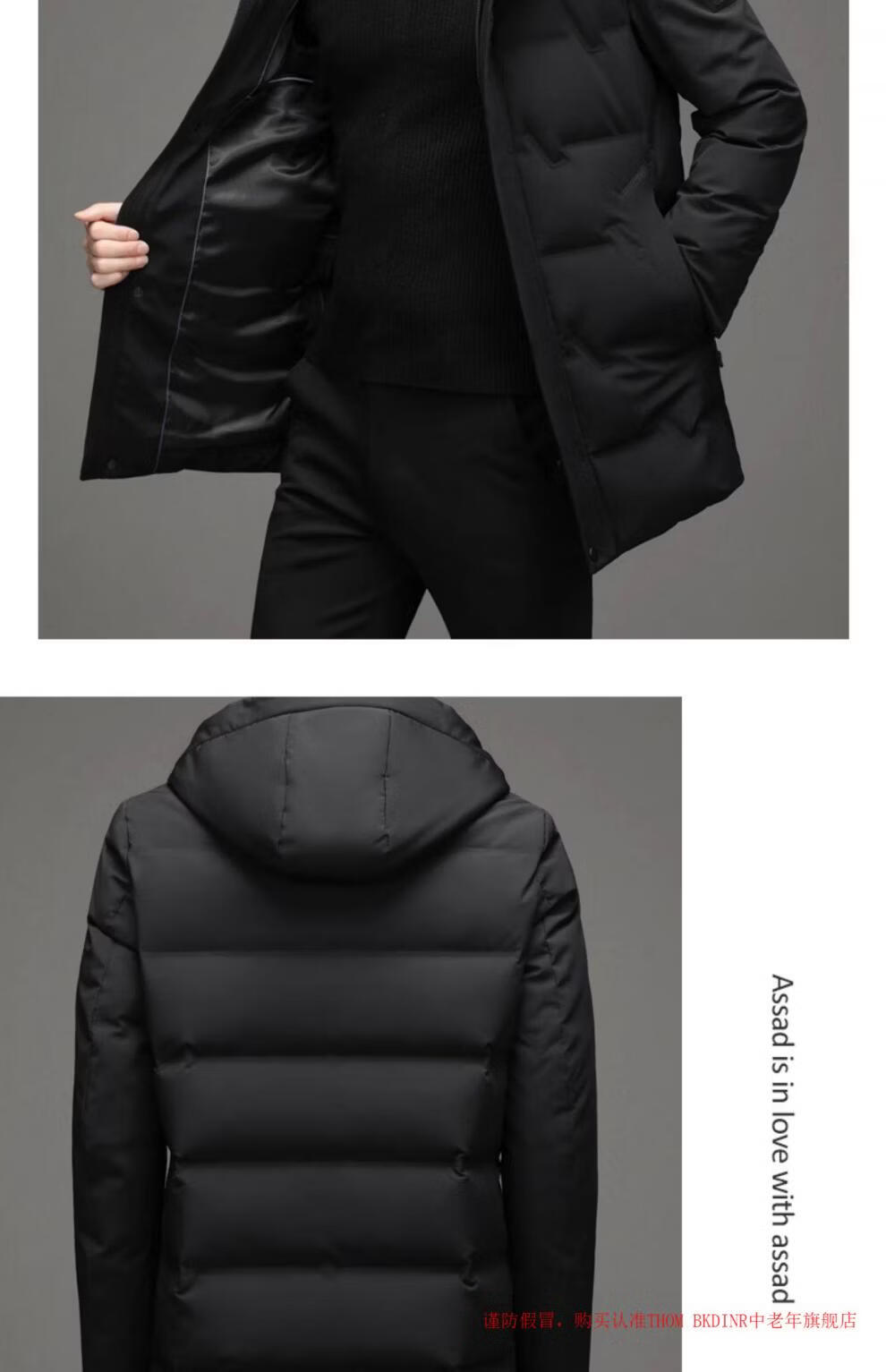 THOM BKDINR high-end mid-length down jacket for men 2025 new winter thickened hooded brand casual jacket black 2XL 180 (recommended weight 160-180Jin Jin equals 0.5 kg)