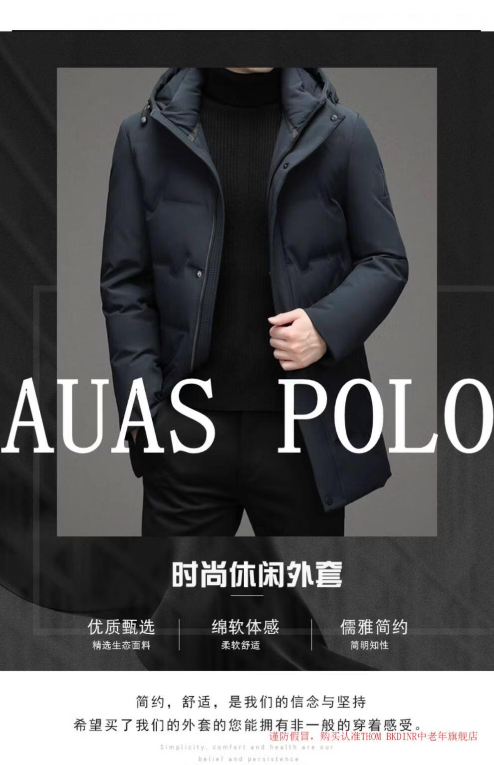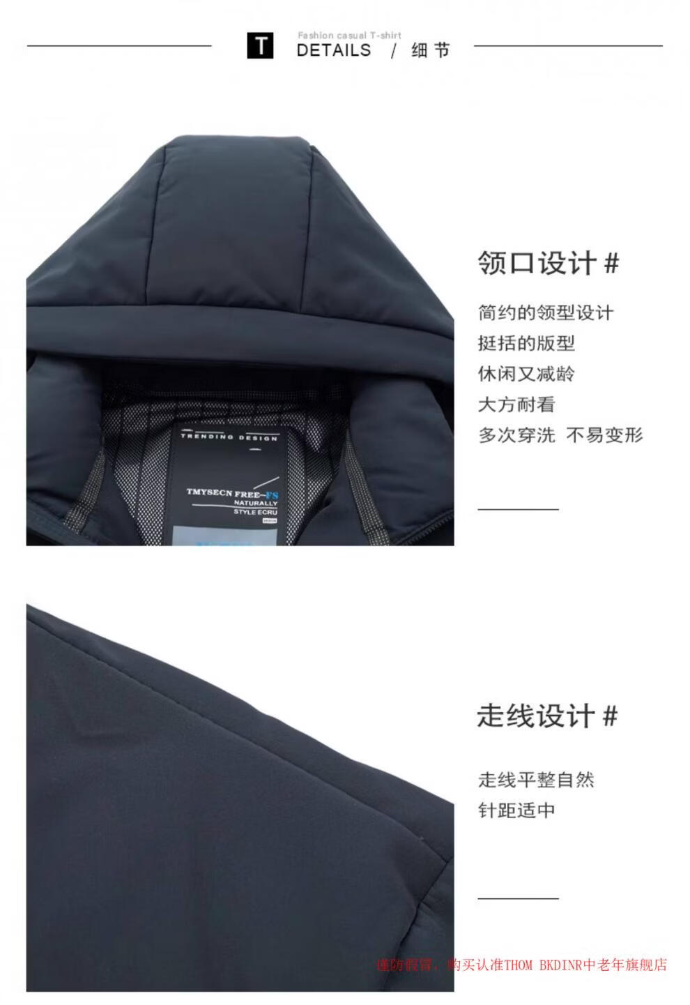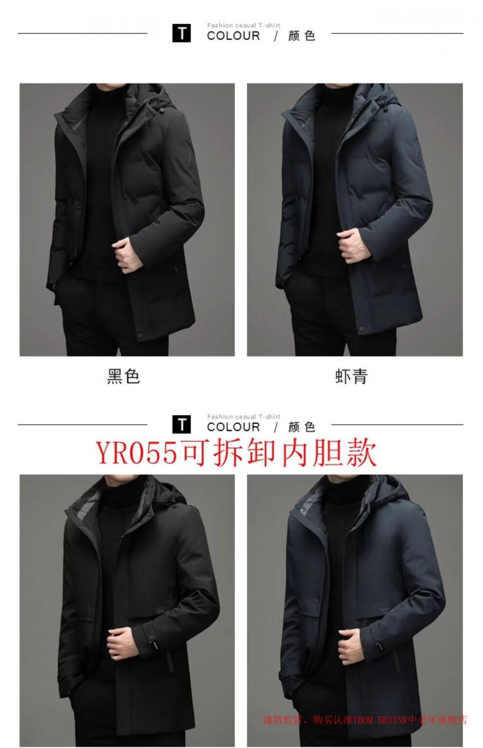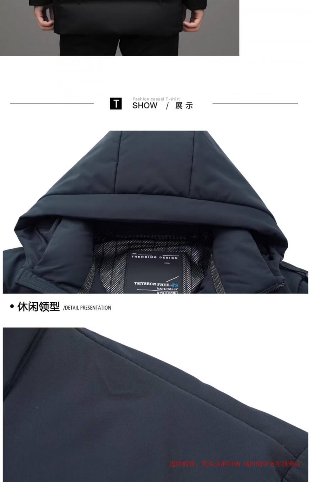 THOM BKDINR high-end mid-length down jacket for men 2025 new winter thickened hooded brand casual jacket black 2XL 180 (recommended weight 160-180Jin Jin equals 0.5 kg)