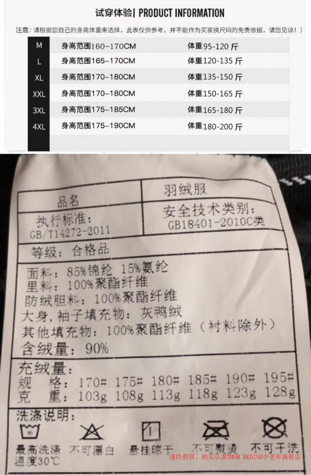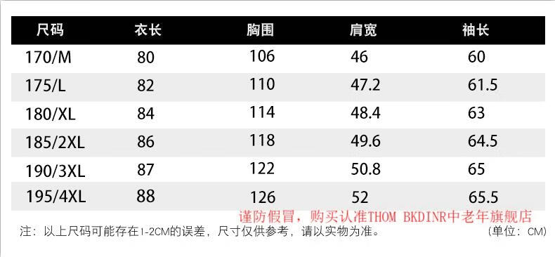 China (cm) 165 / 88-90 170 / 96-98 175 / 108-110 180 / 118-122 185 / 126-130