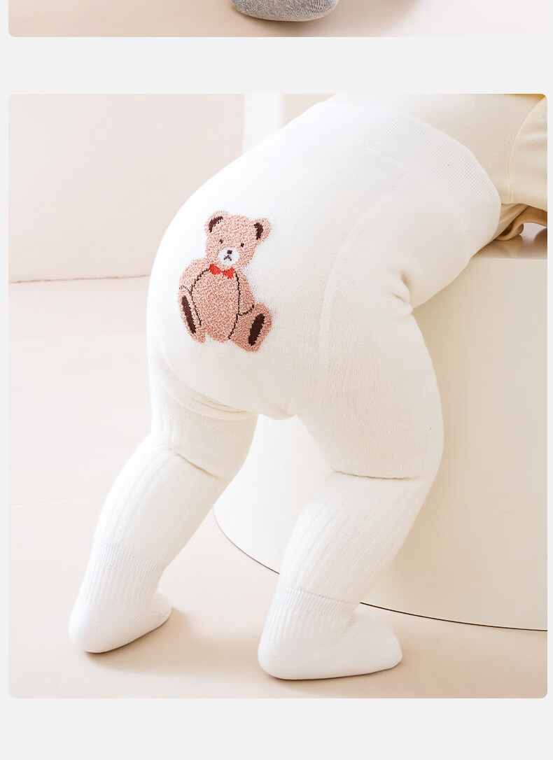 Mianqi Bear baby pantyhose baby autumn and winter thickened and velvet big butt leggings children's winter infant and toddler warm pantyhose KW162-white-single pack thickened and velvet, warm and not easy to strangle, 1-2 years old - pants length 50cm, suitable for height 85-95cm