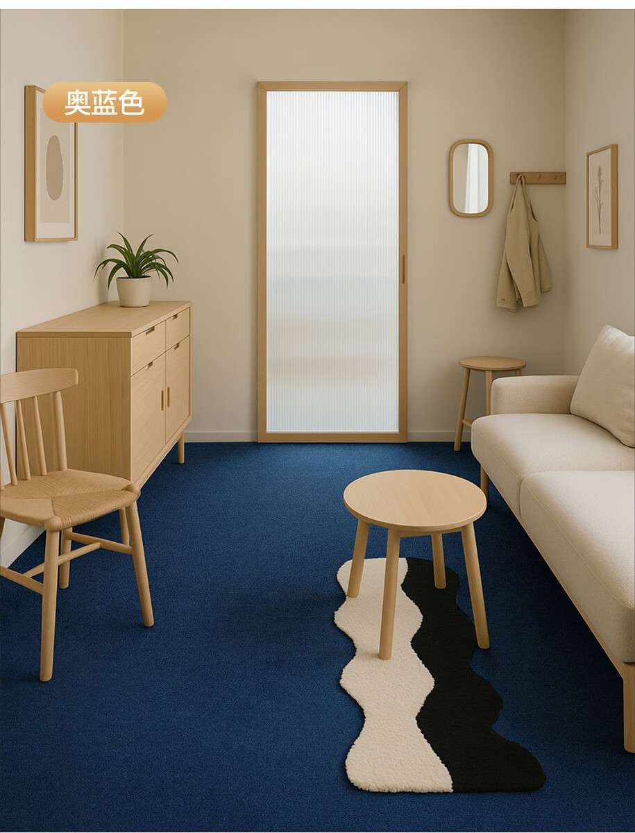 Fantasy office encrypted carpet brown high-end large-area soundproof mats covered with fire-proof and flame-retardant floor mats, Olympic blue color, 1.5 meters wide, 3 meters long, and the edge can be flame retardant.